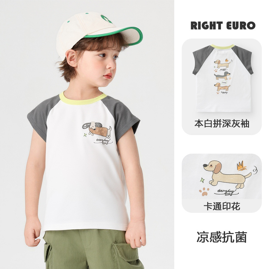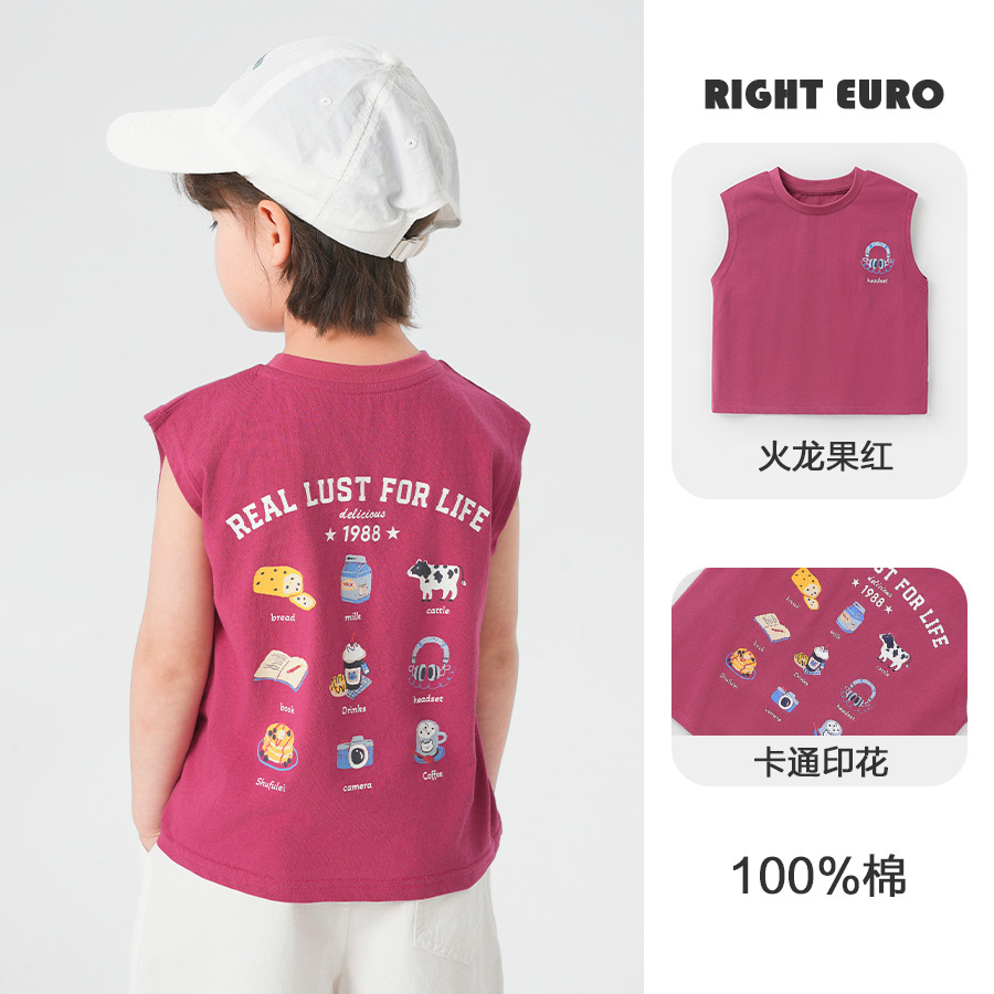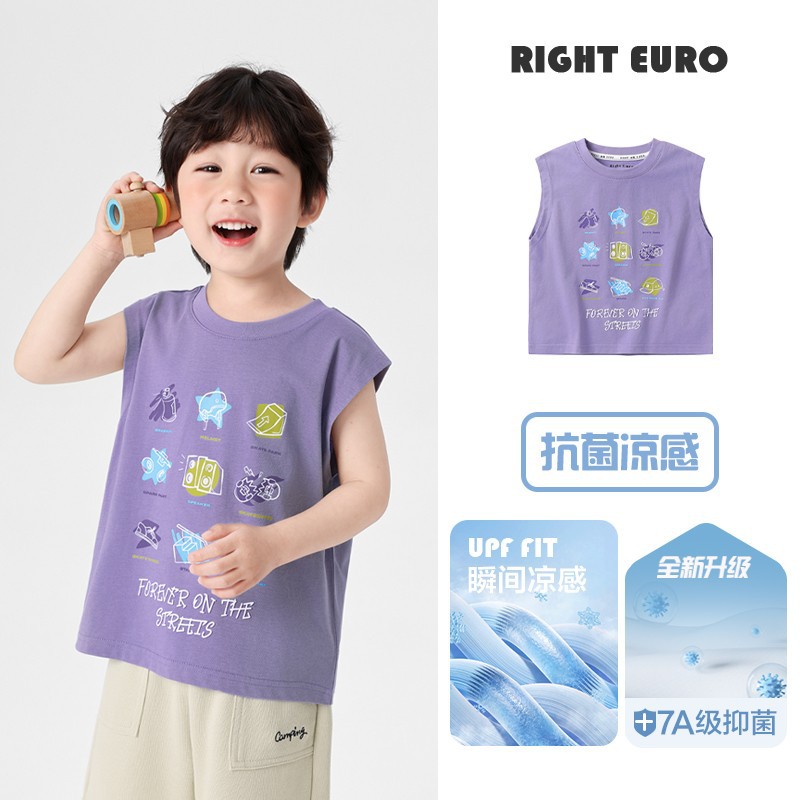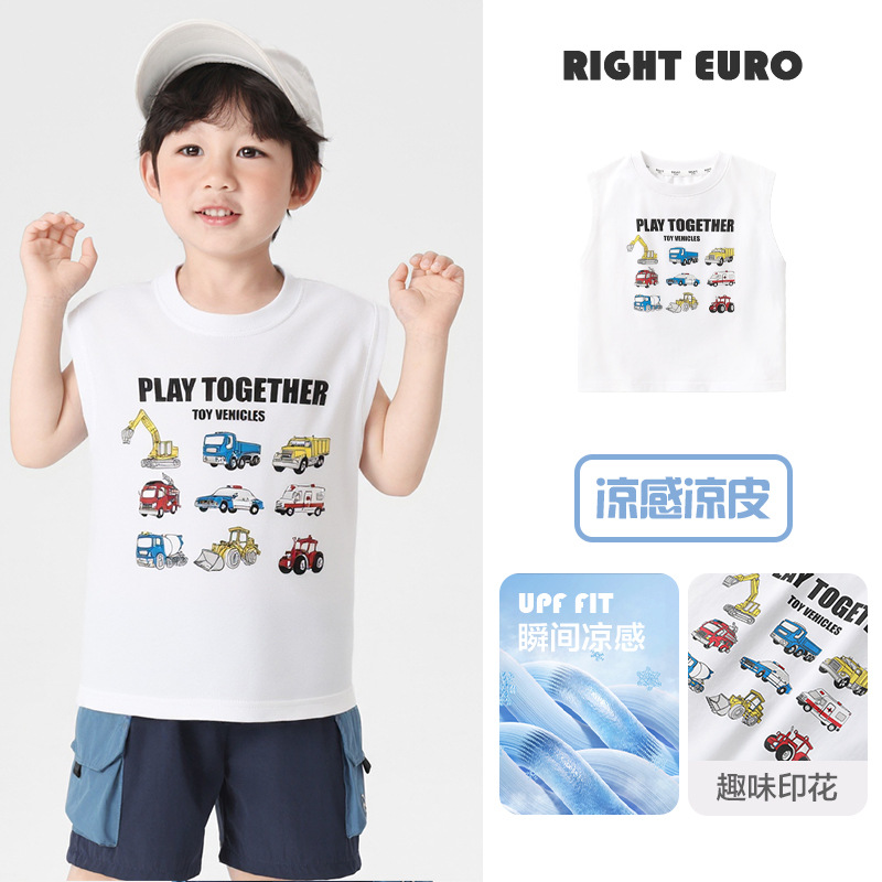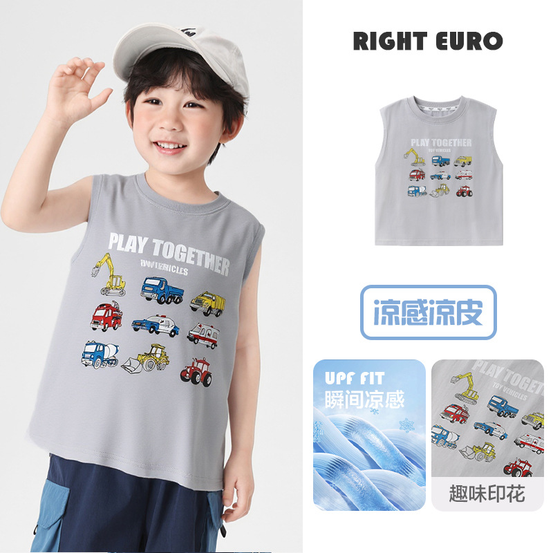 오른쪽 유럽 소년 조끼 여름 옷 2025 새로운 아동 의류 아동용 아기 소년 민소매 티셔츠 여름 얇은 스타일스토어 가기