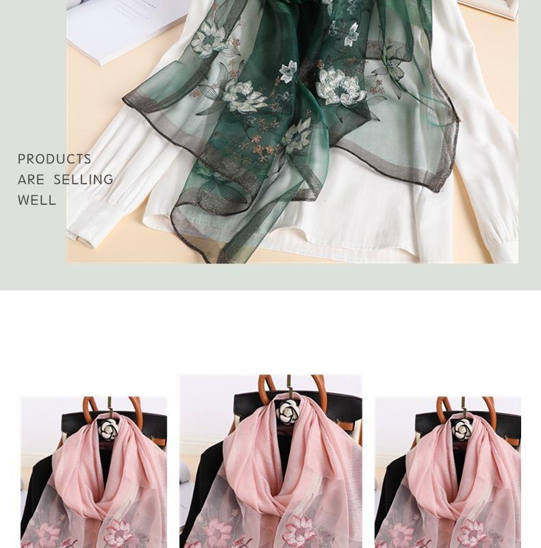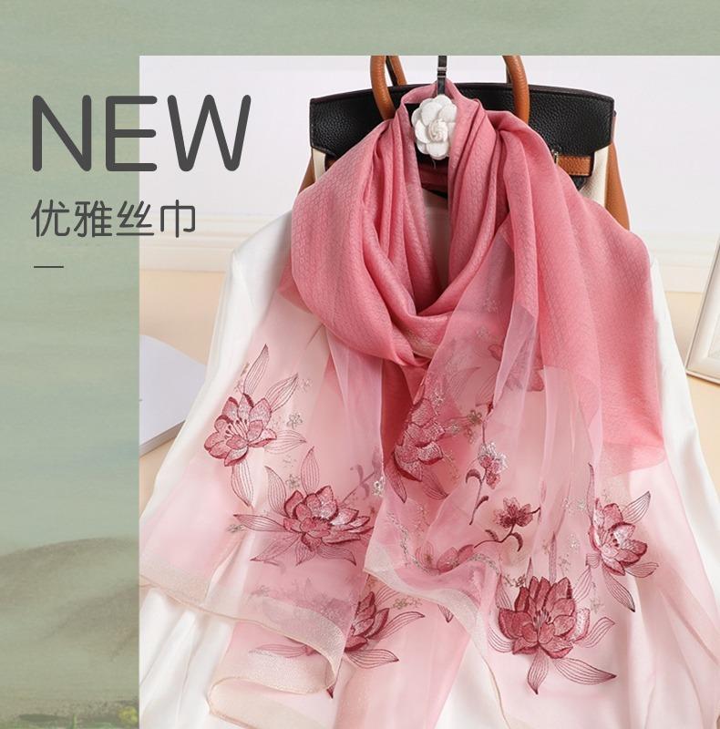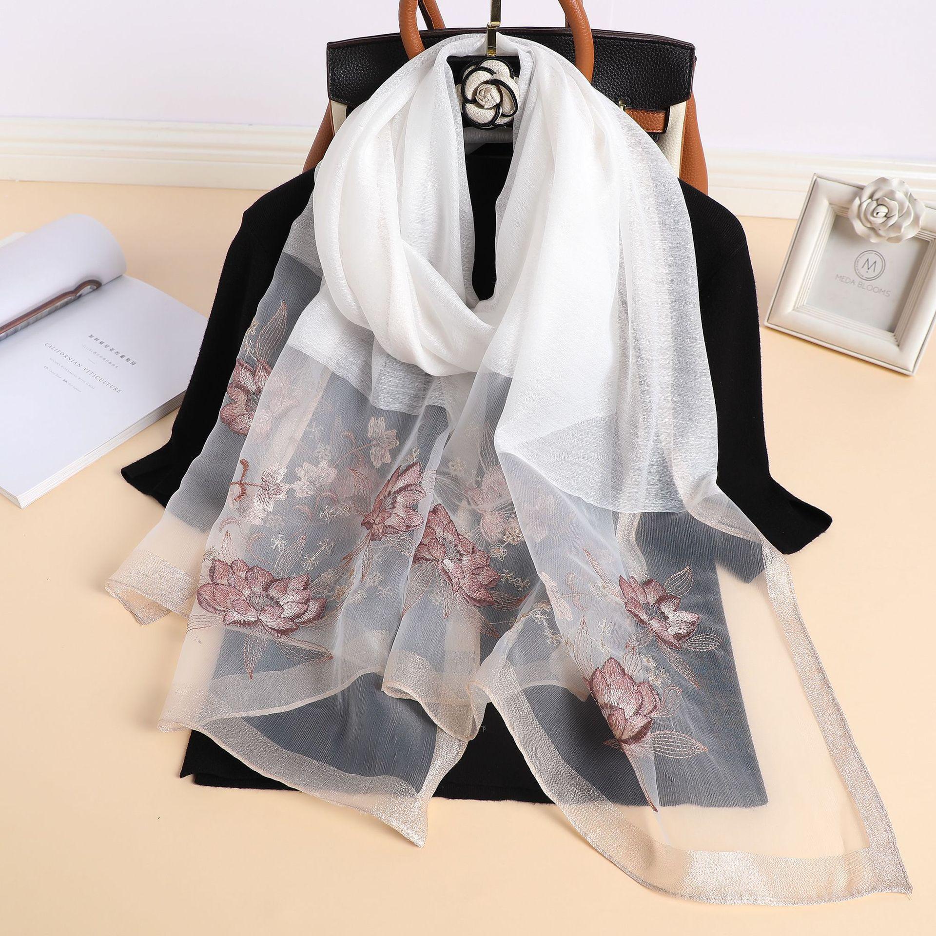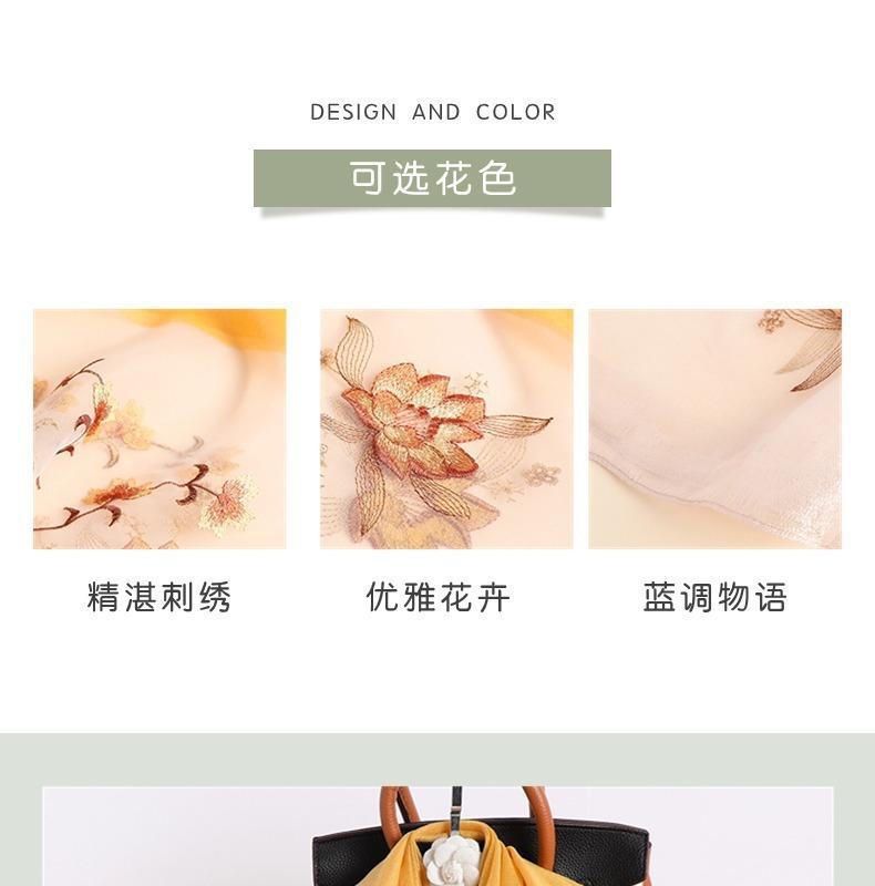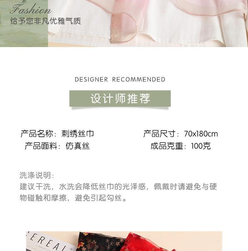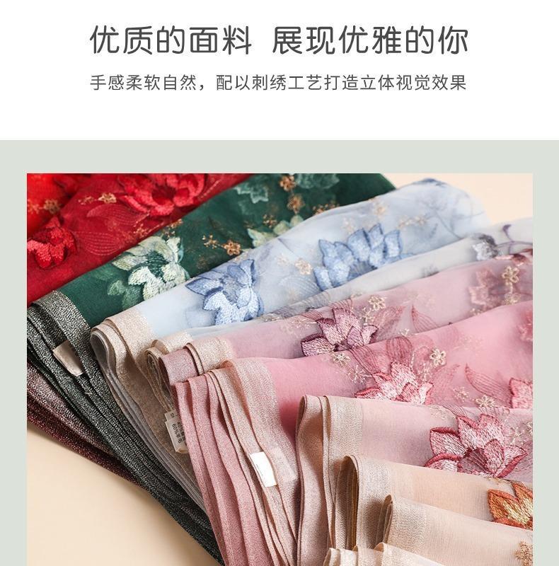 실크 스카프 여성의 새로운 우아하고 다재다능한 자수 시뮬레이션 실크 스카프 봄과 가을 장식 실크 스카프 기질 모란 자수 긴 스카프스토어 가기
