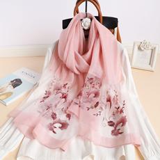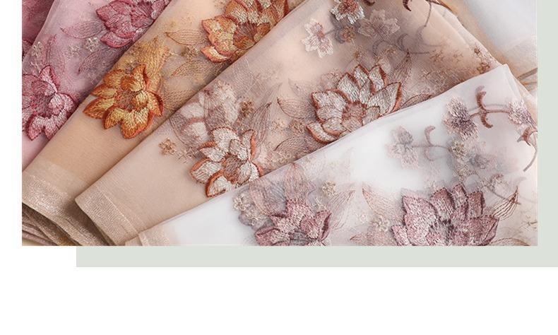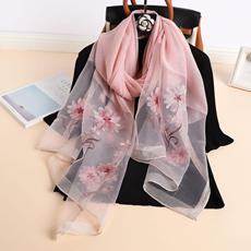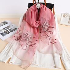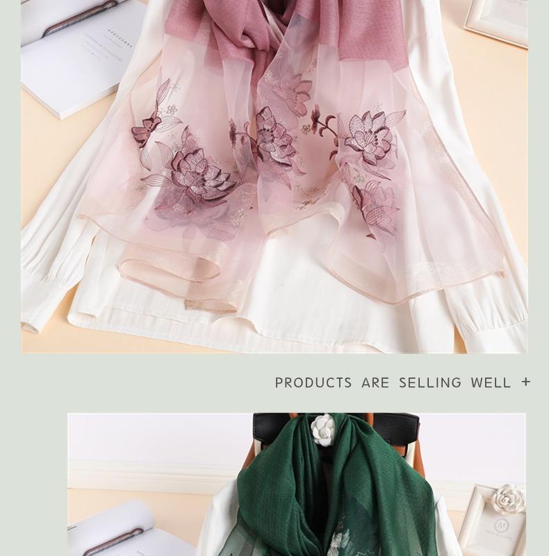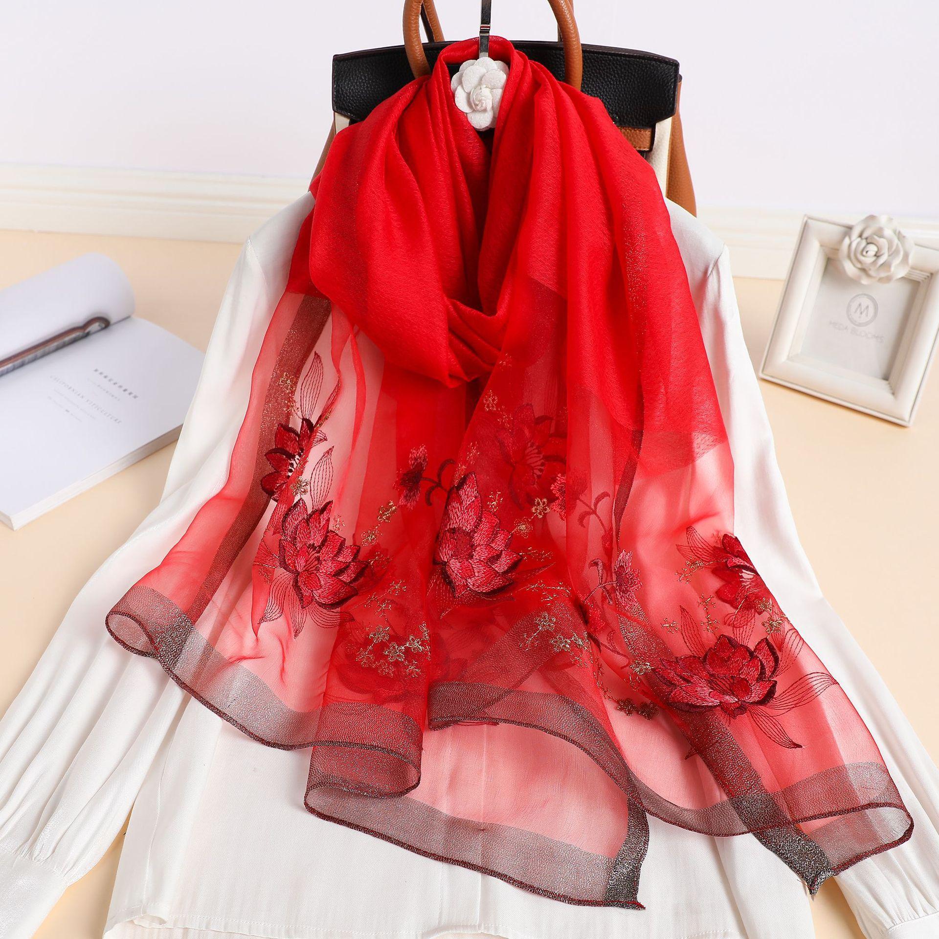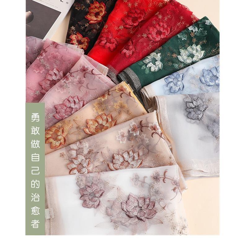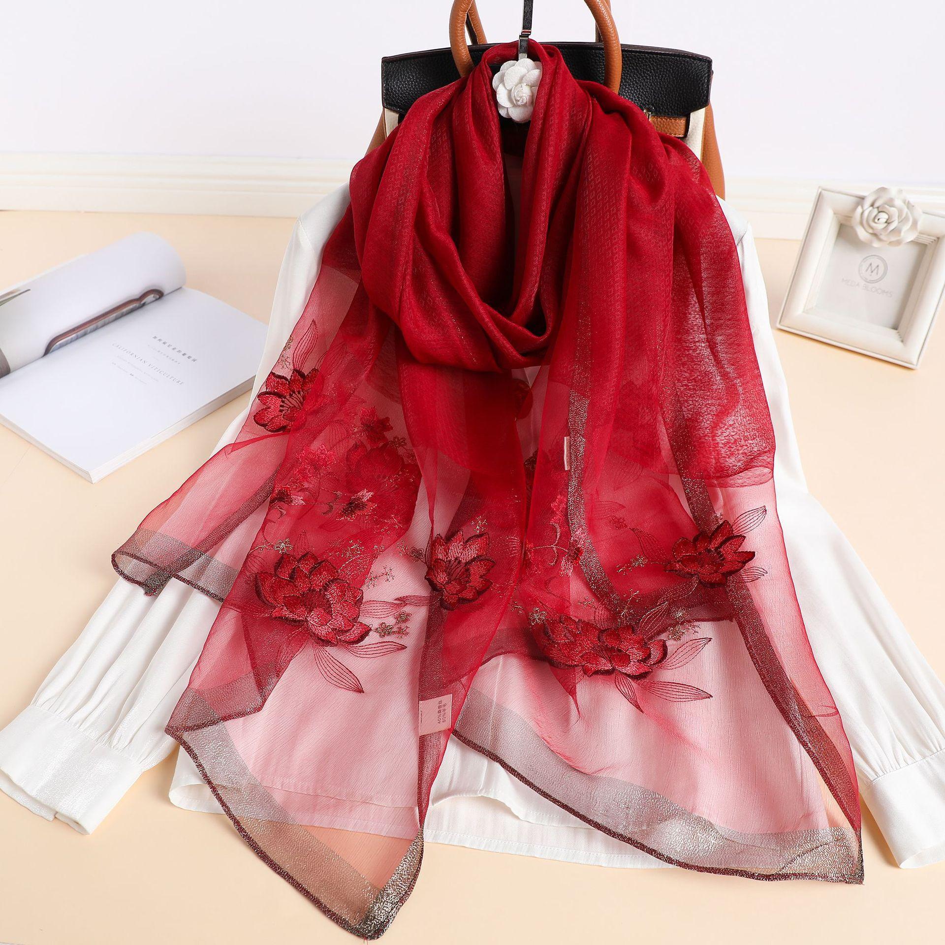 실크 스카프 여성의 새로운 우아하고 다재다능한 자수 시뮬레이션 실크 스카프 봄과 가을 장식 실크 스카프 기질 모란 자수 긴 스카프스토어 가기
