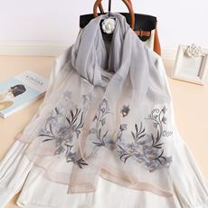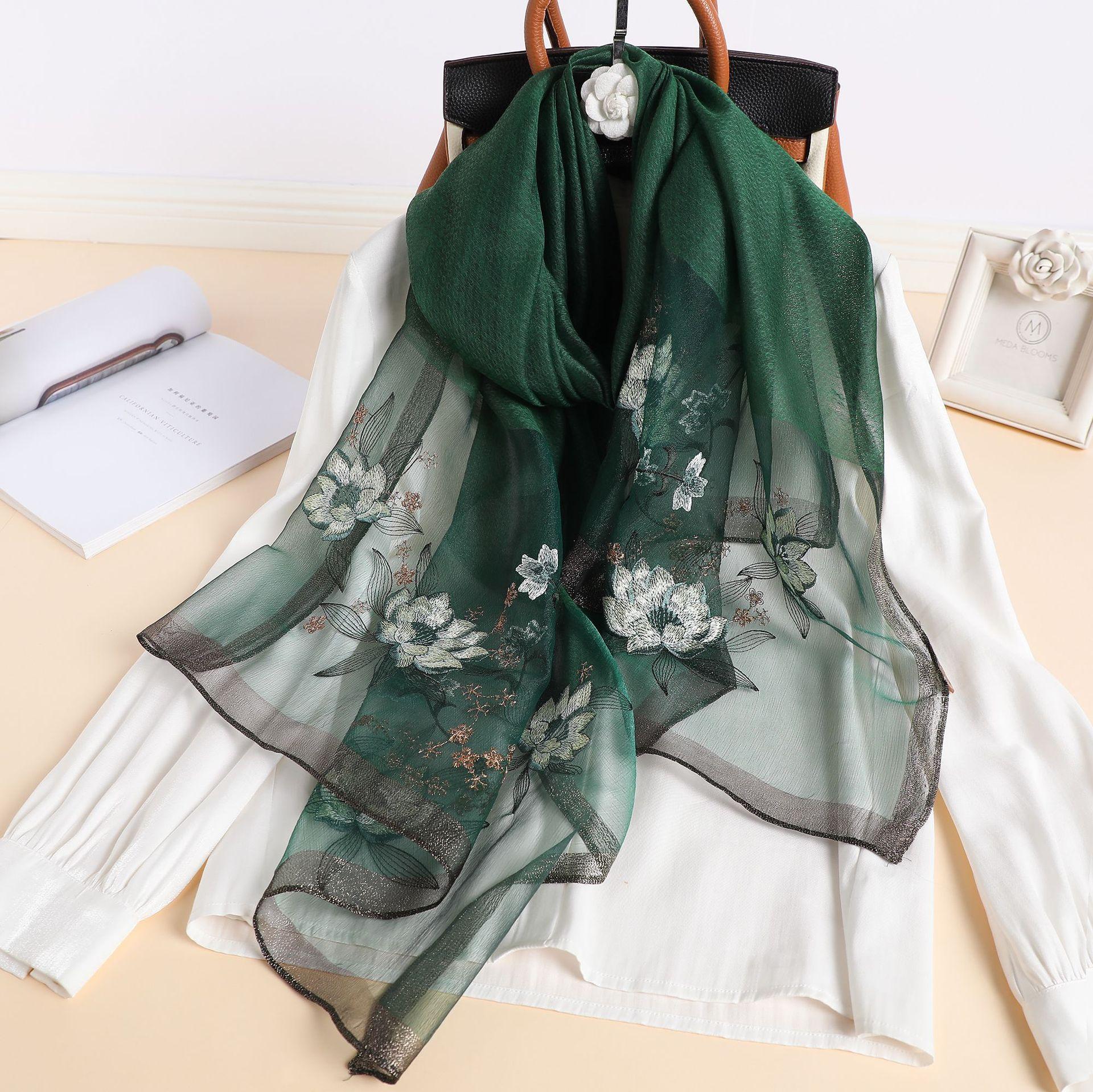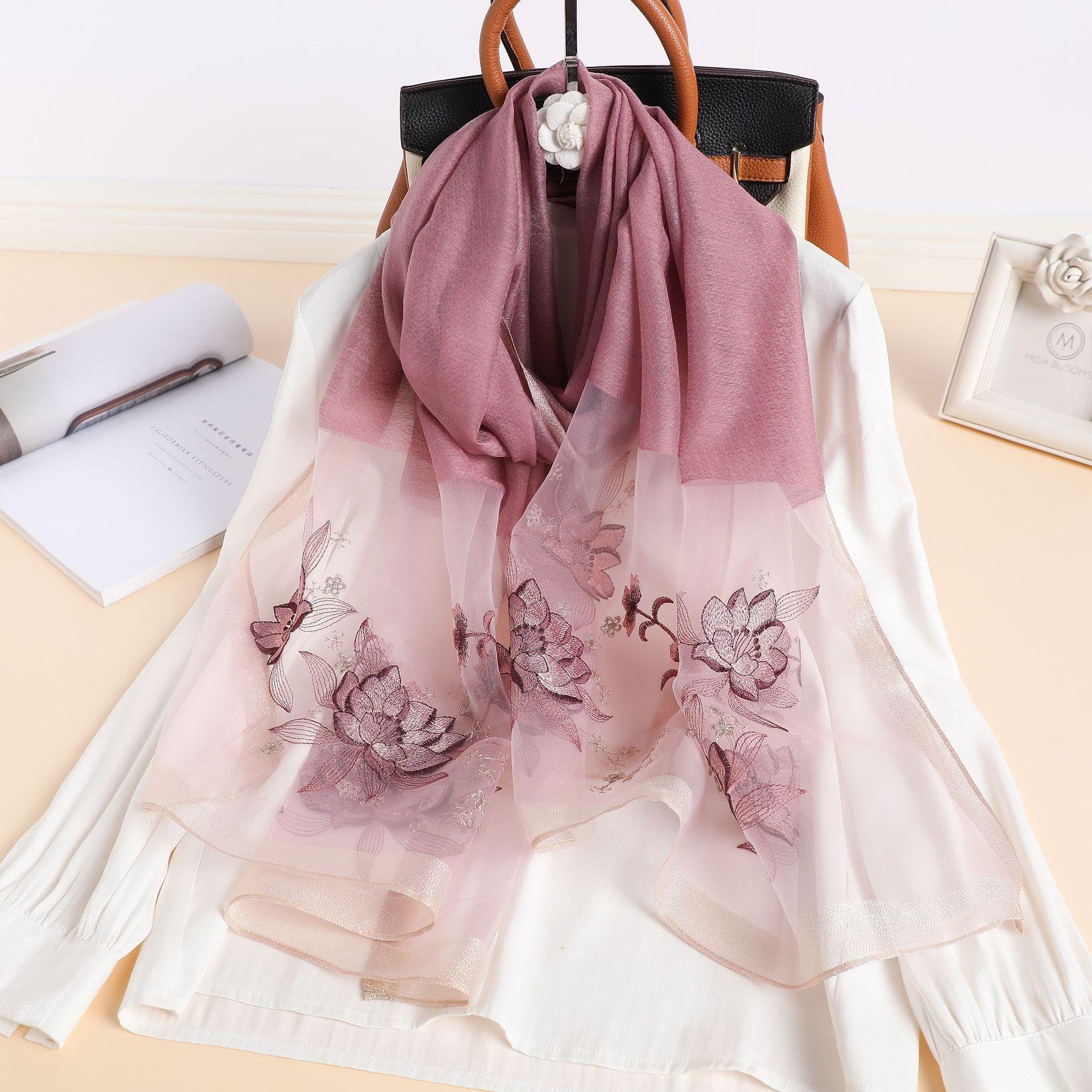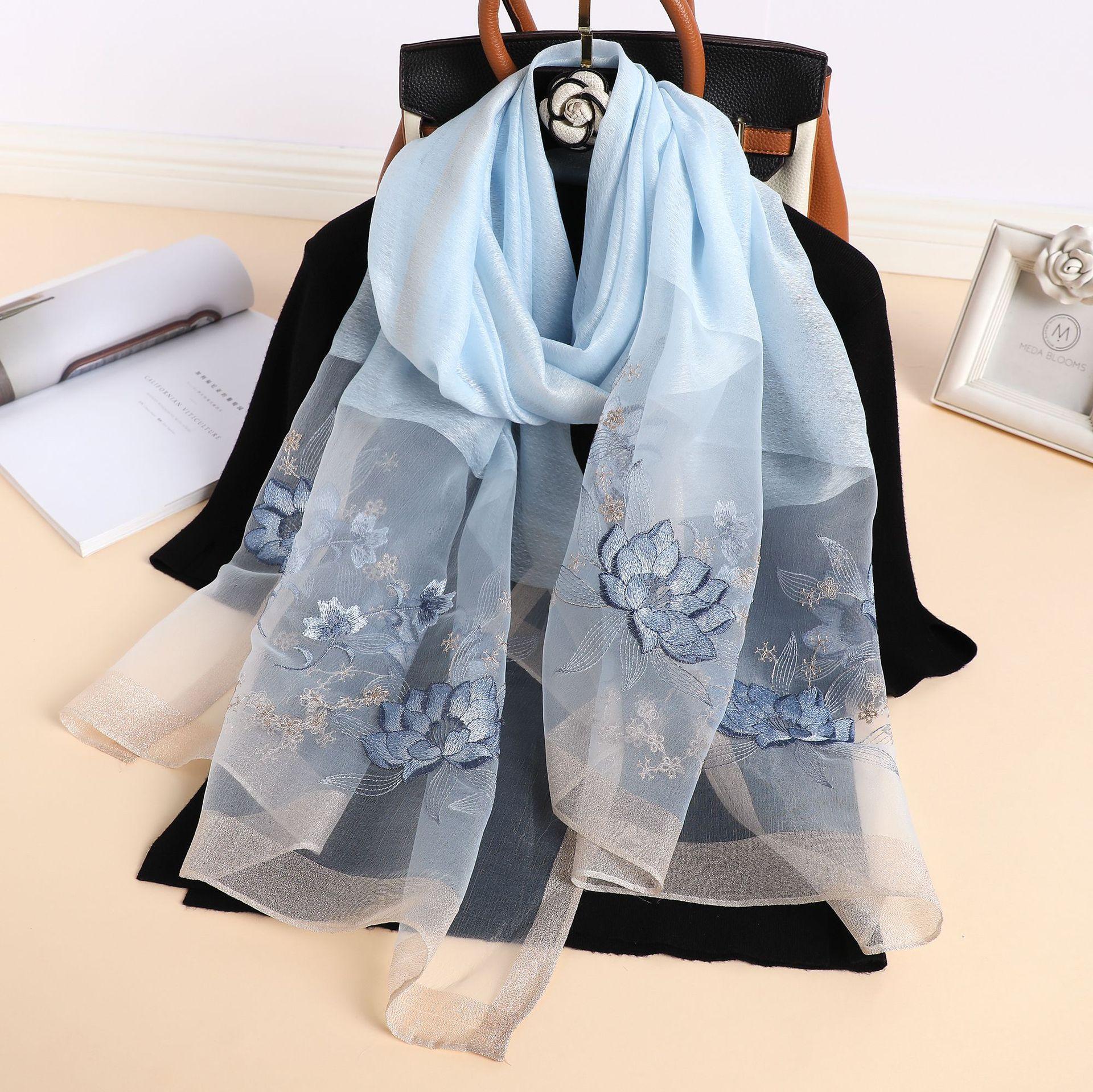 실크 스카프 여성의 새로운 우아하고 다재다능한 자수 시뮬레이션 실크 스카프 봄과 가을 장식 실크 스카프 기질 모란 자수 긴 스카프