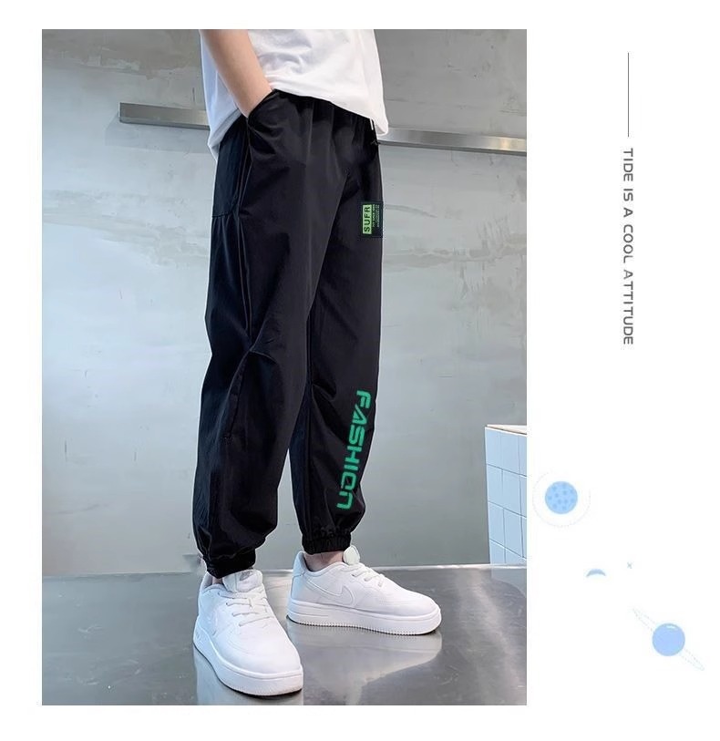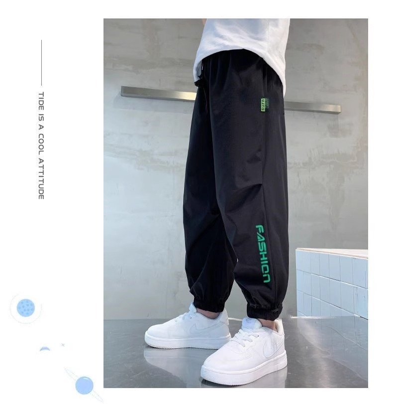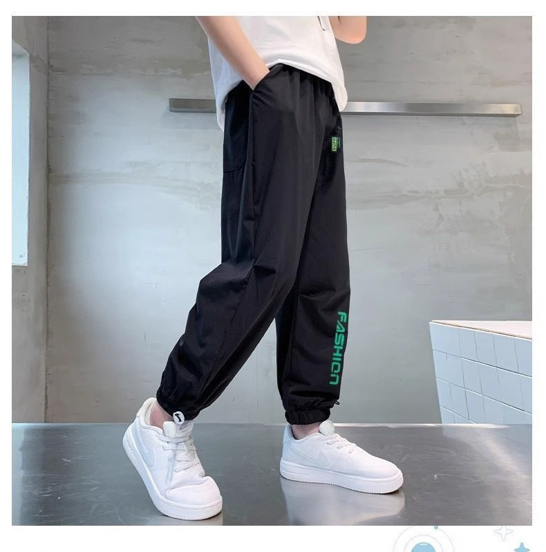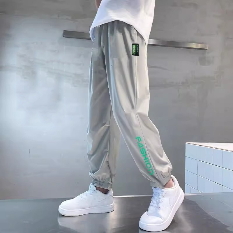 2025년 여름 어린이 시원하고 패셔너블한 레터 루즈 캐주얼 팬츠, 중대형 어린이용 아이스 실크 스포츠 레깅스 바지