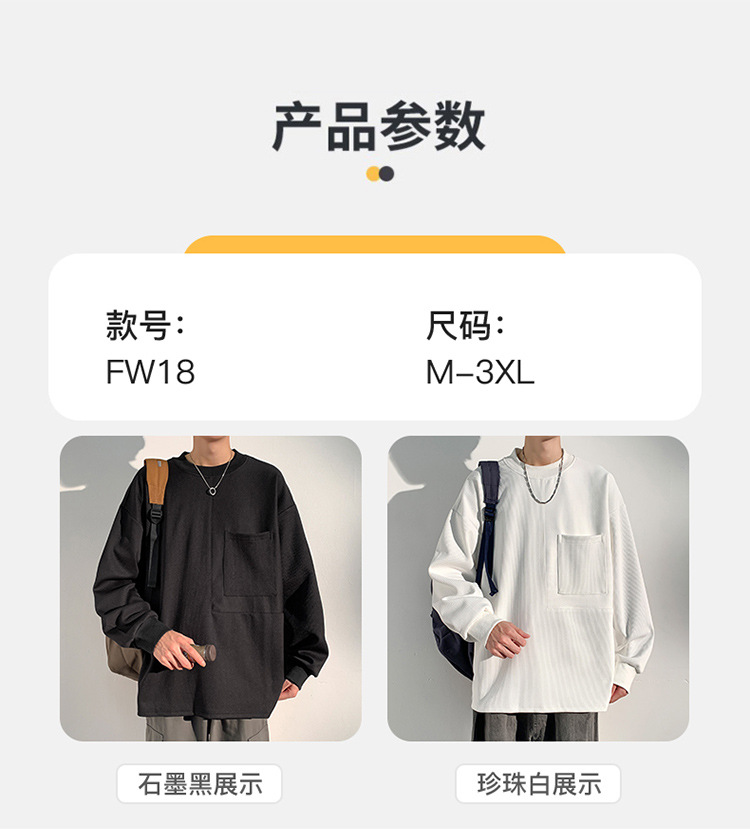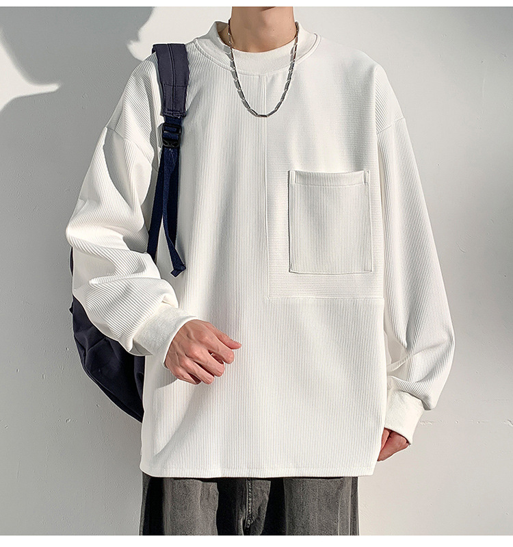 봄, 가을용 긴팔 하의 티셔츠 무료 배송, 남성용 루즈하고 활용도가 높은 스웨트셔츠, 화이트 라운드넥 트렌디 브랜드