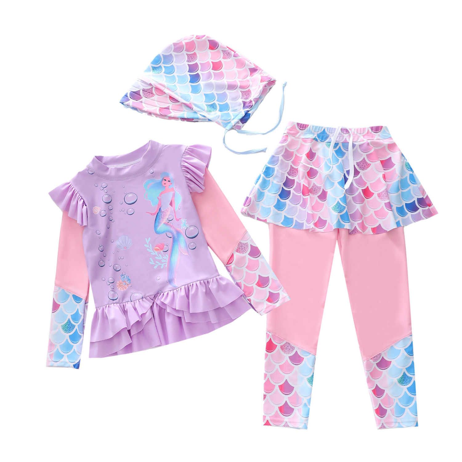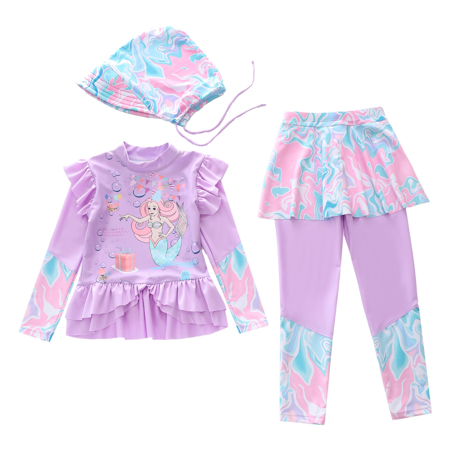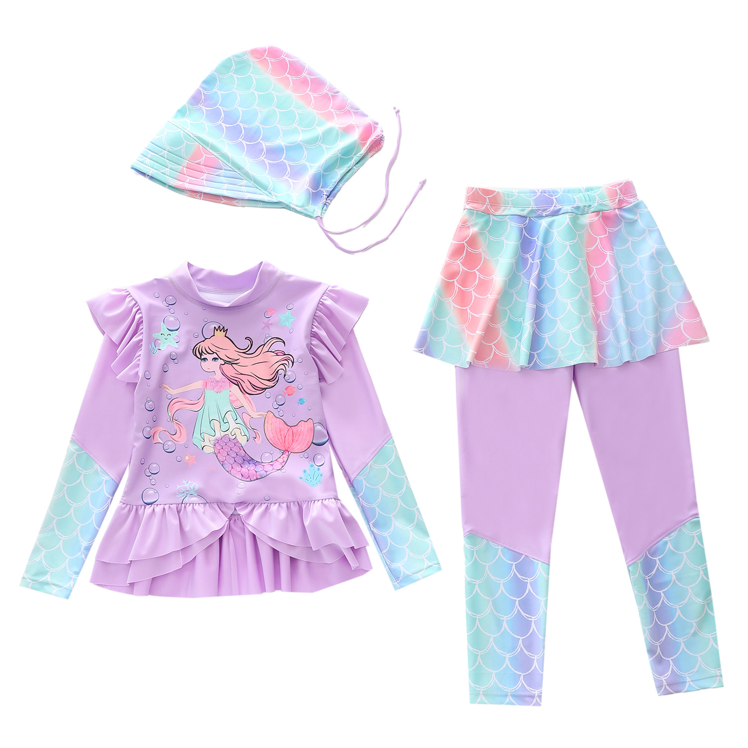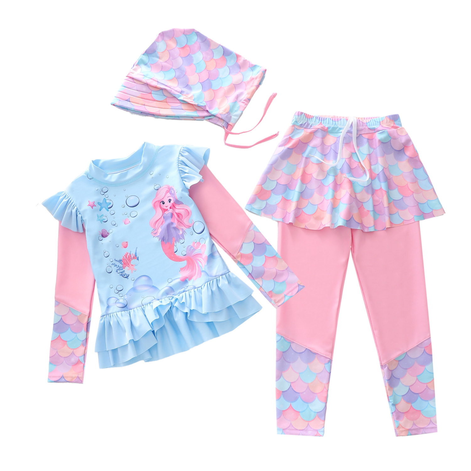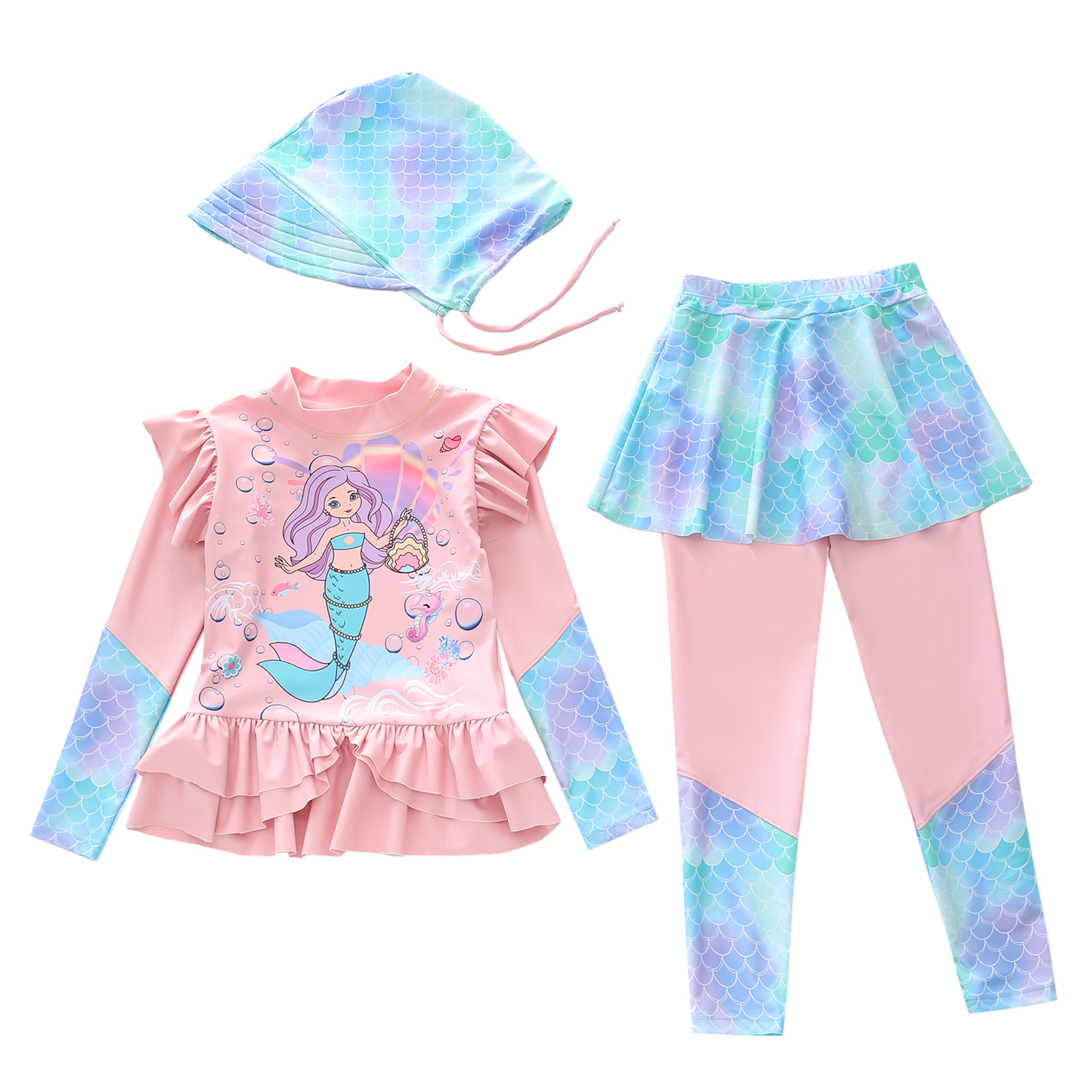 새로운 어린이 수영복 소녀 스플릿 소형, 중형 및 대형 어린이 긴팔 바지 스커트 태양 보호 수영복 만화 유행 소녀 수영복