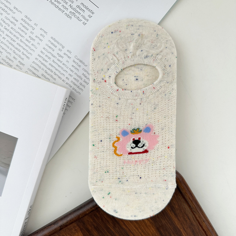 귀여운 양말 여성 보트 양말 여름 얇은 면화 보이지 않는 양말 얕은 입 양말 만화 일본 실리콘 미끄럼 방지 및 떨어지지 않는 발 뒤꿈치