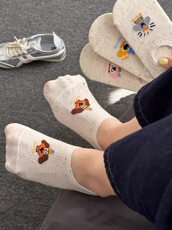 귀여운 양말 여성 보트 양말 여름 얇은 면화 보이지 않는 양말 얕은 입 양말 만화 일본 실리콘 미끄럼 방지 및 떨어지지 않는 발 뒤꿈치스토어 가기