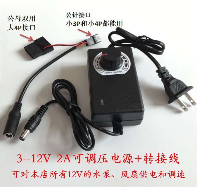 • 12V 2A 전원 공급 장치, 팬 및 워터 펌프를 공유할 수 있습니다.