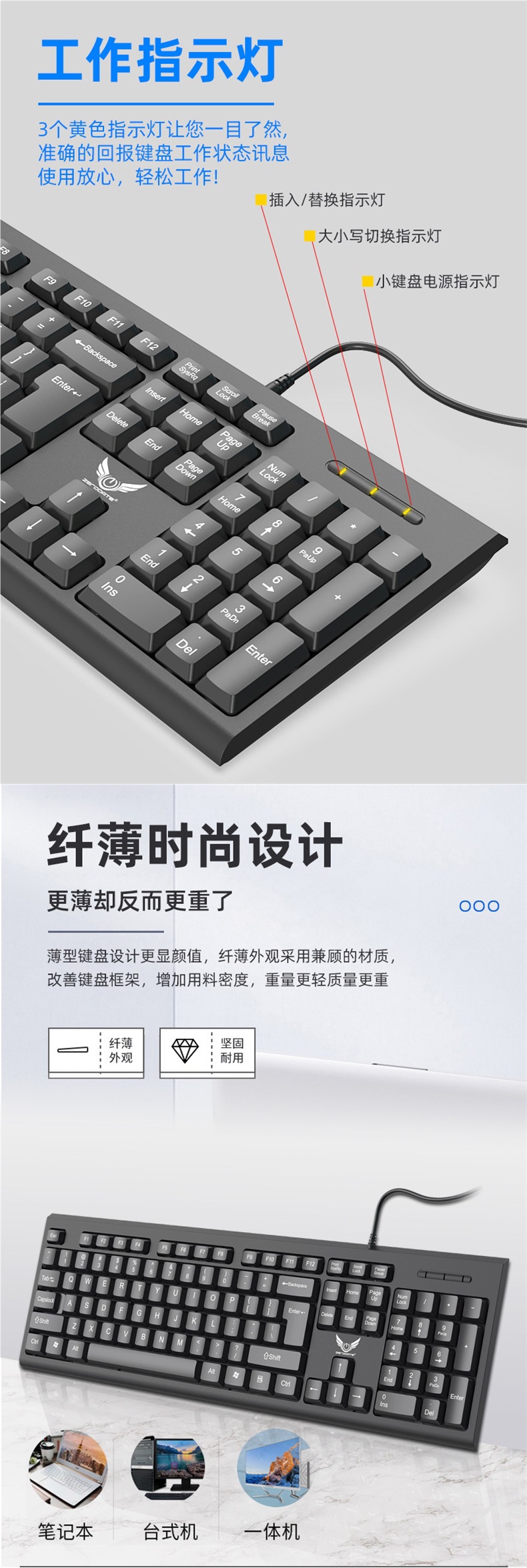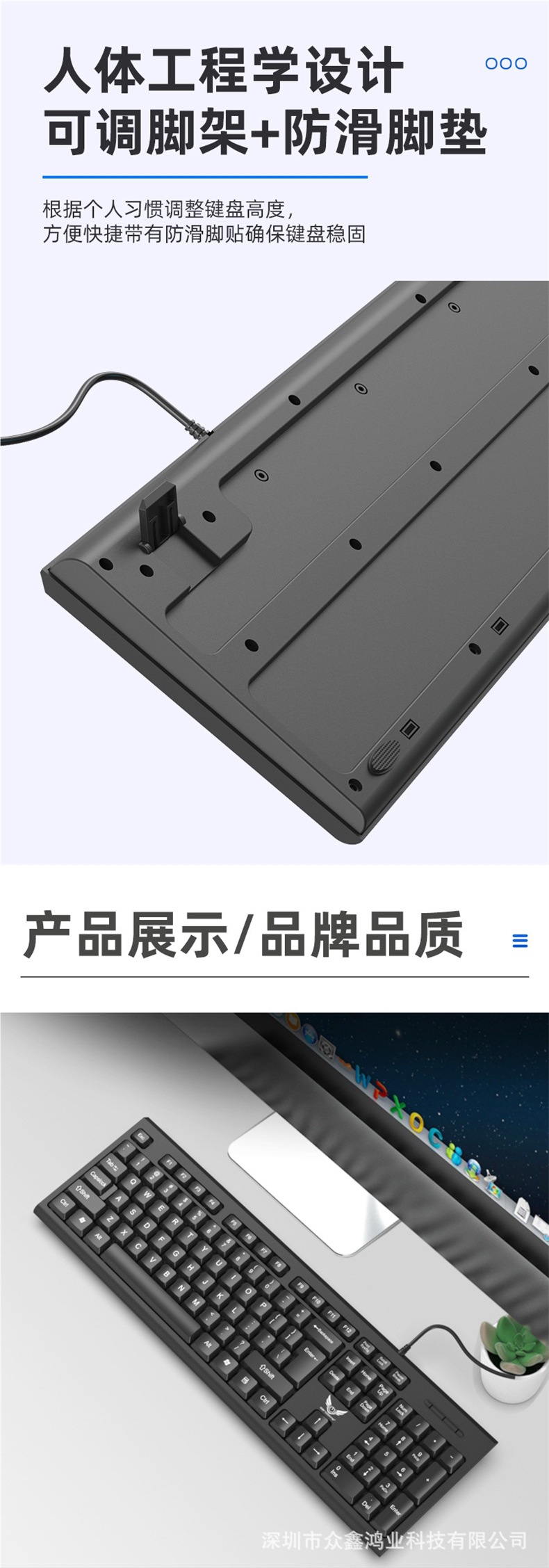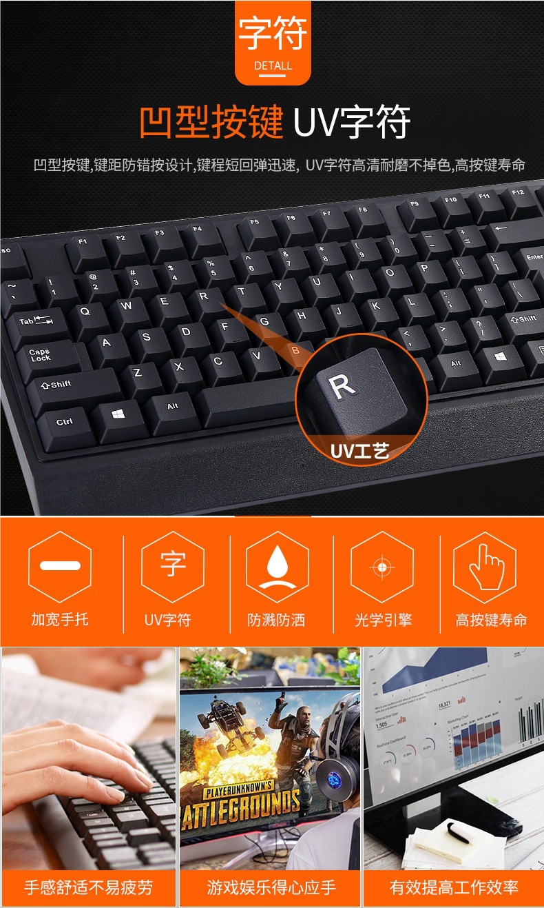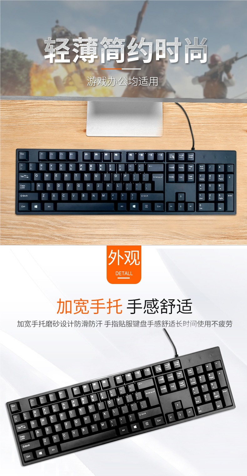 비즈니스 사무실 가정용 얇고 가벼운 USB 데스크탑 컴퓨터 액세서리 키보드 크로스보더에 적합한 공장 직접 공급 유선 키보드