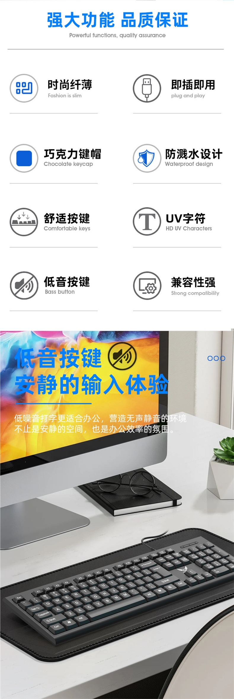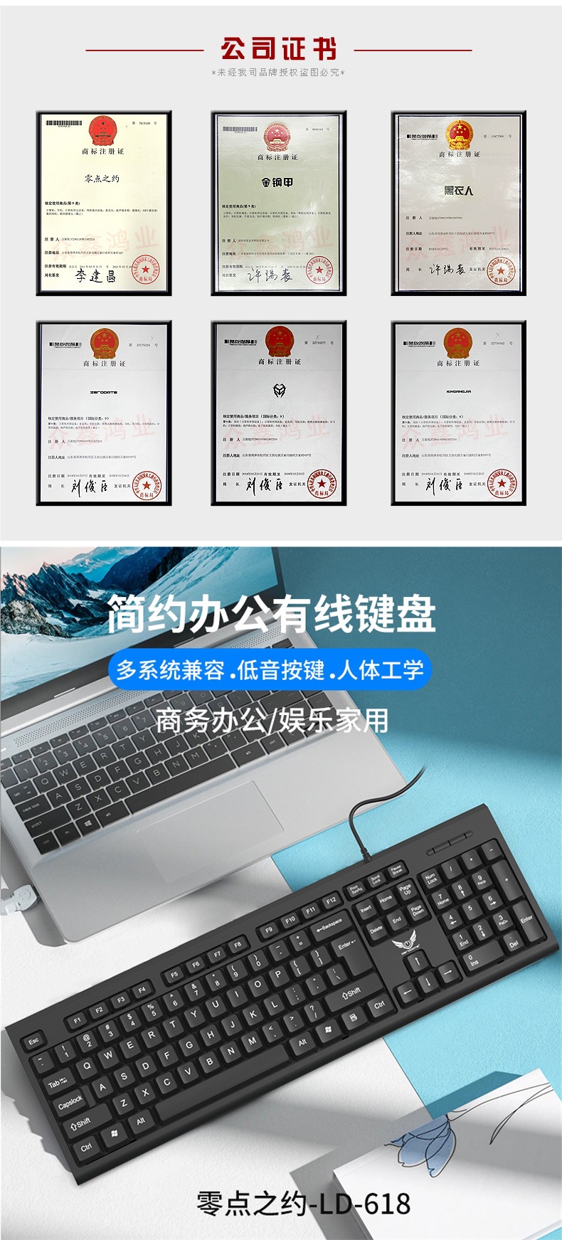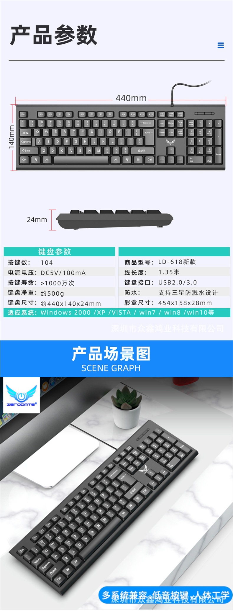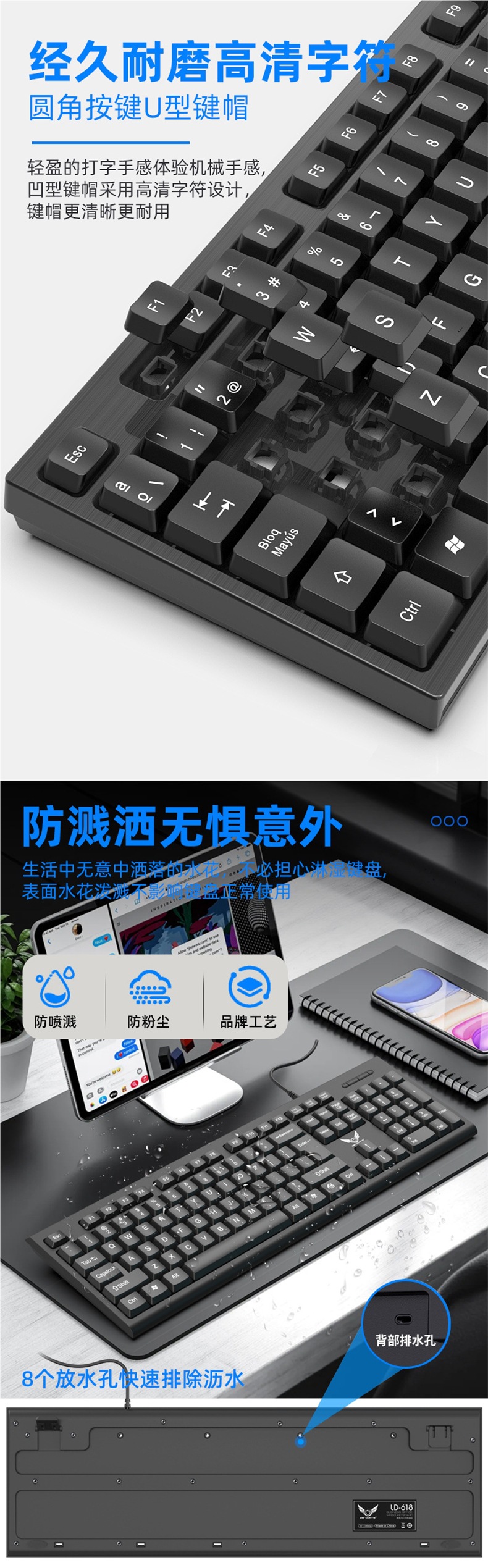 비즈니스 사무실 가정용 얇고 가벼운 USB 데스크탑 컴퓨터 액세서리 키보드 크로스보더에 적합한 공장 직접 공급 유선 키보드