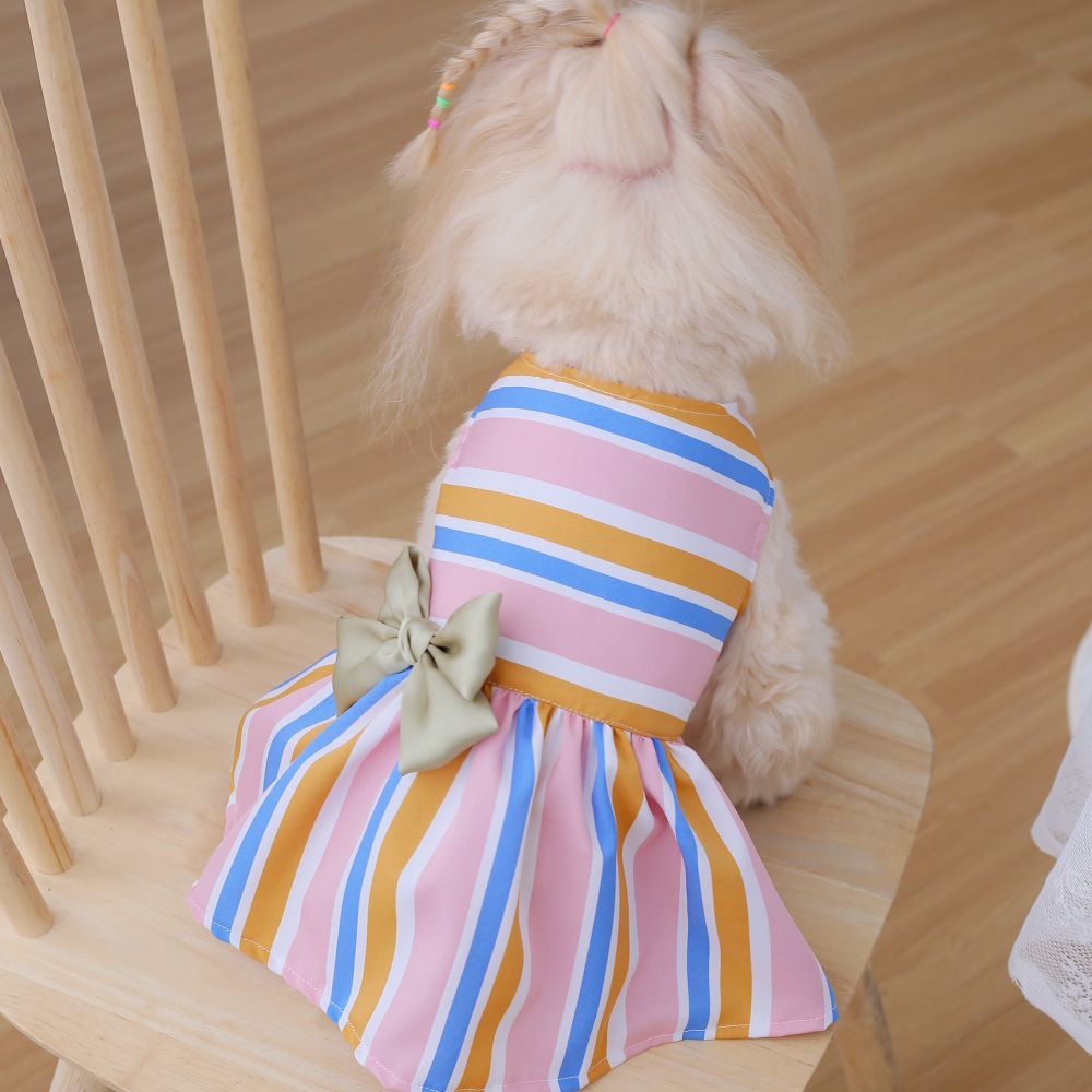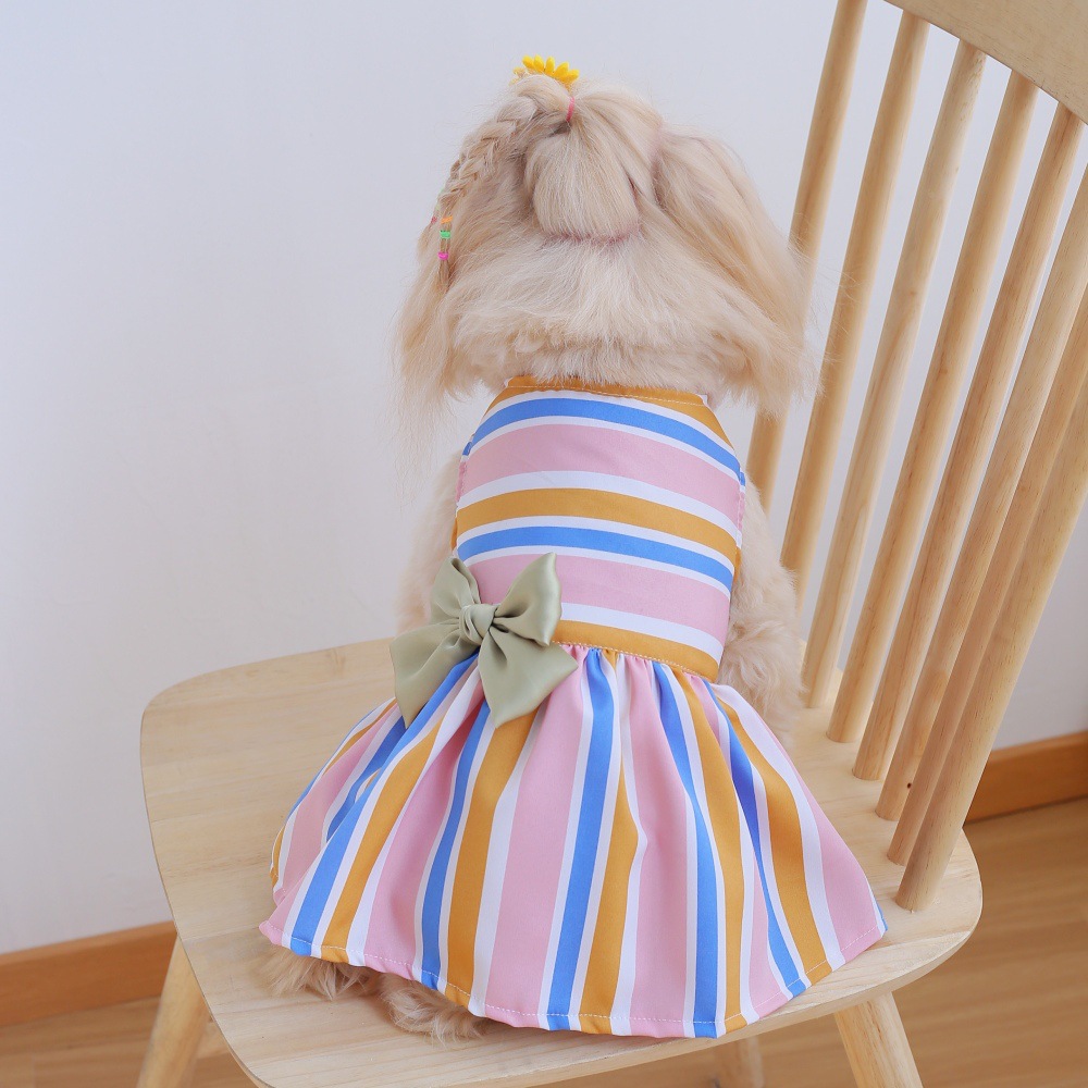 애완 동물 얇은 활 여름 개 스커트 고양이 옷 귀여운 비숑 테디 애완 동물 액세서리 재고 있음 도매스토어 가기
