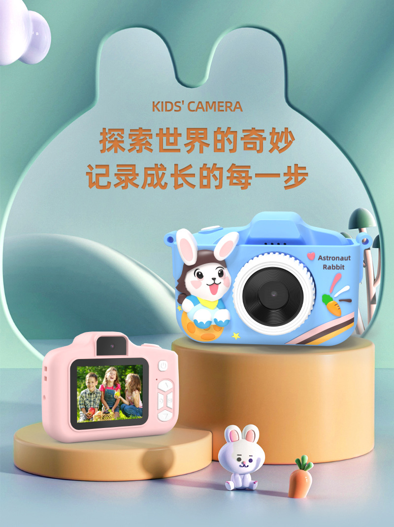 새로운 국경 간 토끼 어린이 카메라 만화 디지털 미니 재미 카메라 HD 듀얼 카메라 장난감 선물 제조업체