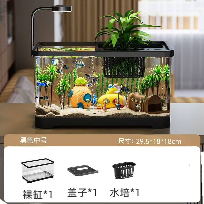 투명 대용량 어항, 뚜껑 포함, 조명 부착 가능, 생태 수조, 풍경 조성, 거북이 수조, 미니어처 필터, 거북이 사육 수조스토어 가기