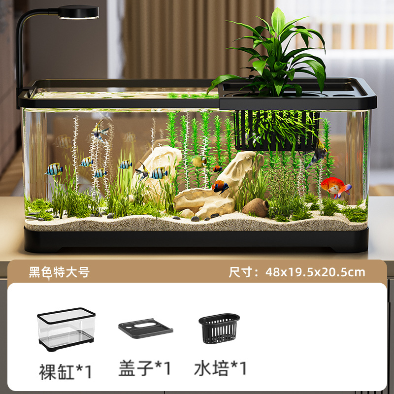 투명 대용량 어항, 뚜껑 포함, 조명 부착 가능, 생태 수조, 풍경 조성, 거북이 수조, 미니어처 필터, 거북이 사육 수조