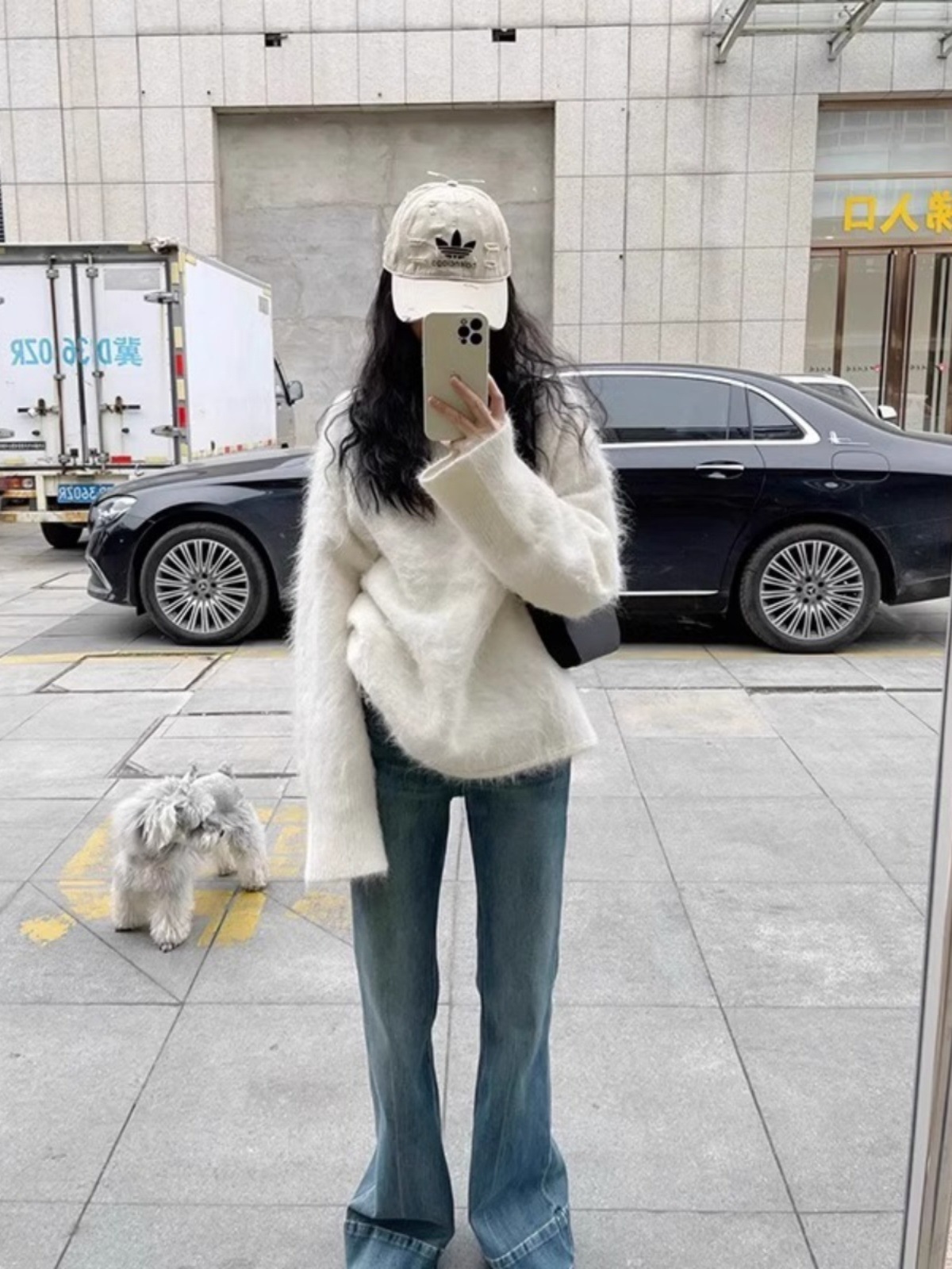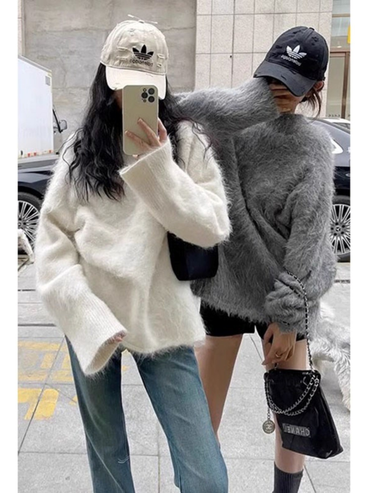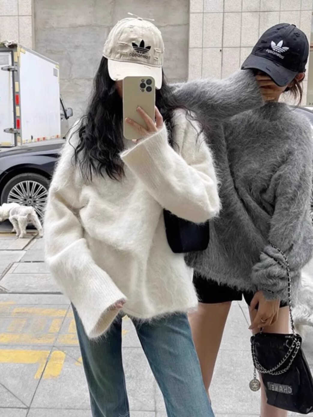 밀크 푸푸 게으른 스타일 흰색 해마 울 스웨터 여성의 가을과 겨울 착용 고급 밍크 벨벳 스웨터 탑스토어 가기