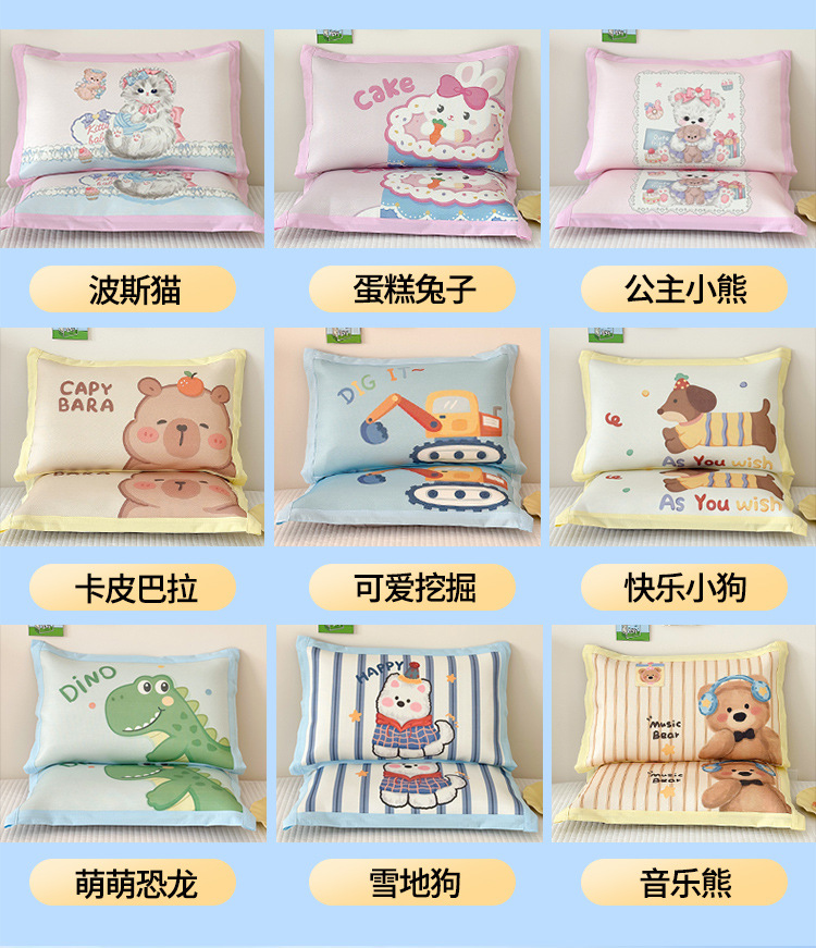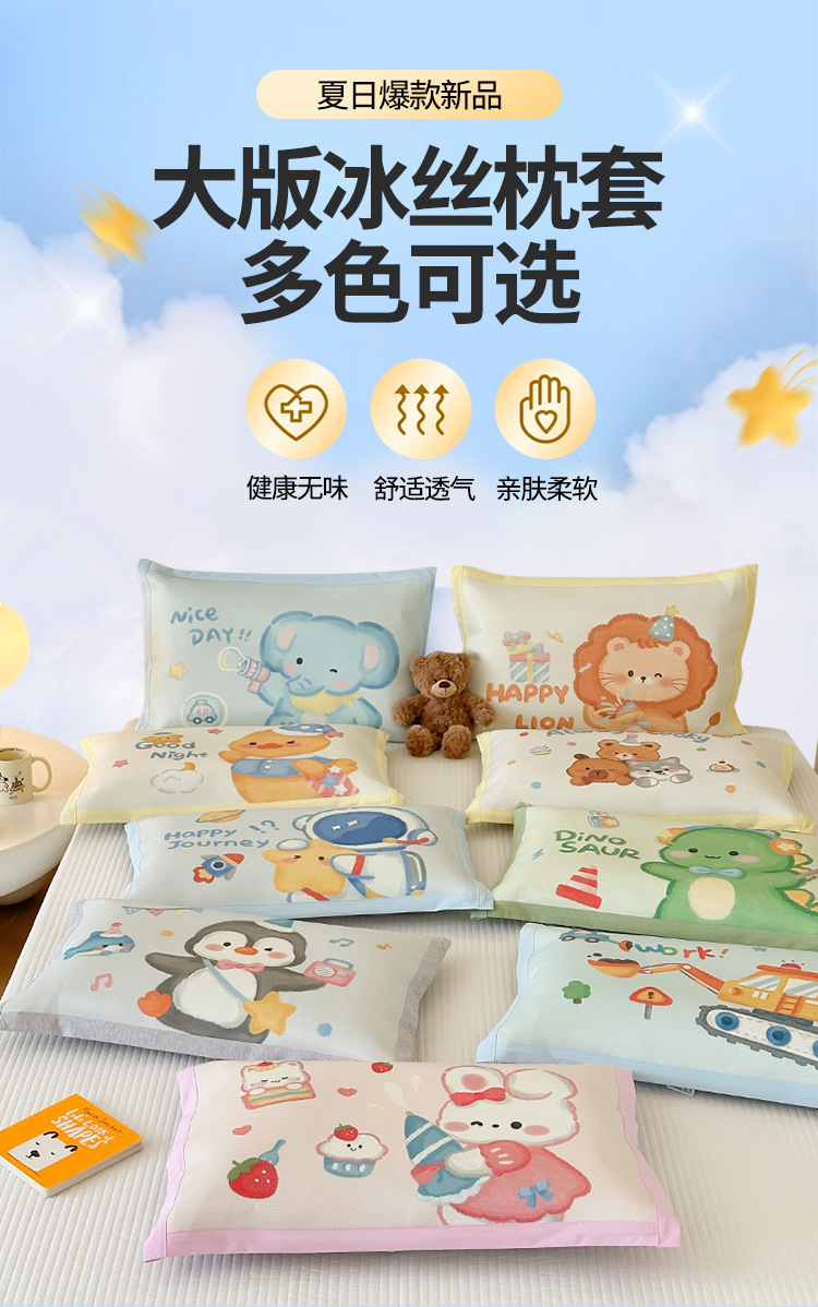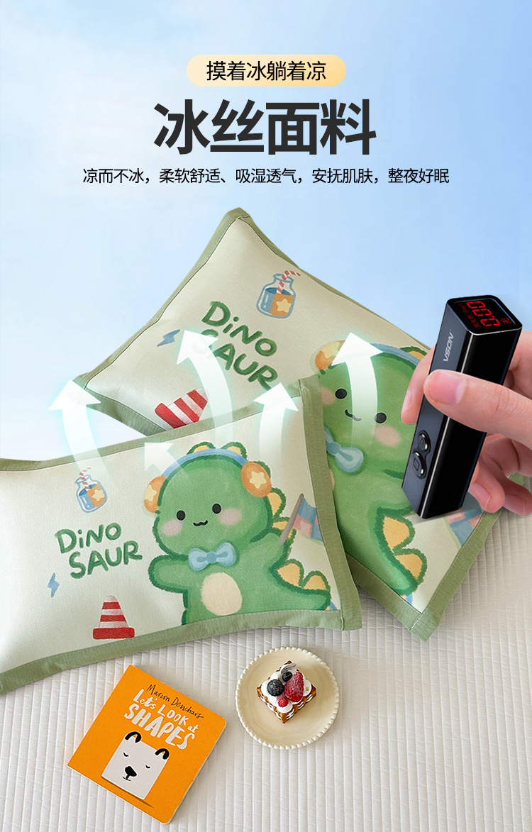 어린이용 여름 냉방베개, 탈부착 및 세탁 가능, A급 대형 아이스 실크 베갯잇, 유치원 베개심, 여름 유아베개스토어 가기