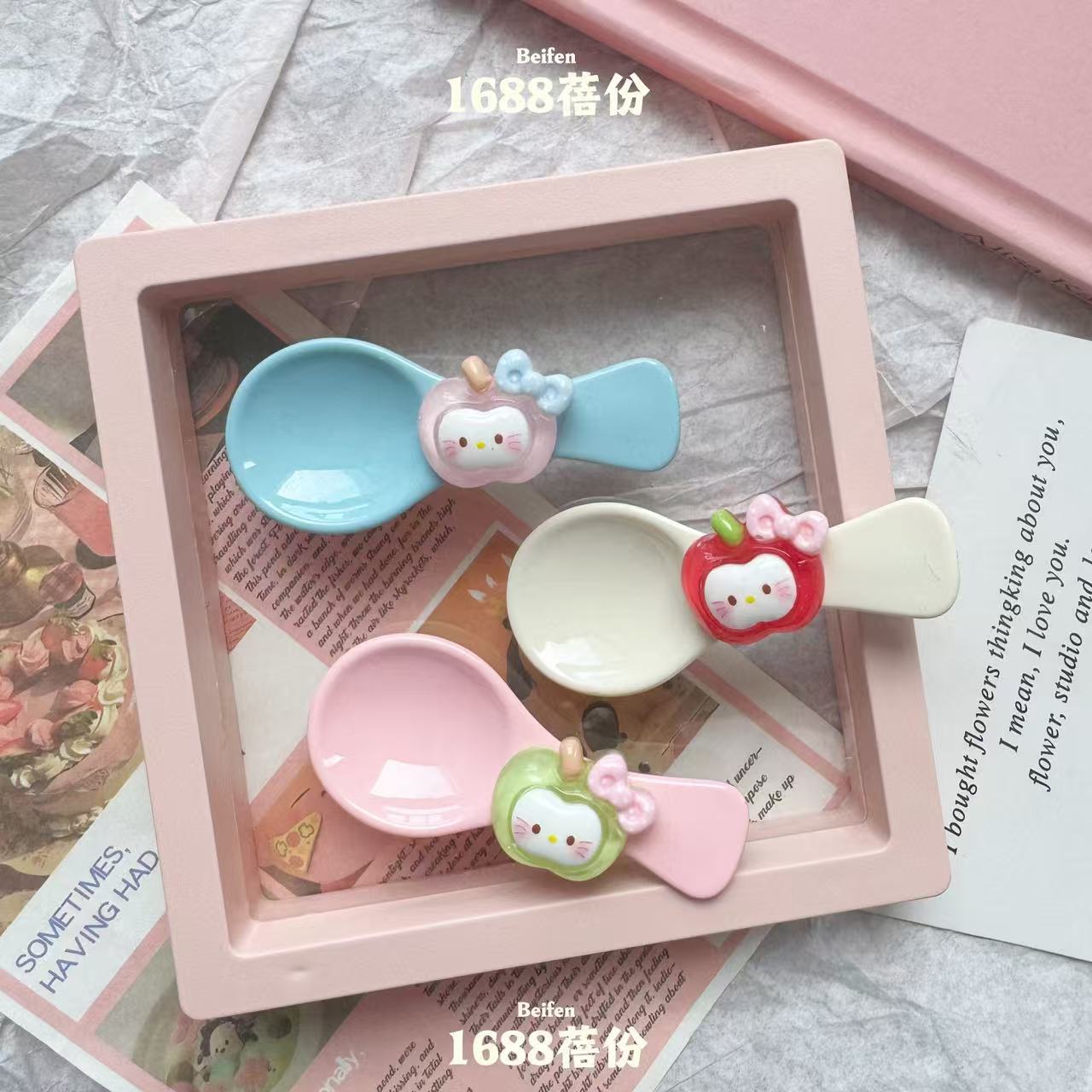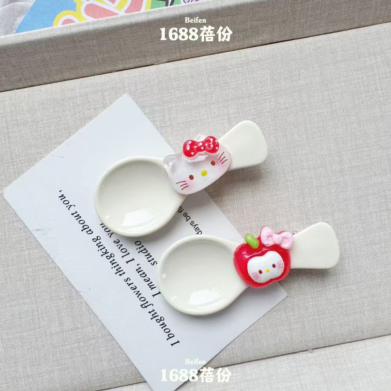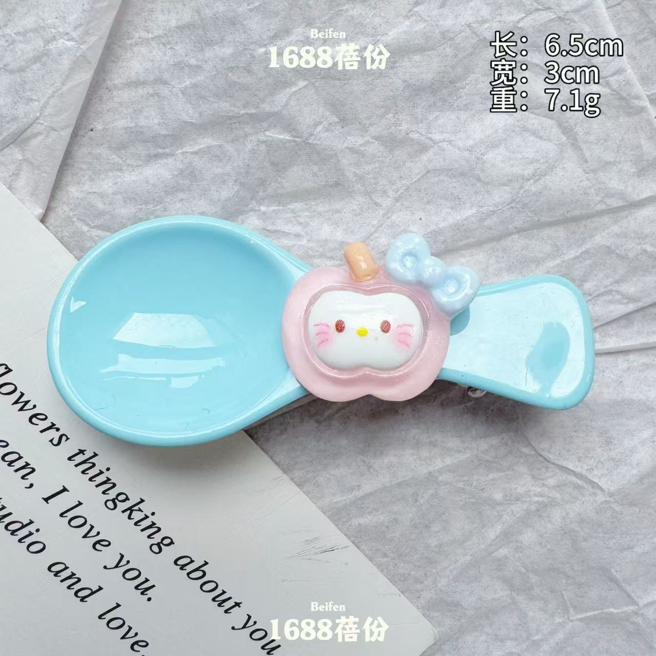 재미 만화 애플 KT 숟가락 헤어핀 귀여운 올매치 소녀 하트 브레이크 덕 머스 클립 어린이 뱅 사이드 클립스토어 가기