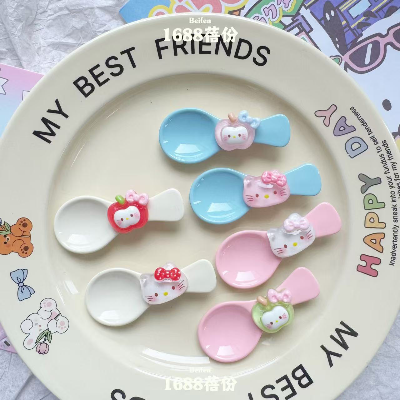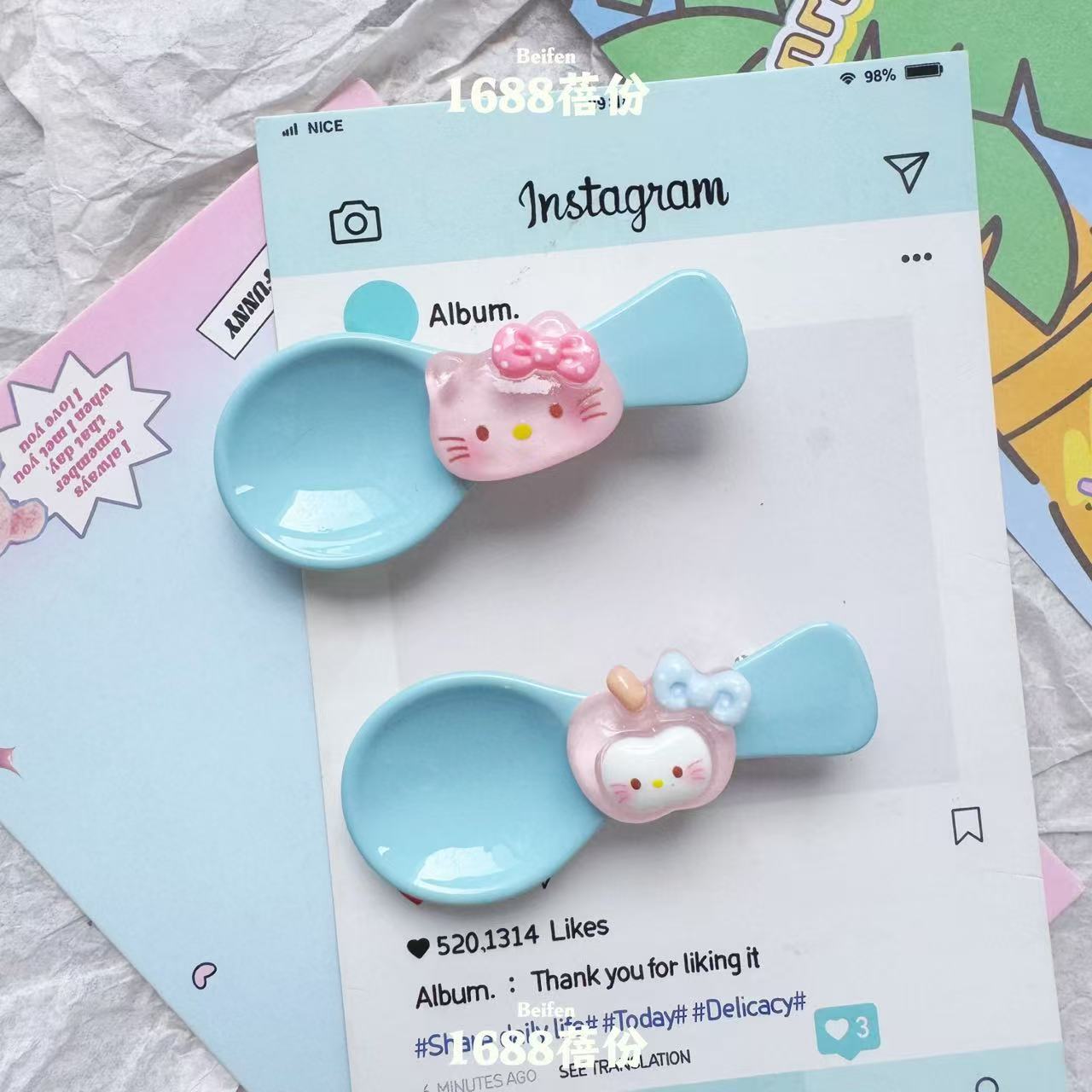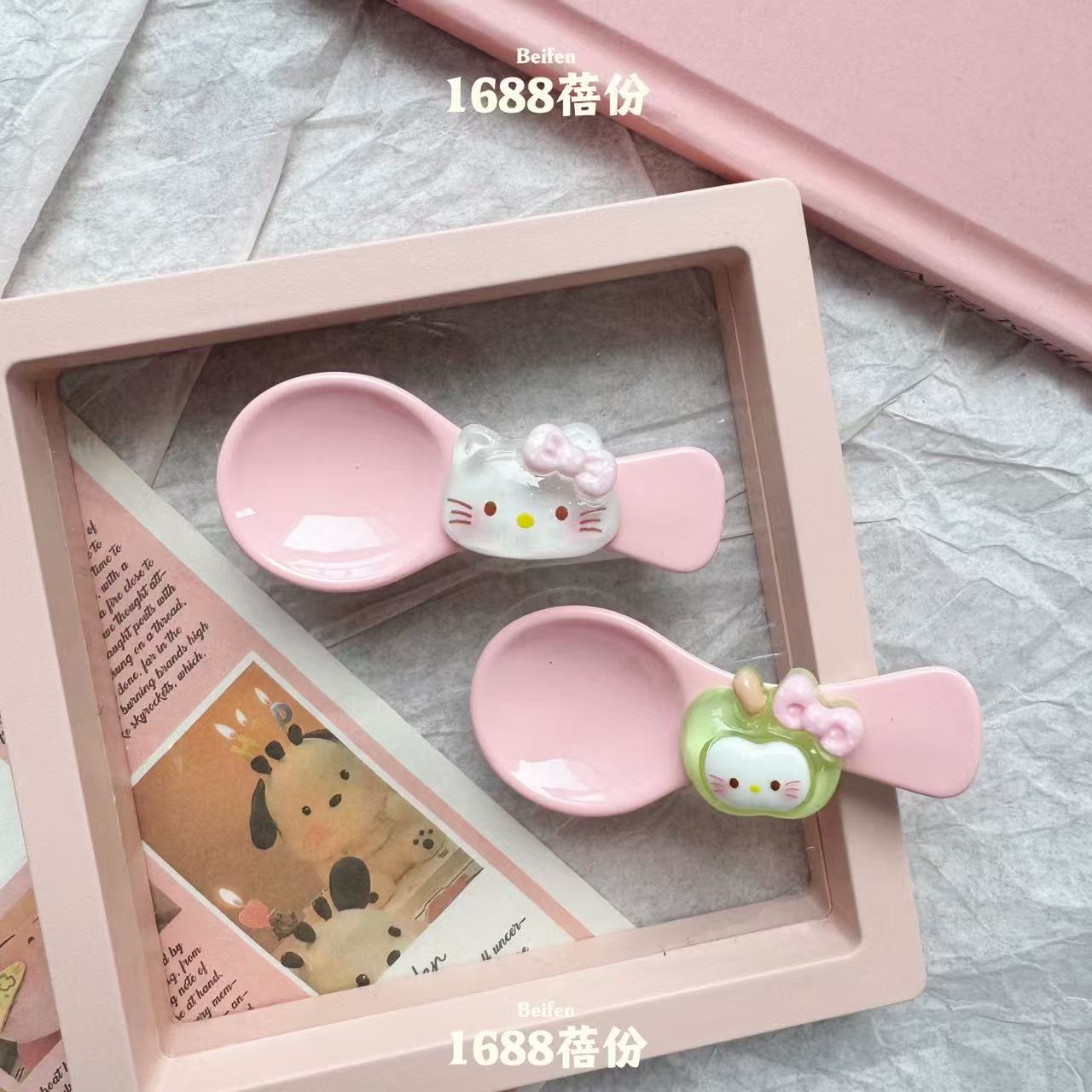 재미 만화 애플 KT 숟가락 헤어핀 귀여운 올매치 소녀 하트 브레이크 덕 머스 클립 어린이 뱅 사이드 클립스토어 가기
