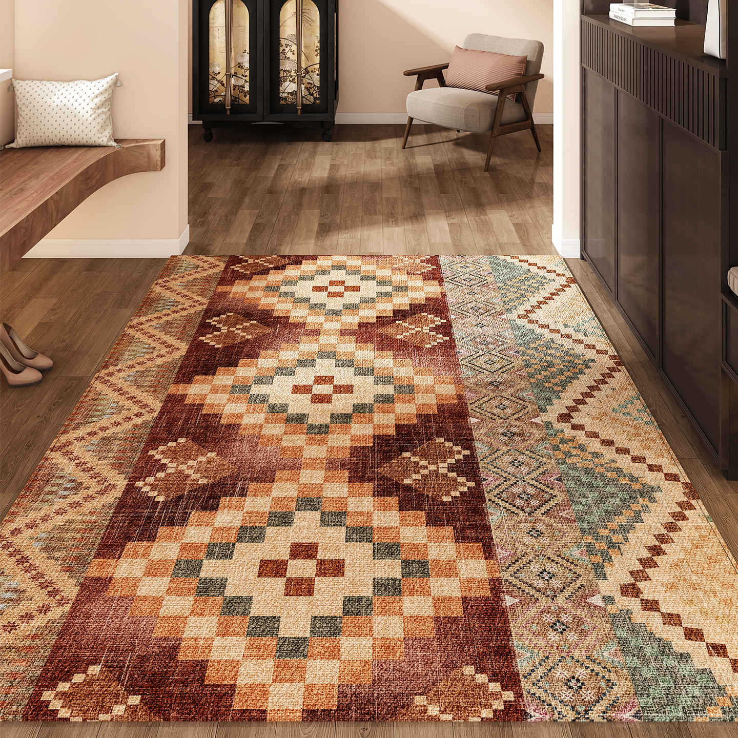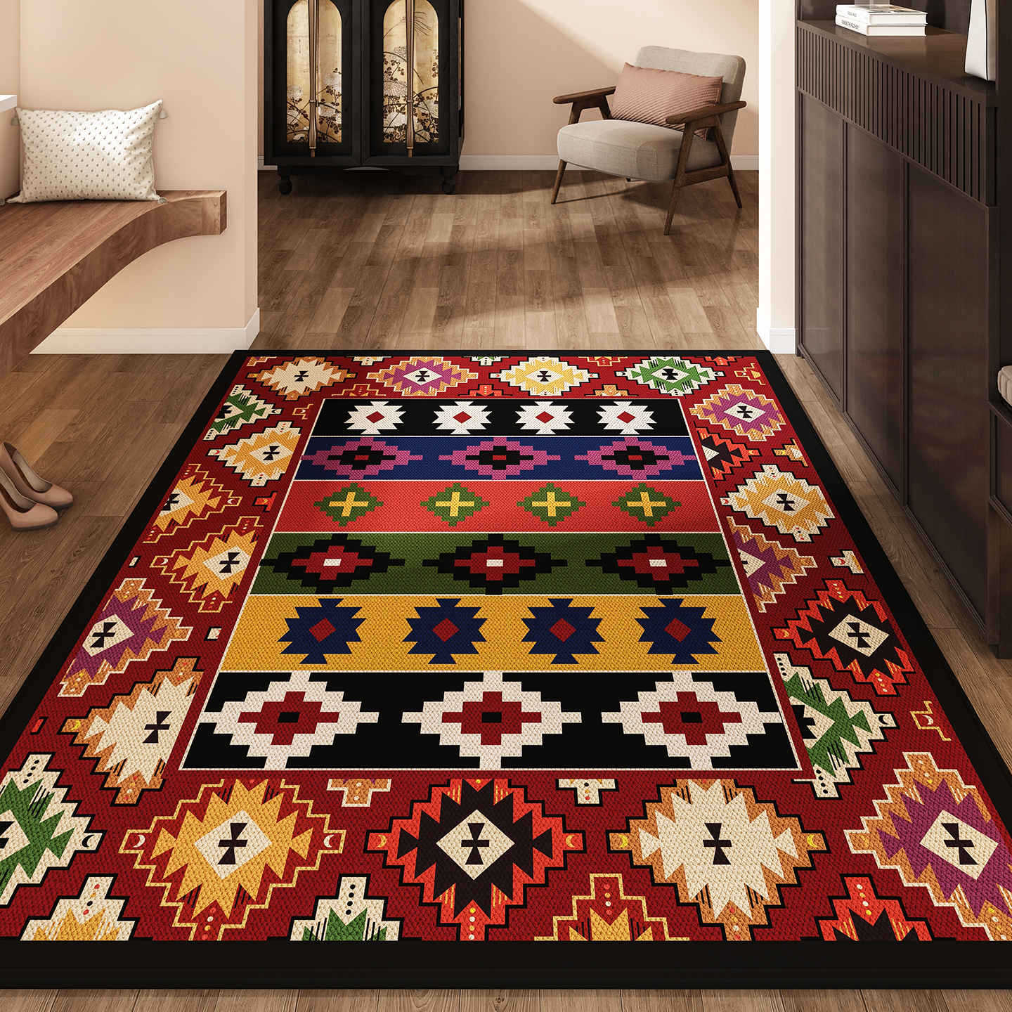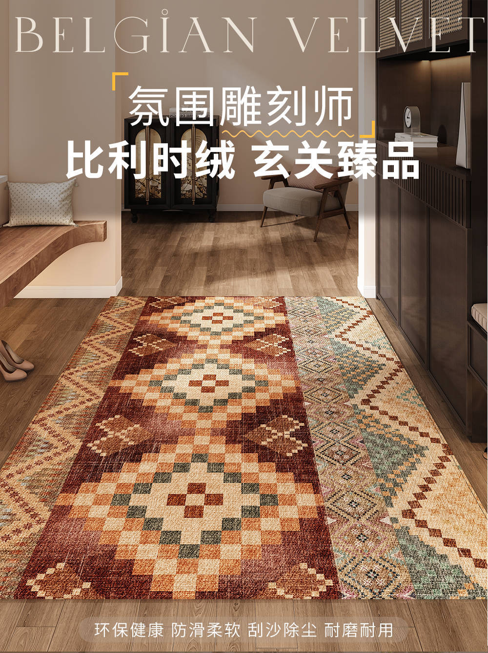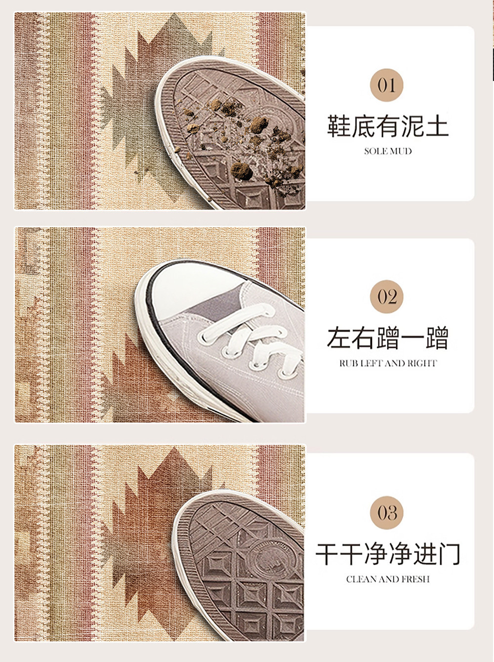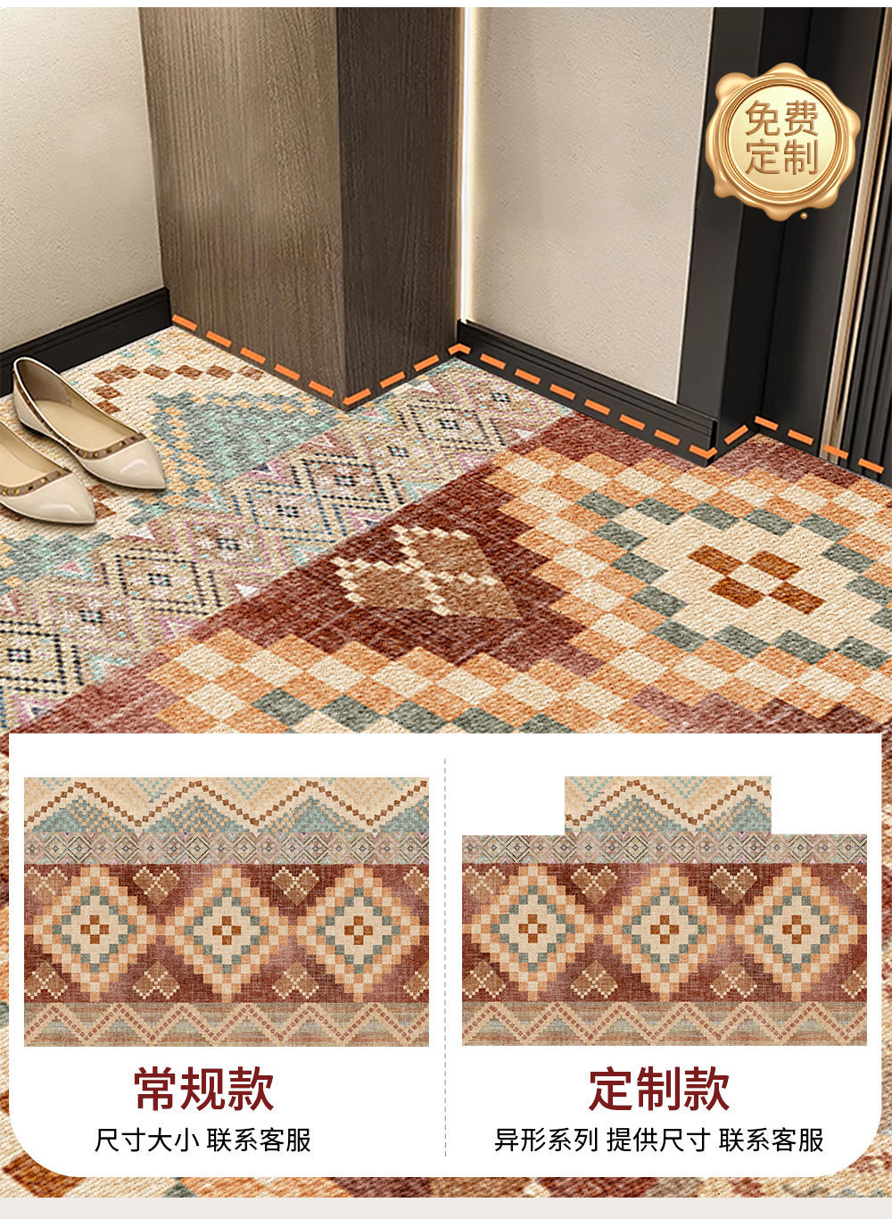 국경 간 노르딕 민족 스타일 입구 바닥 매트 입구 문 카펫 더러운 방수 워시 프리 미끄럼 방지 발 매트 절단 가능
