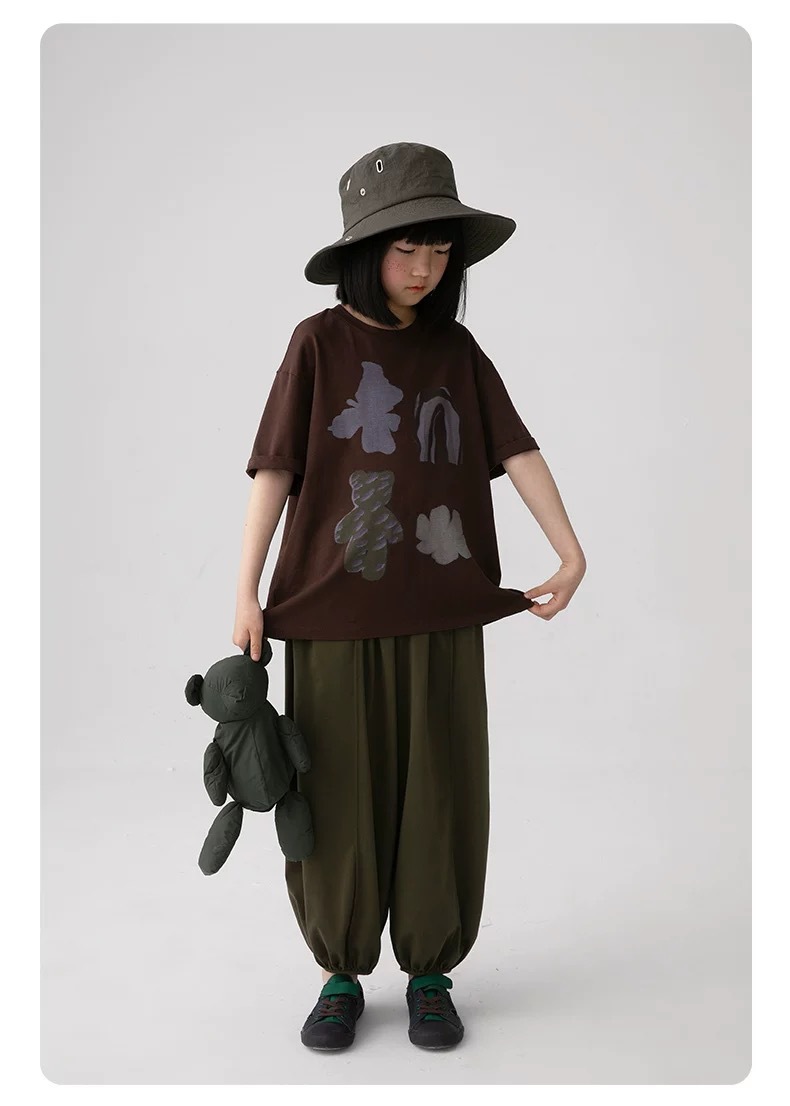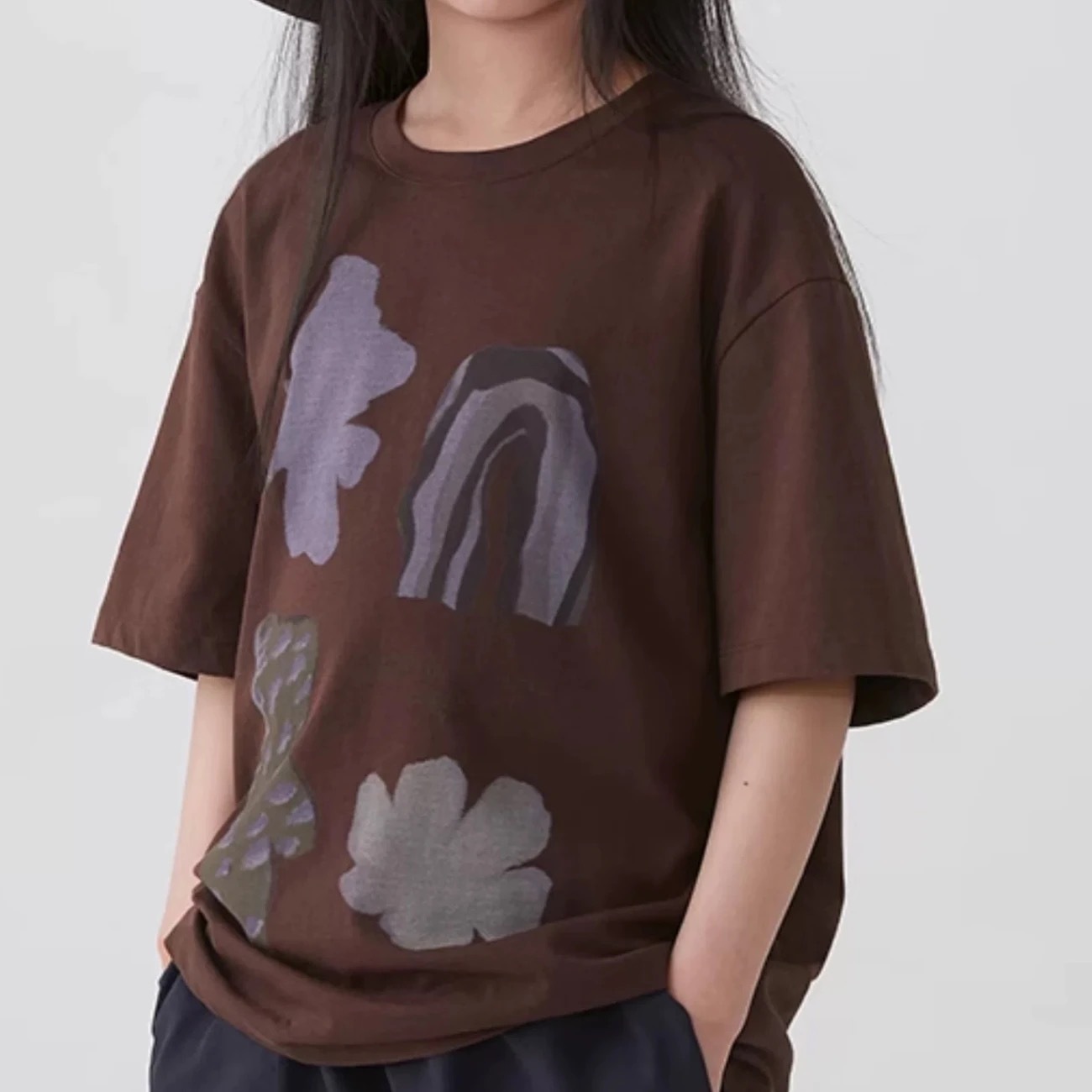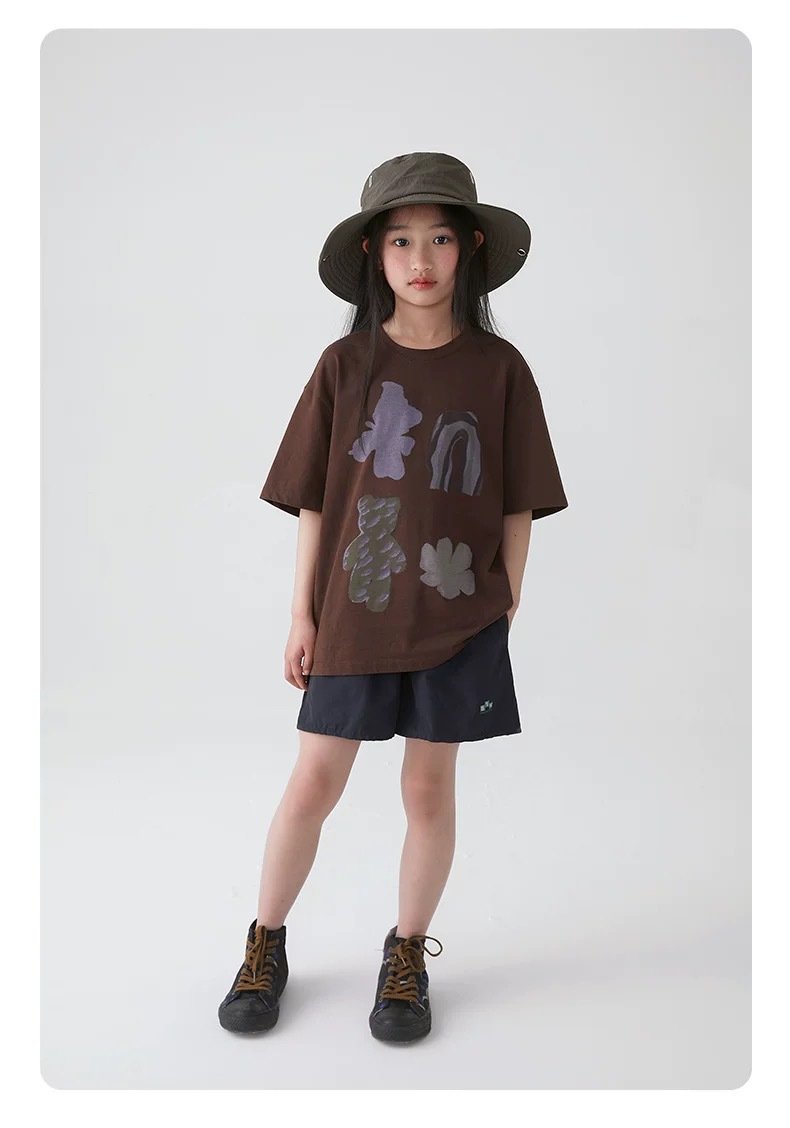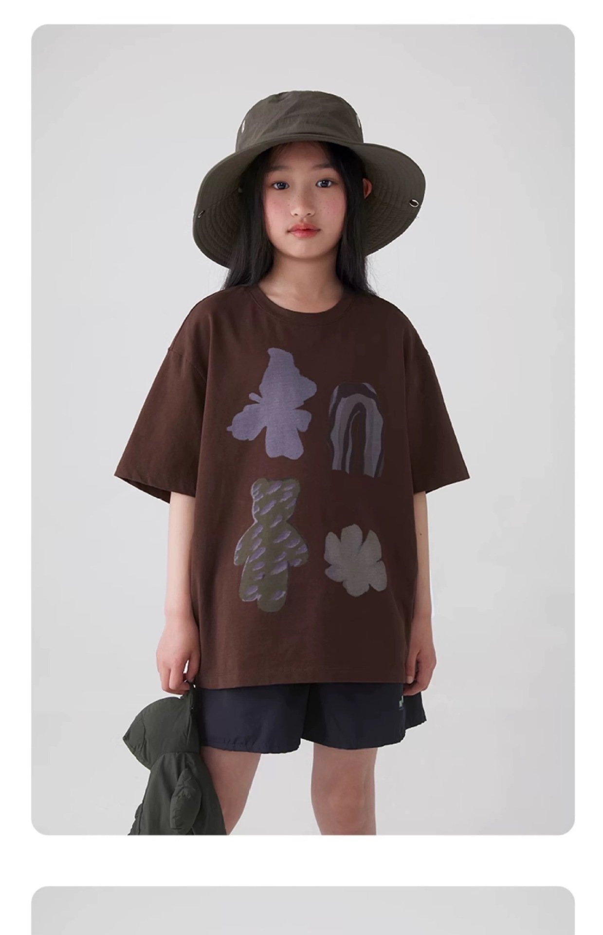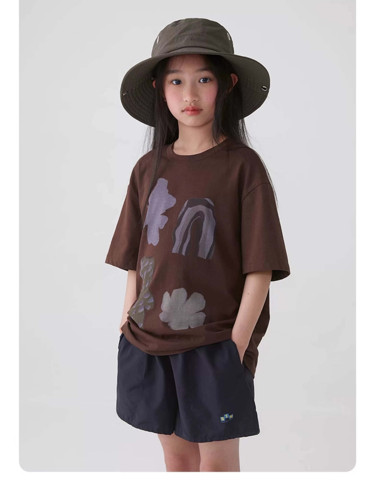 여아 여름 순면 티셔츠 손으로 그린 프린트 여아 반팔 루즈하고 다재다능한 아동 패션 큰 아동복스토어 가기