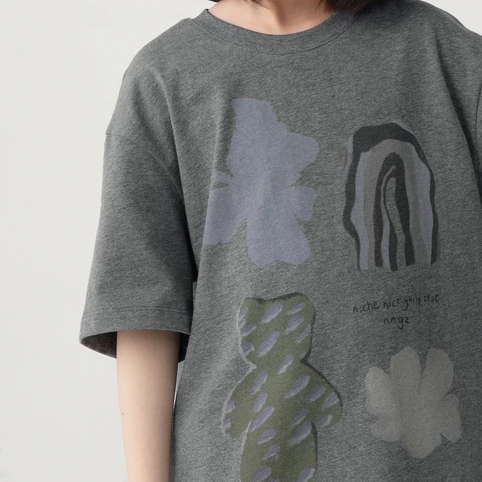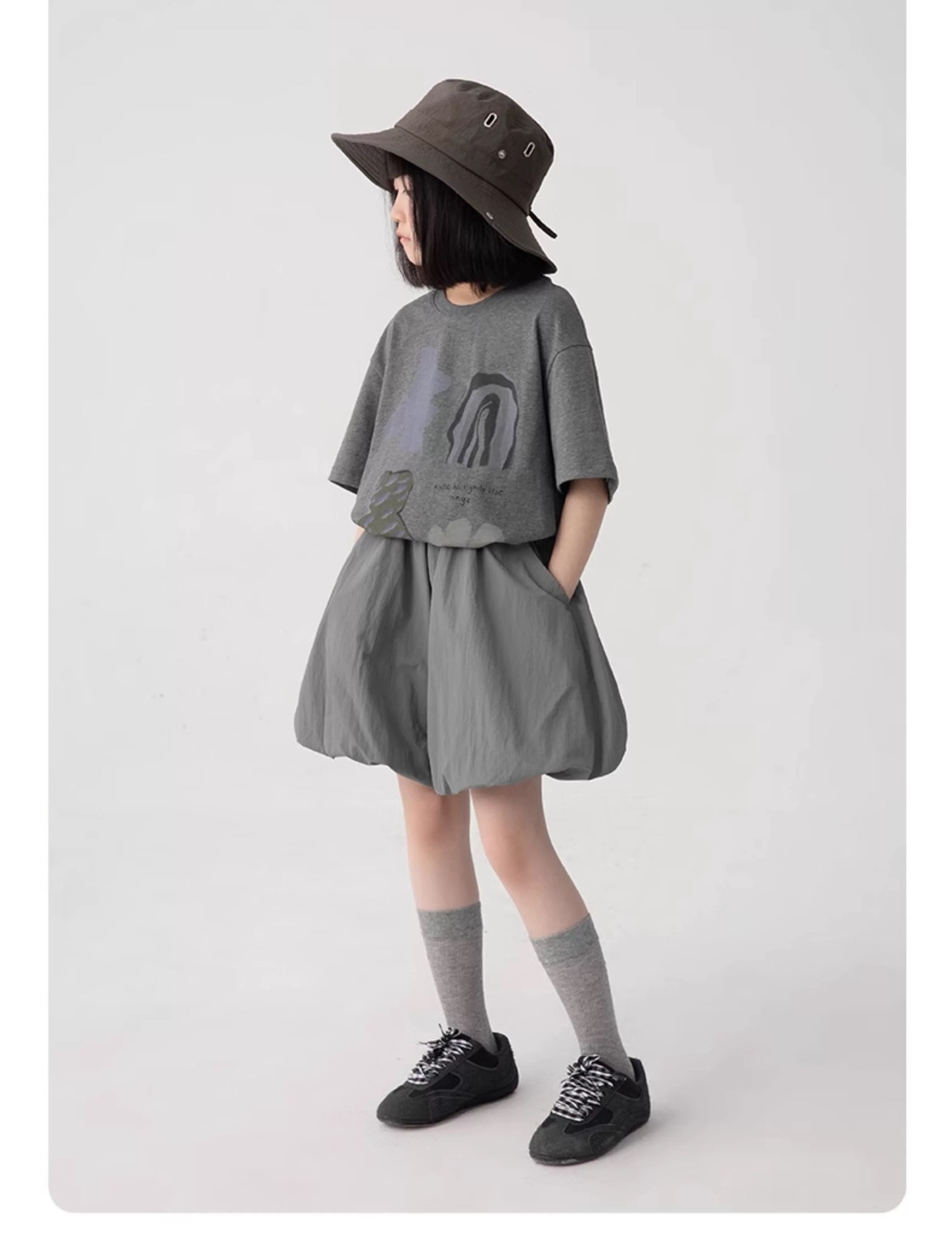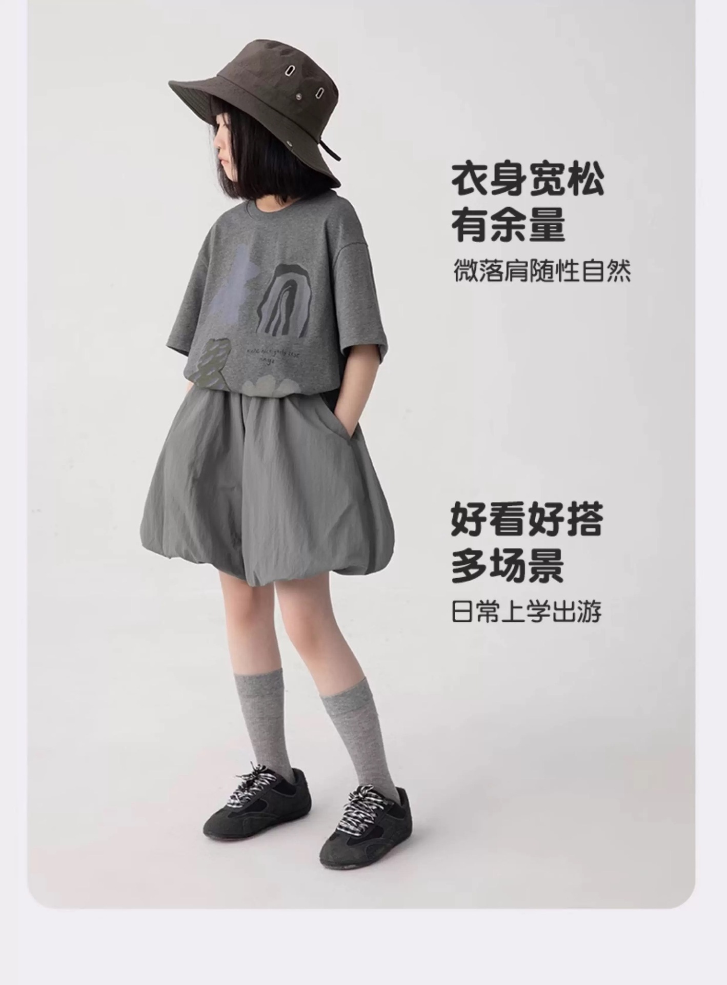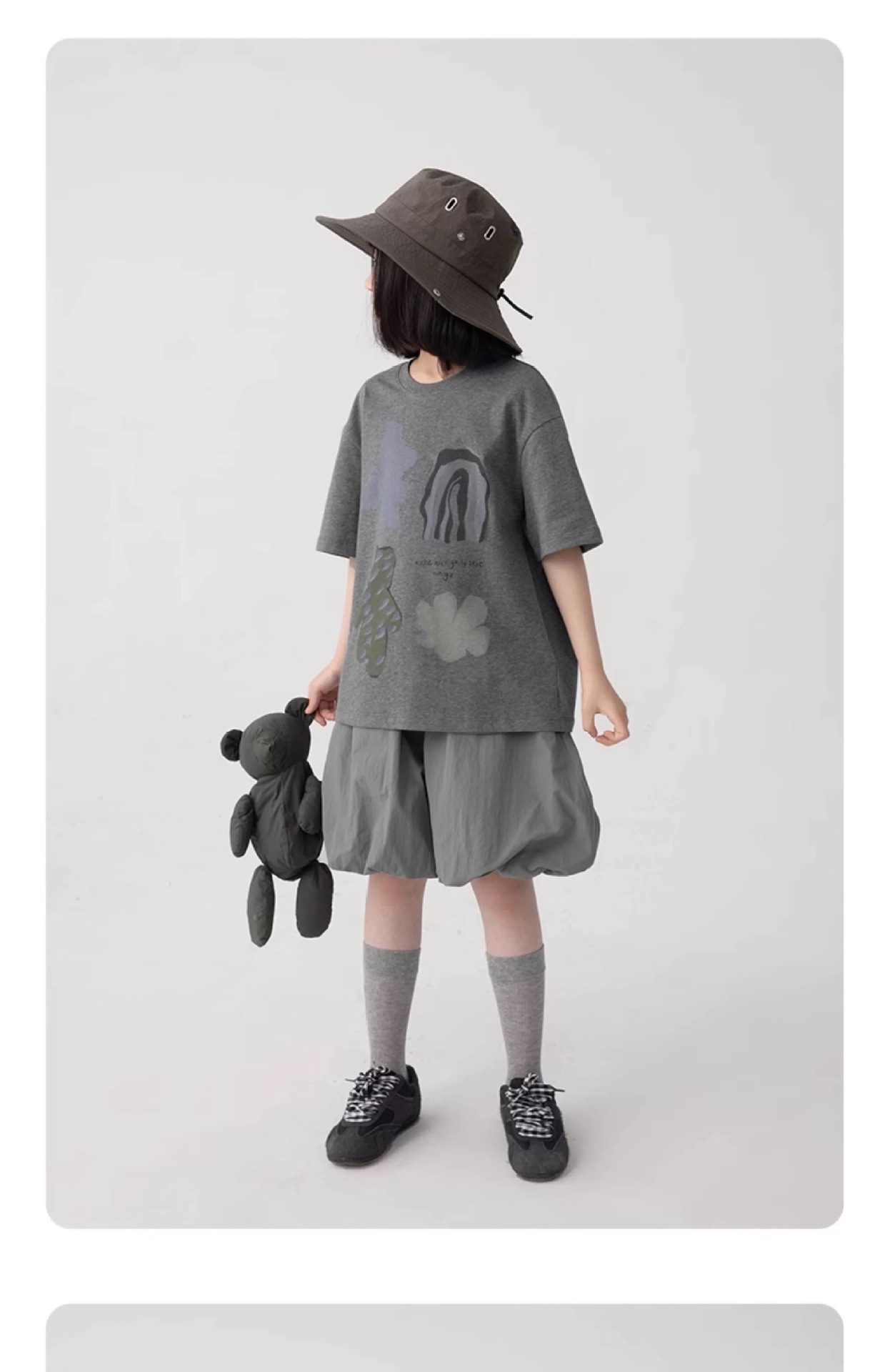 여아 여름 순면 티셔츠 손으로 그린 프린트 여아 반팔 루즈하고 다재다능한 아동 패션 큰 아동복스토어 가기