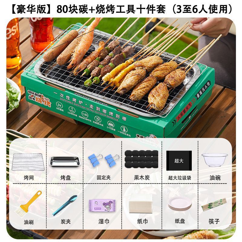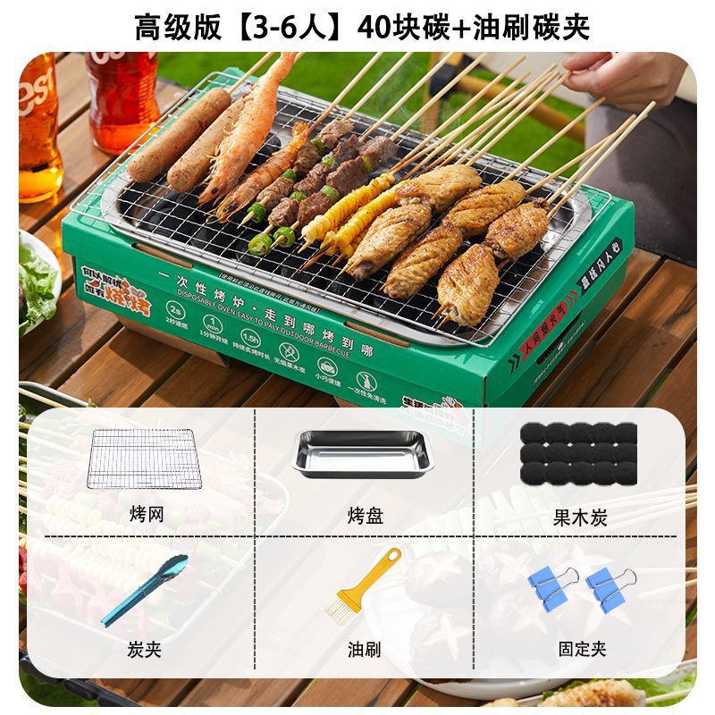 일회용 BBQ 그릴 가정용 간단한 BBQ 그릴 세트 야외 빠른 연소 탄소 그릴 작은 바베큐 그릴 랙스토어 가기