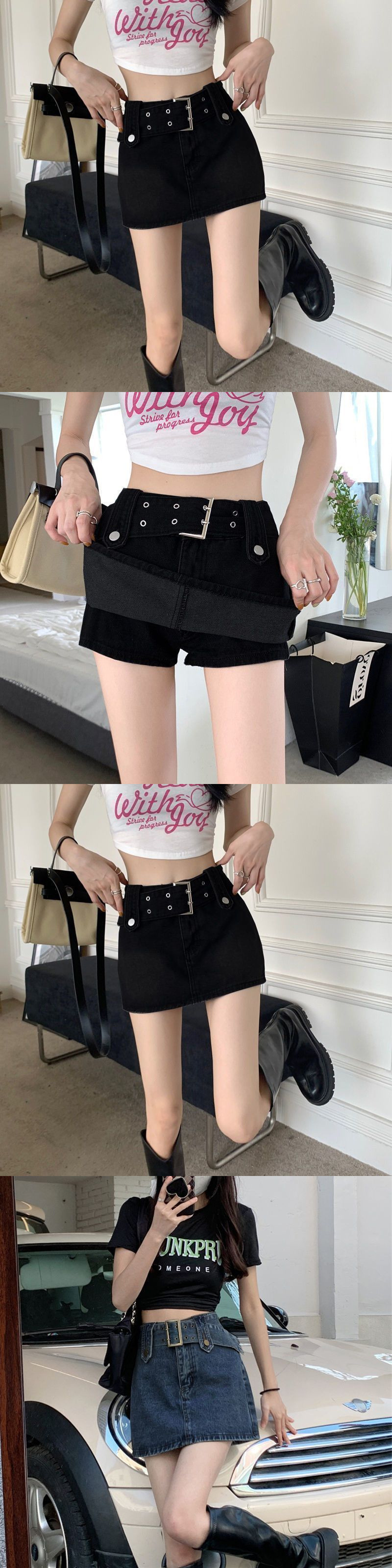 데님 스커트 여성 2025 여름 새로운 복고풍 슬림 하이 웨이스트 핫 소녀 미니 스커트 힙 스커트 스커트스토어 가기