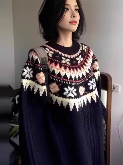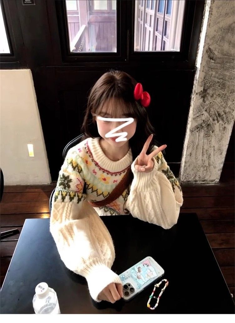 Yeyuan 한국 스타일 페어 아일 스웨터 여성 가을, 겨울 2024 새로운 한국 스타일 게으른 스타일 하이 엔드 풀오버 니트 탑