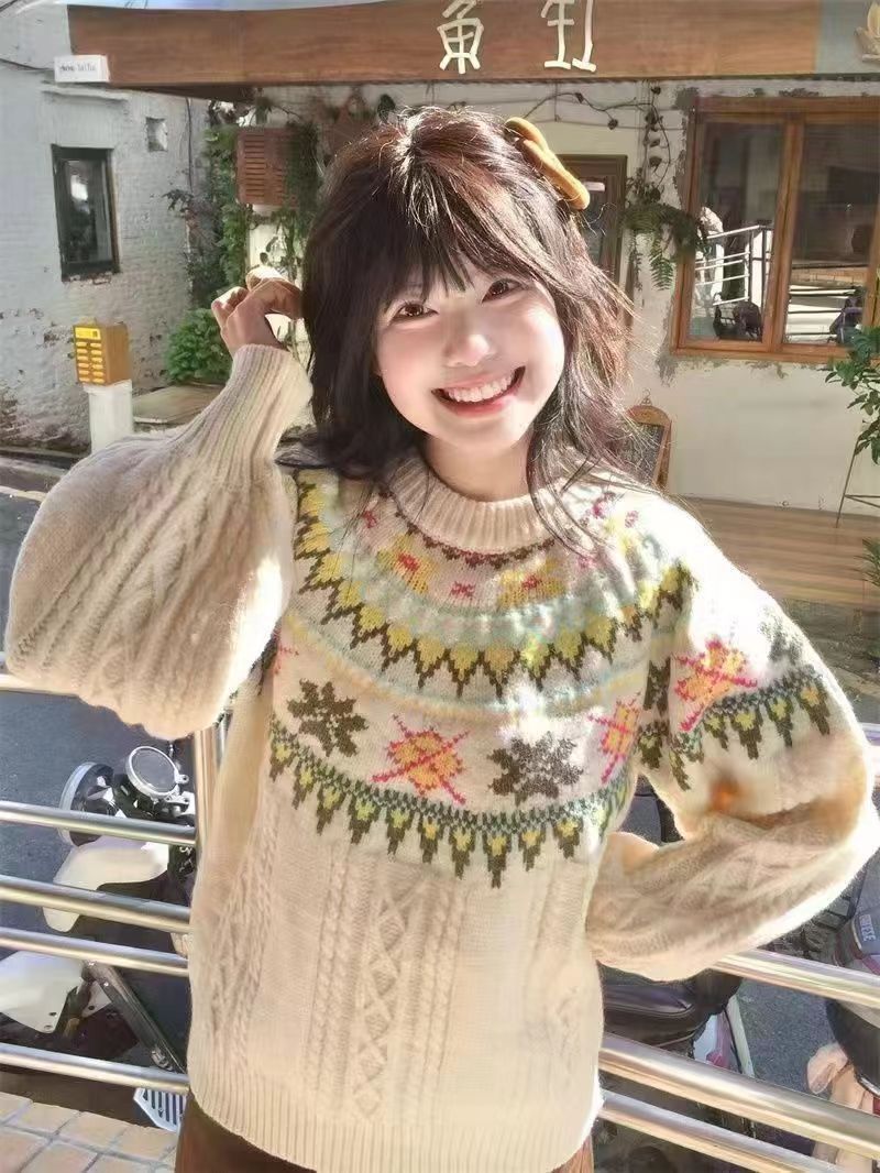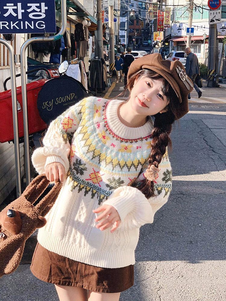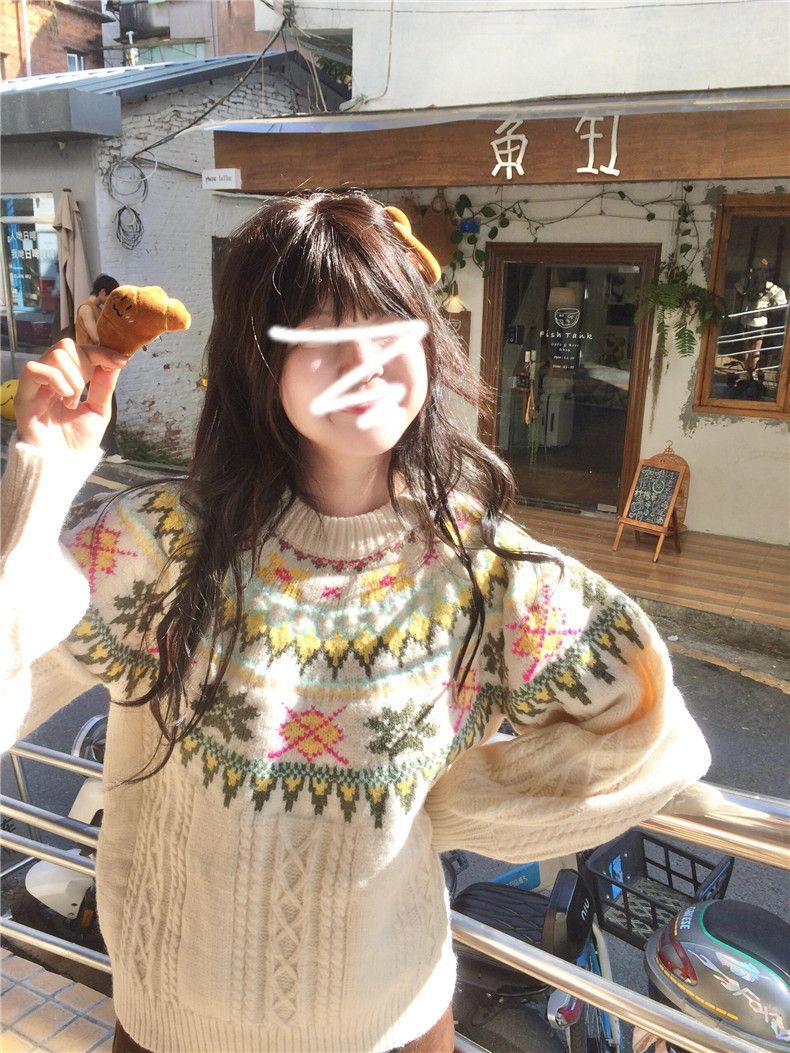 Yeyuan 한국 스타일 페어 아일 스웨터 여성 가을, 겨울 2024 새로운 한국 스타일 게으른 스타일 하이 엔드 풀오버 니트 탑스토어 가기