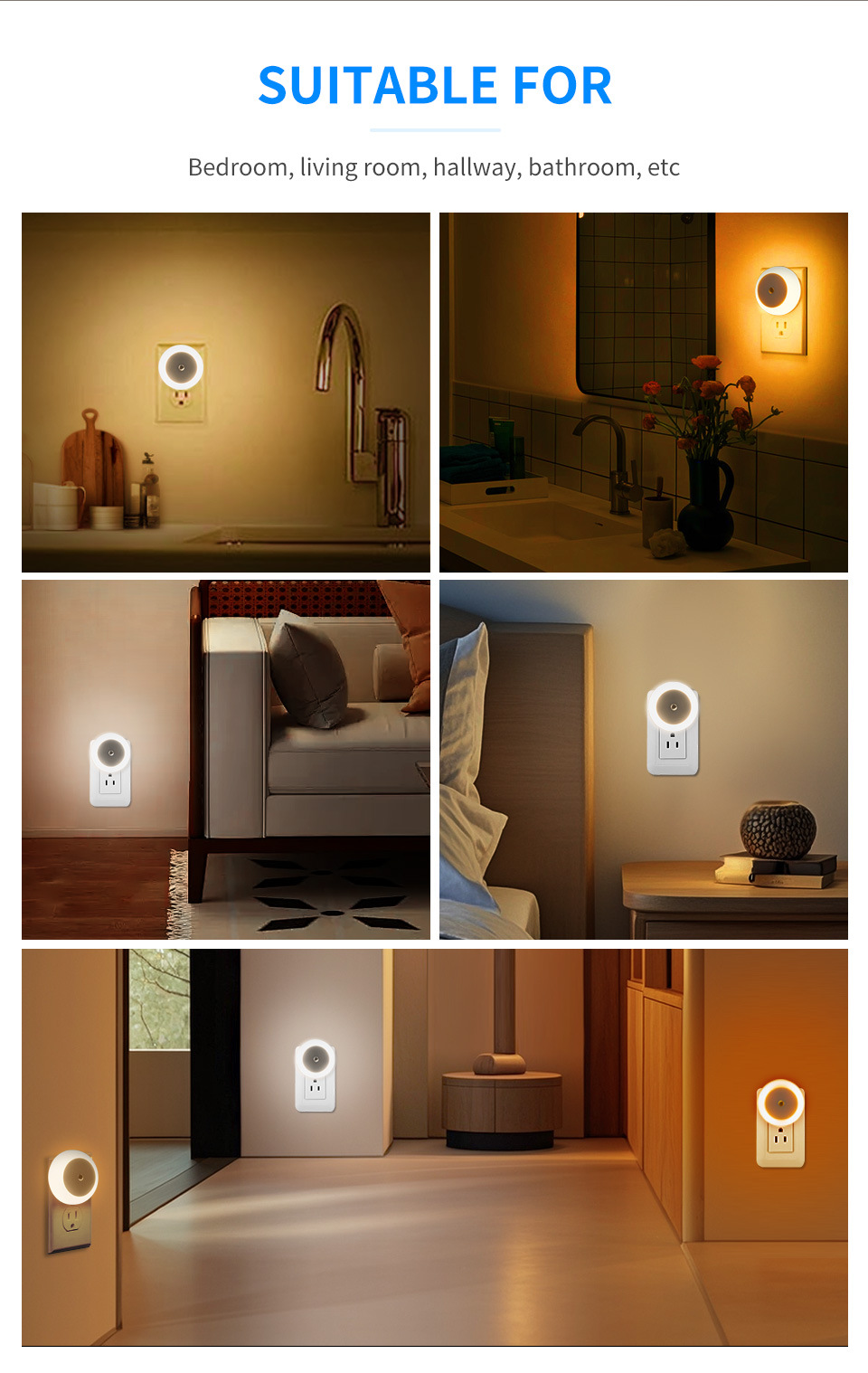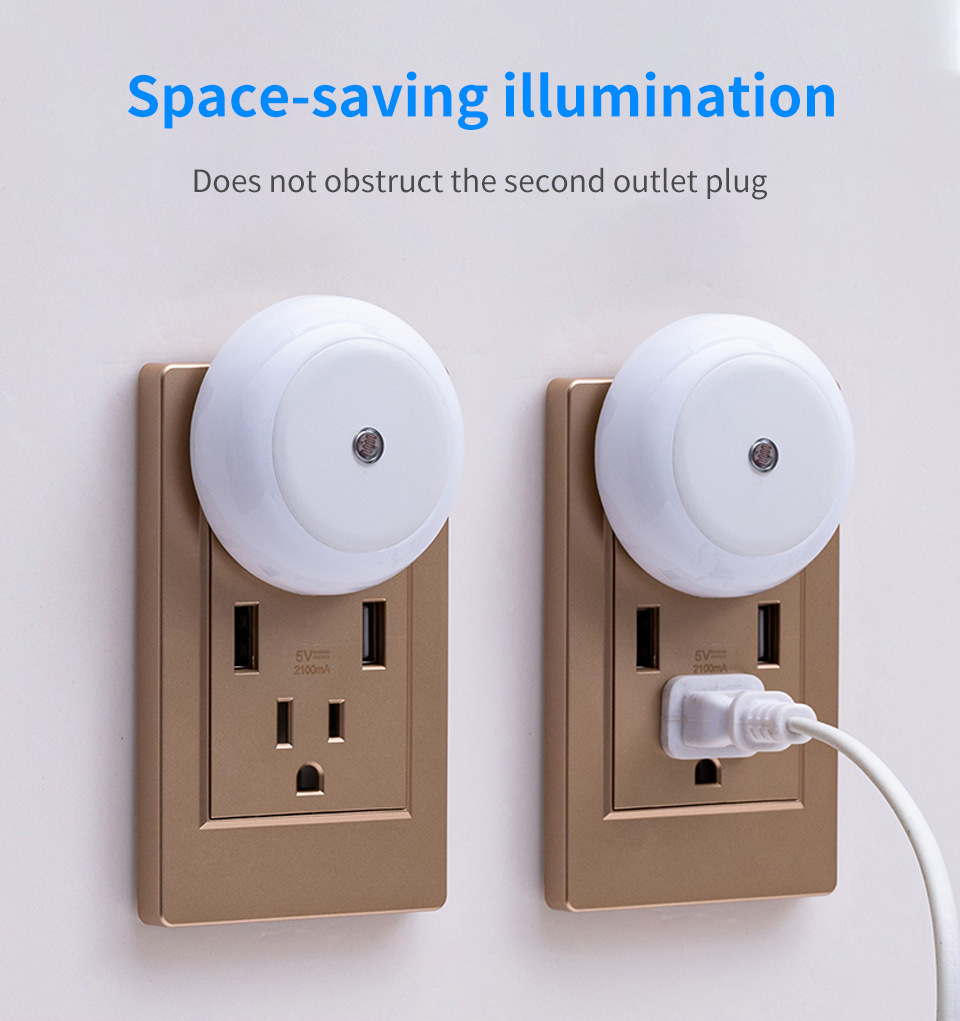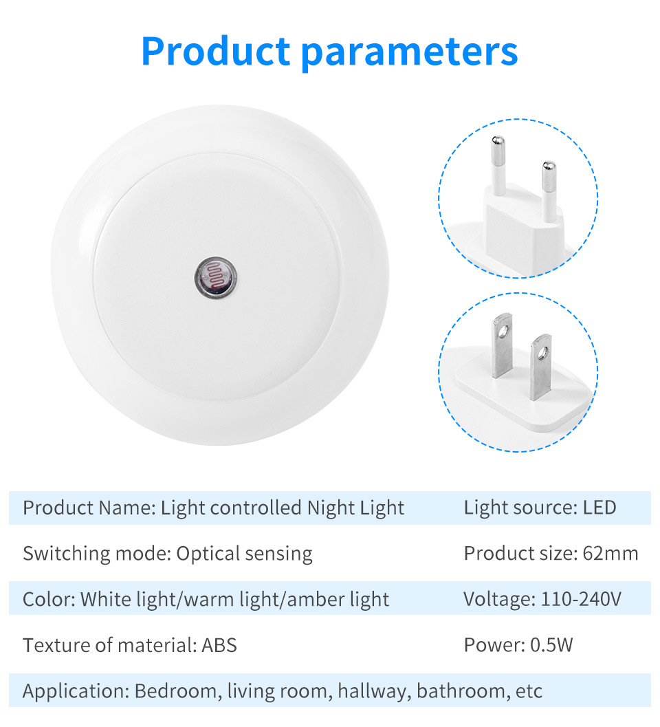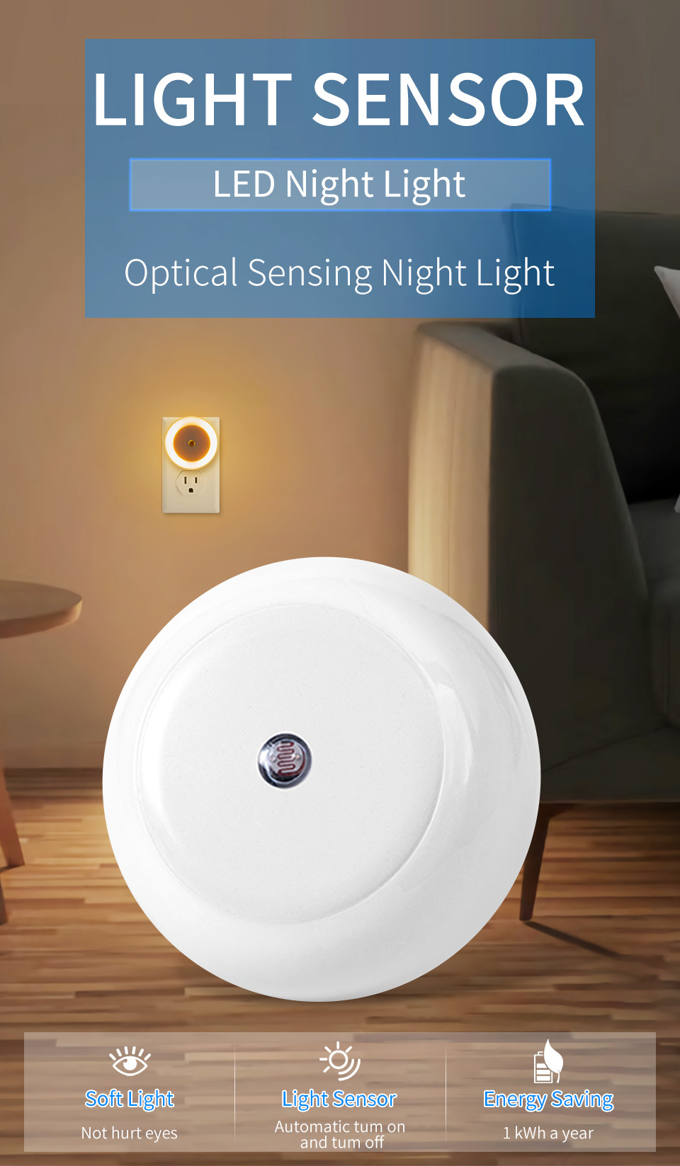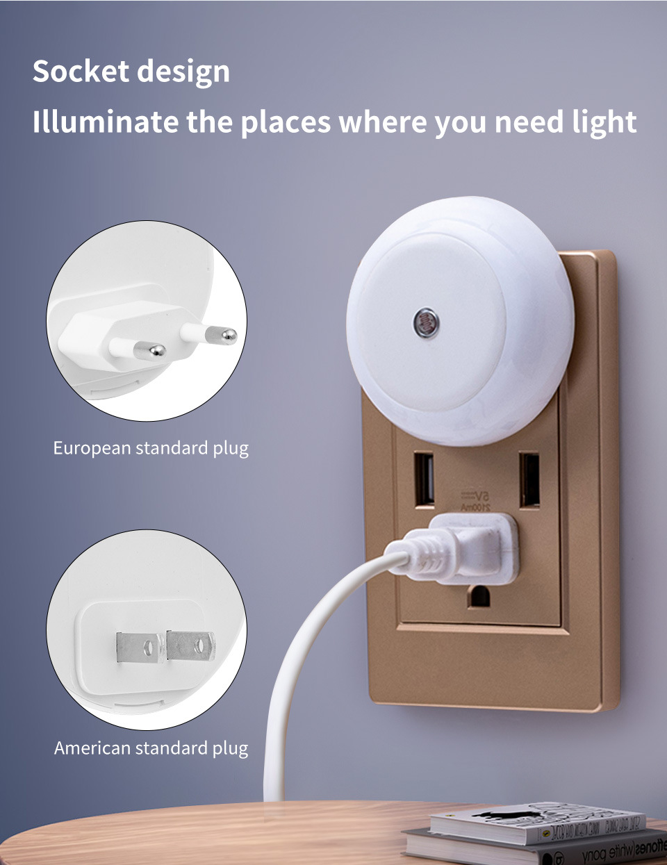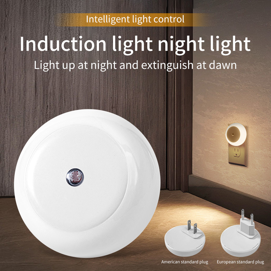 공장 직접 판매 유럽 및 미국 표준 조명 제어 유도 LED 플러그인 야간 조명 사각형 원형 에너지 절약형 따뜻한 빛 야간 조명