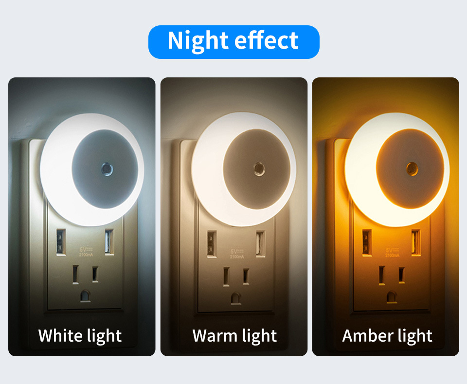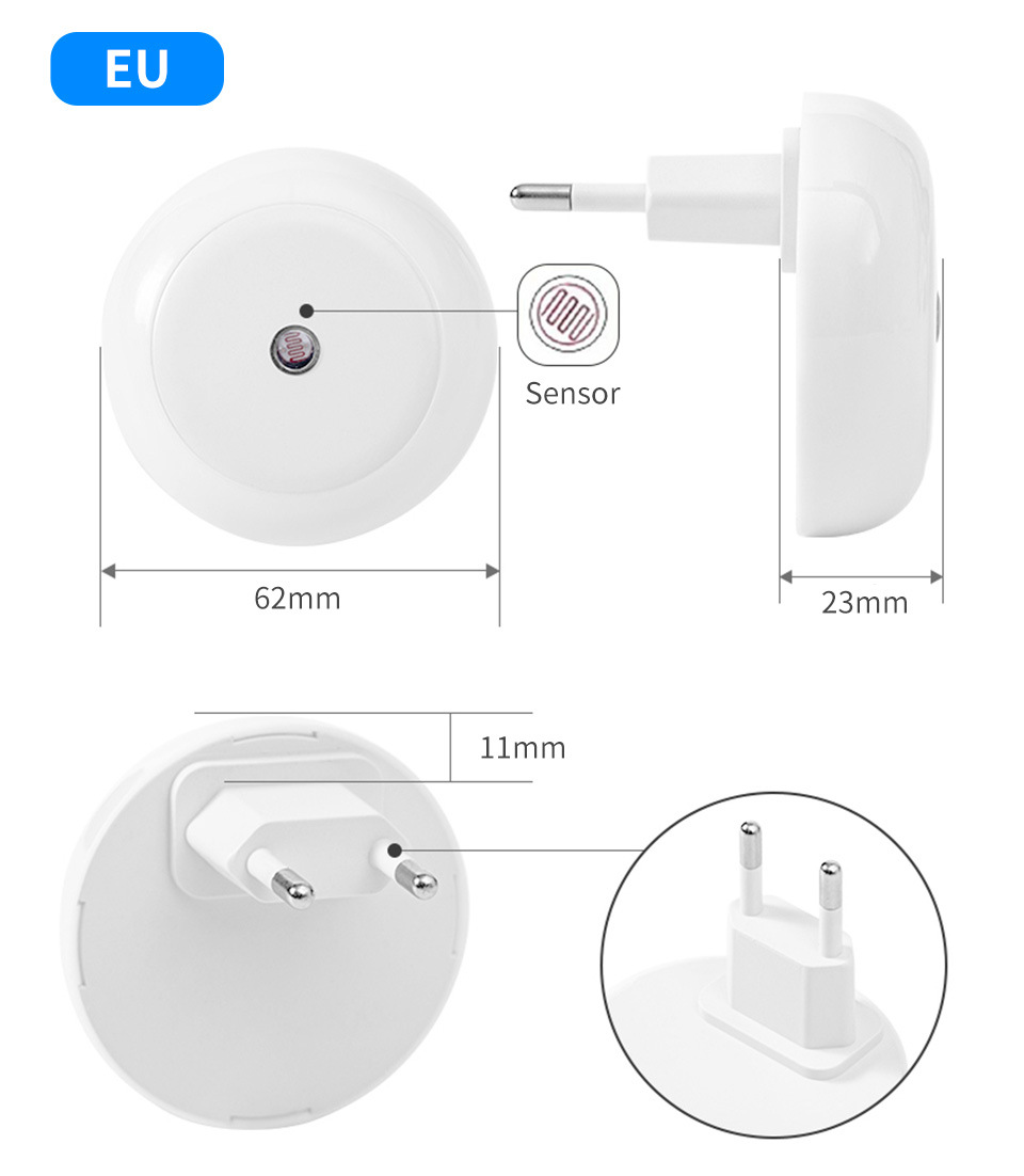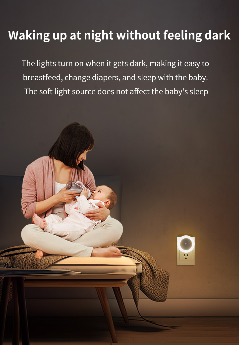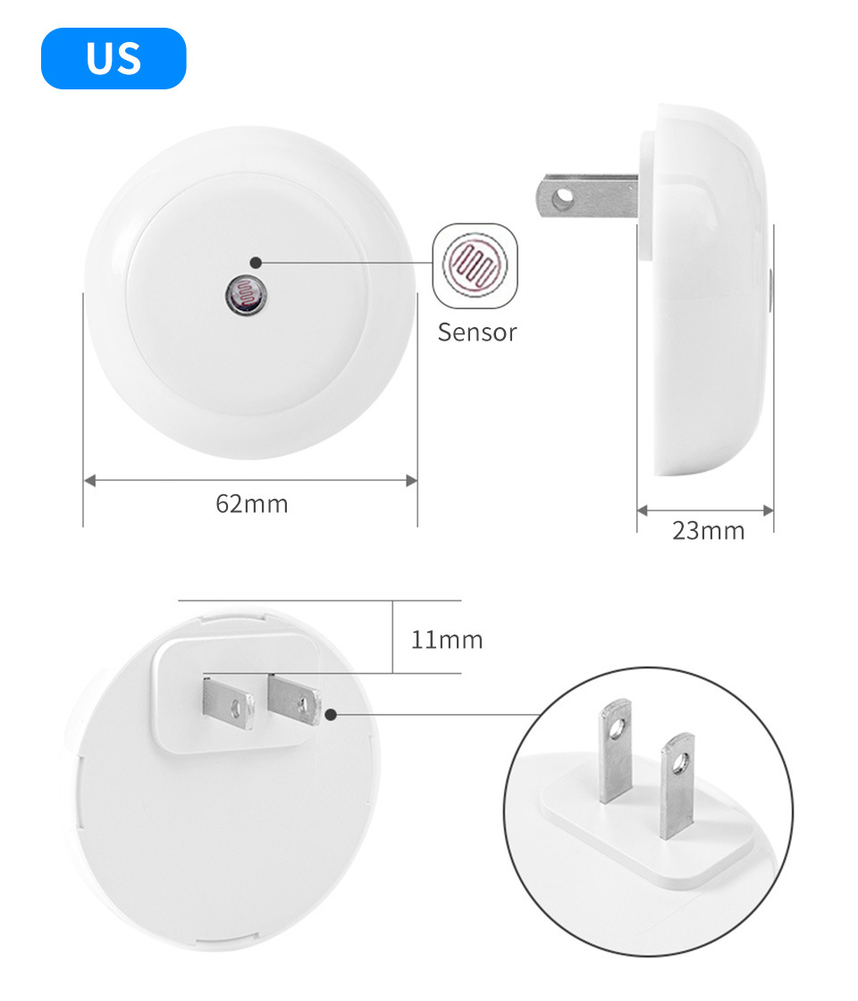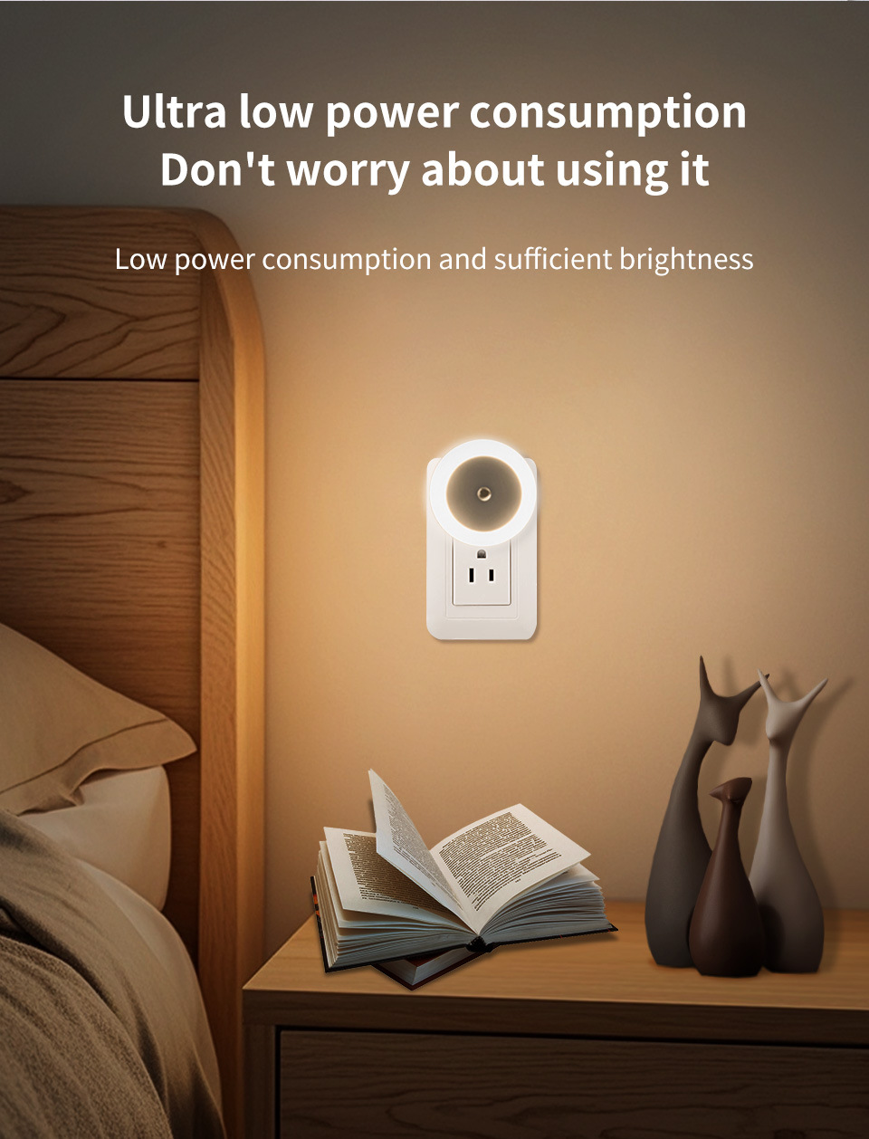 공장 직접 판매 유럽 및 미국 표준 조명 제어 유도 LED 플러그인 야간 조명 사각형 원형 에너지 절약형 따뜻한 빛 야간 조명