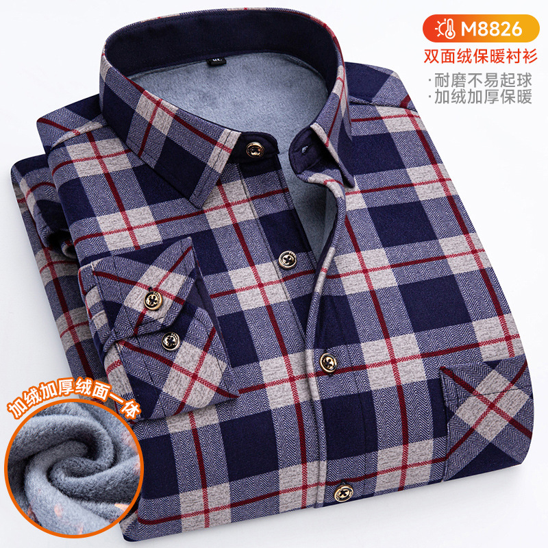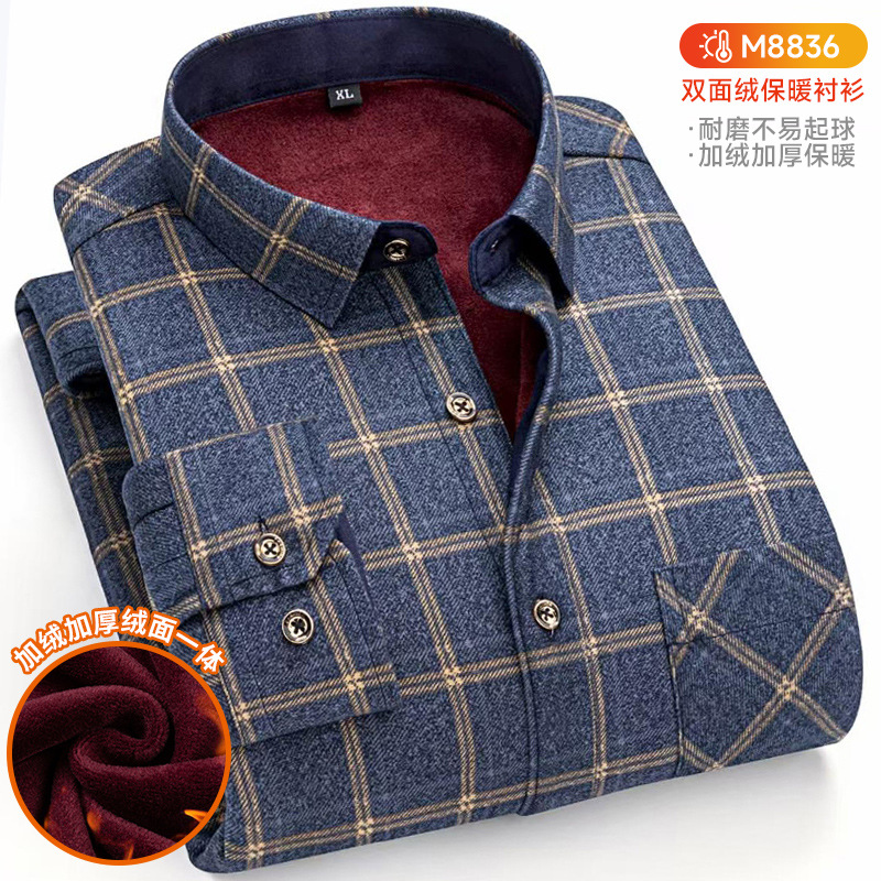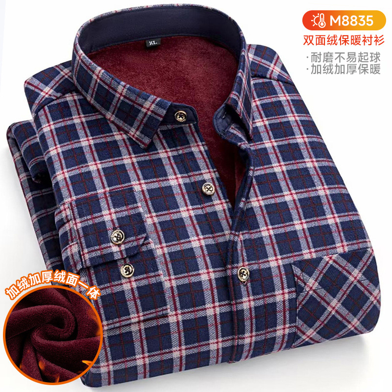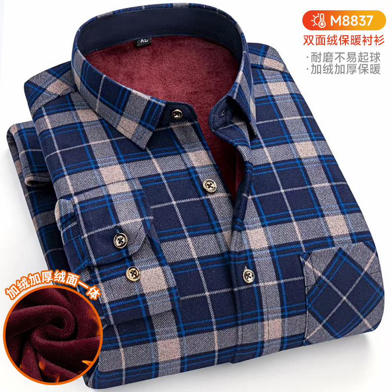 공장 직판 보온 셔츠 남성용 겨울용 플리스 안감 두꺼운 중년 체크무늬 긴팔 셔츠 특대 사이즈스토어 가기
