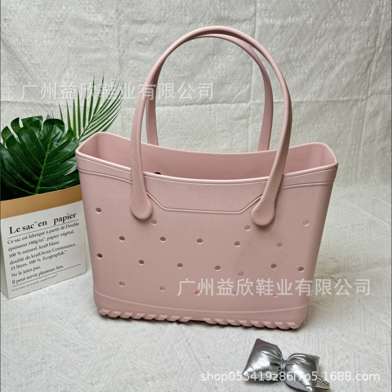 비치 미디엄 핸드백 토트 백 EVA 새로운 패션 중공 휴대용 방수 스토리지 야외 어깨 스트랩 구멍