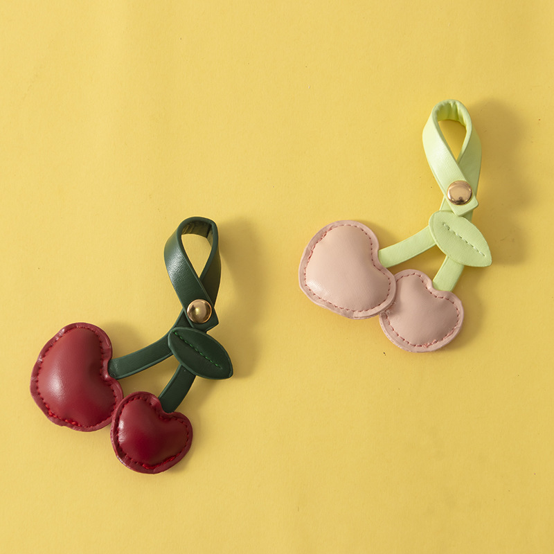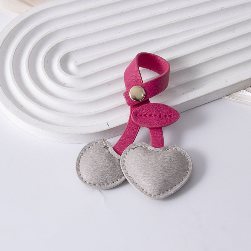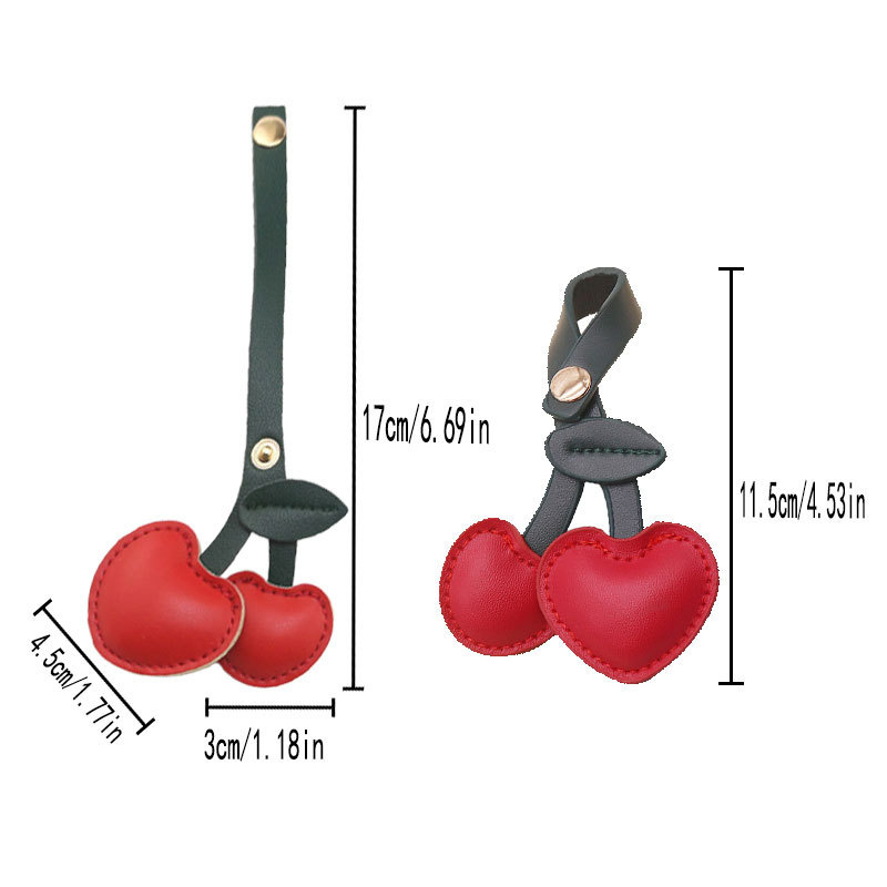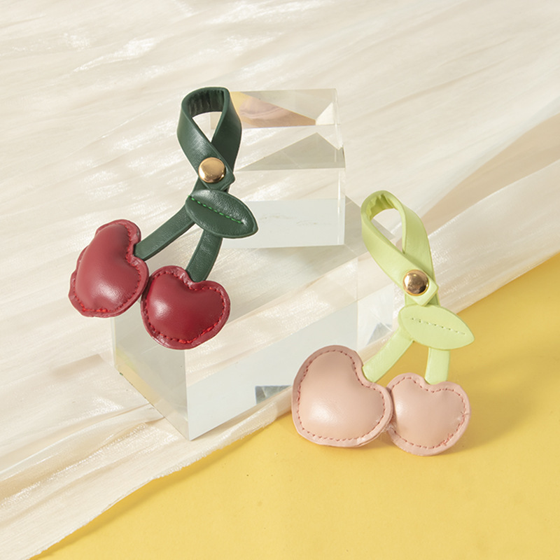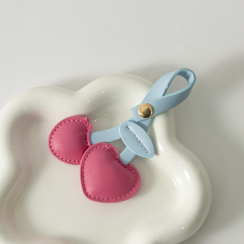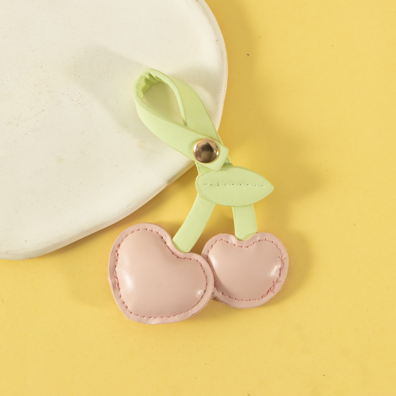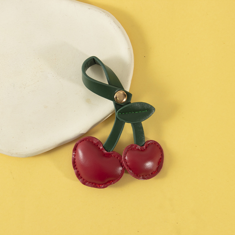 귀여운 체리 가죽 가방 펜던트 휴대 전화 백 클립 끈 펜던트 액세서리 복숭아 심장 키 체인 선물 장식