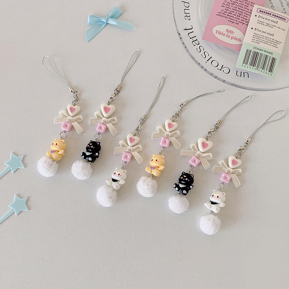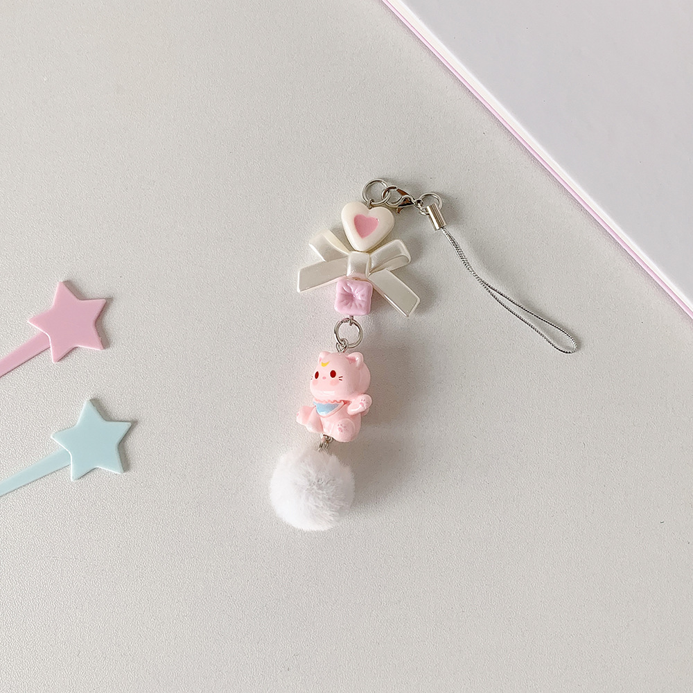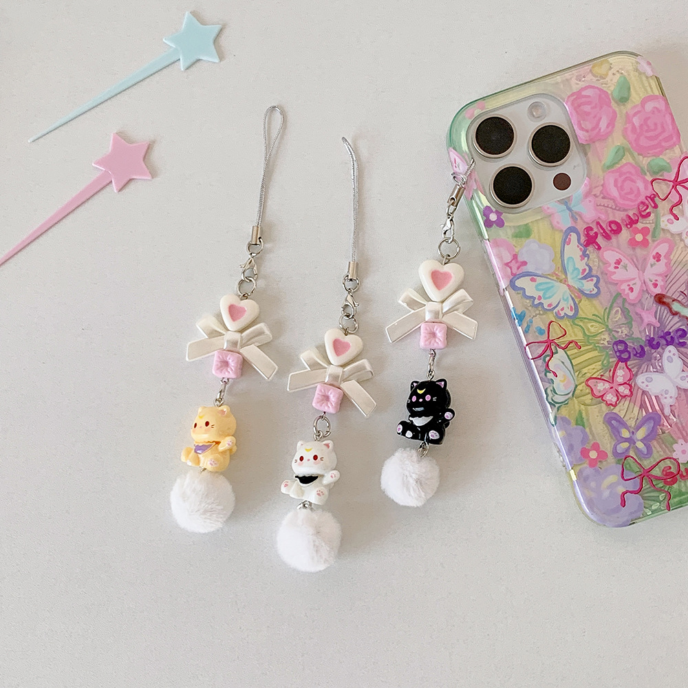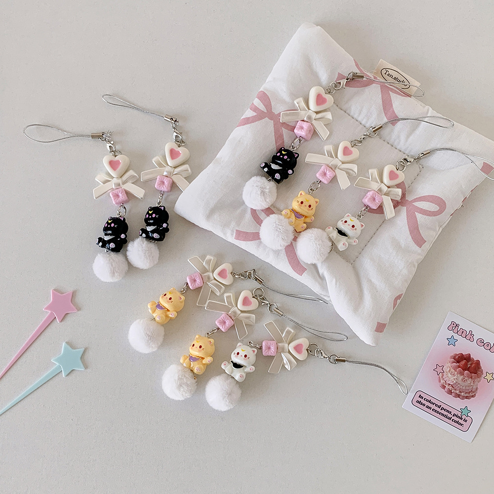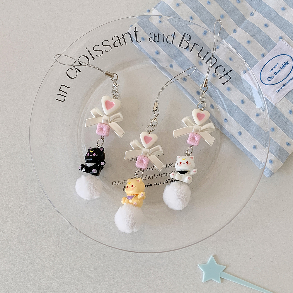 Ins 귀여운 행운의 고양이 모피 공 작은 펜던트 절묘한 활 휴대 전화 체인 키 체인 장식용 펜던트 교수형 체인 여성용스토어 가기