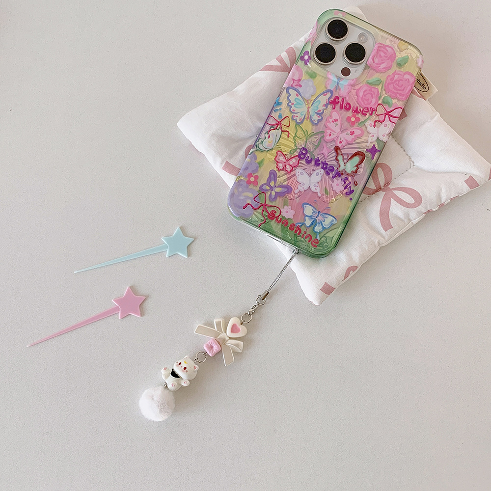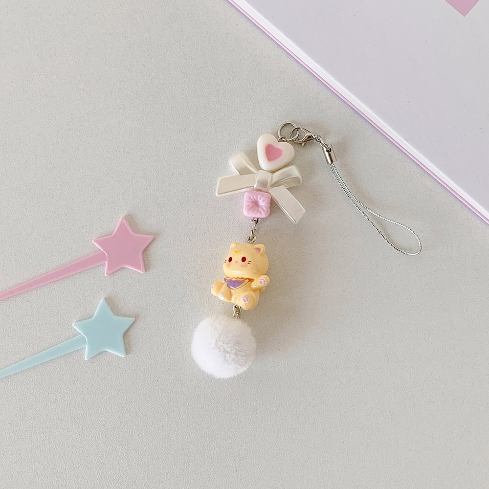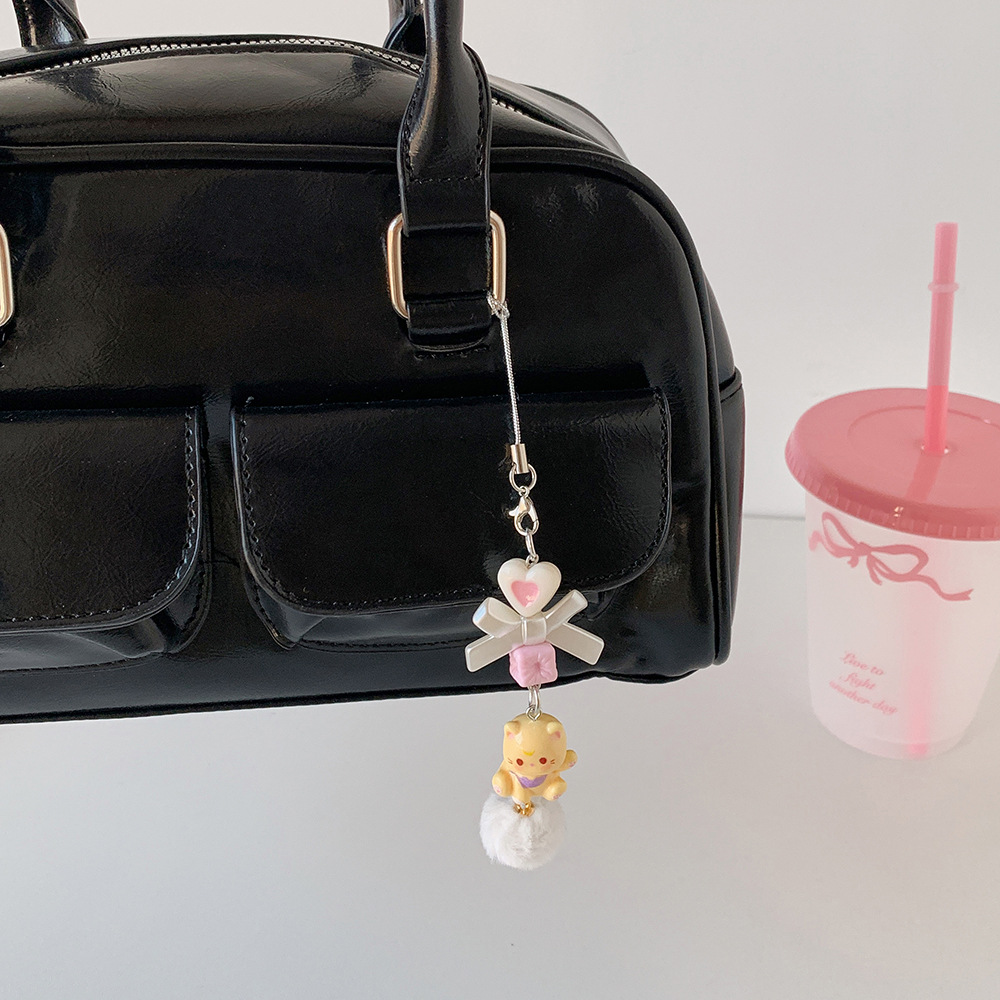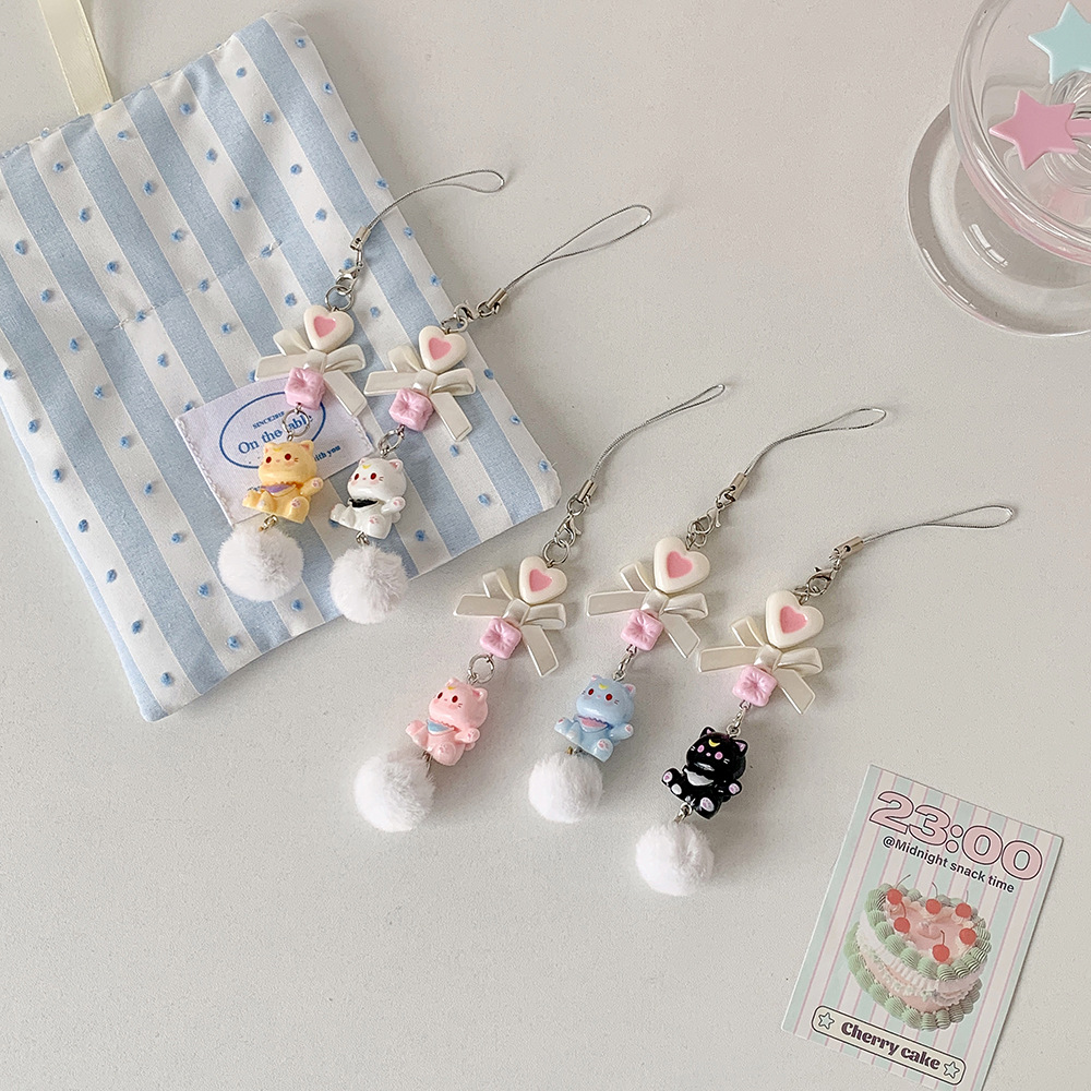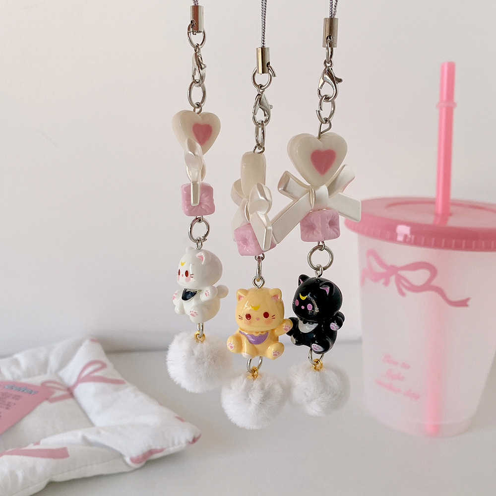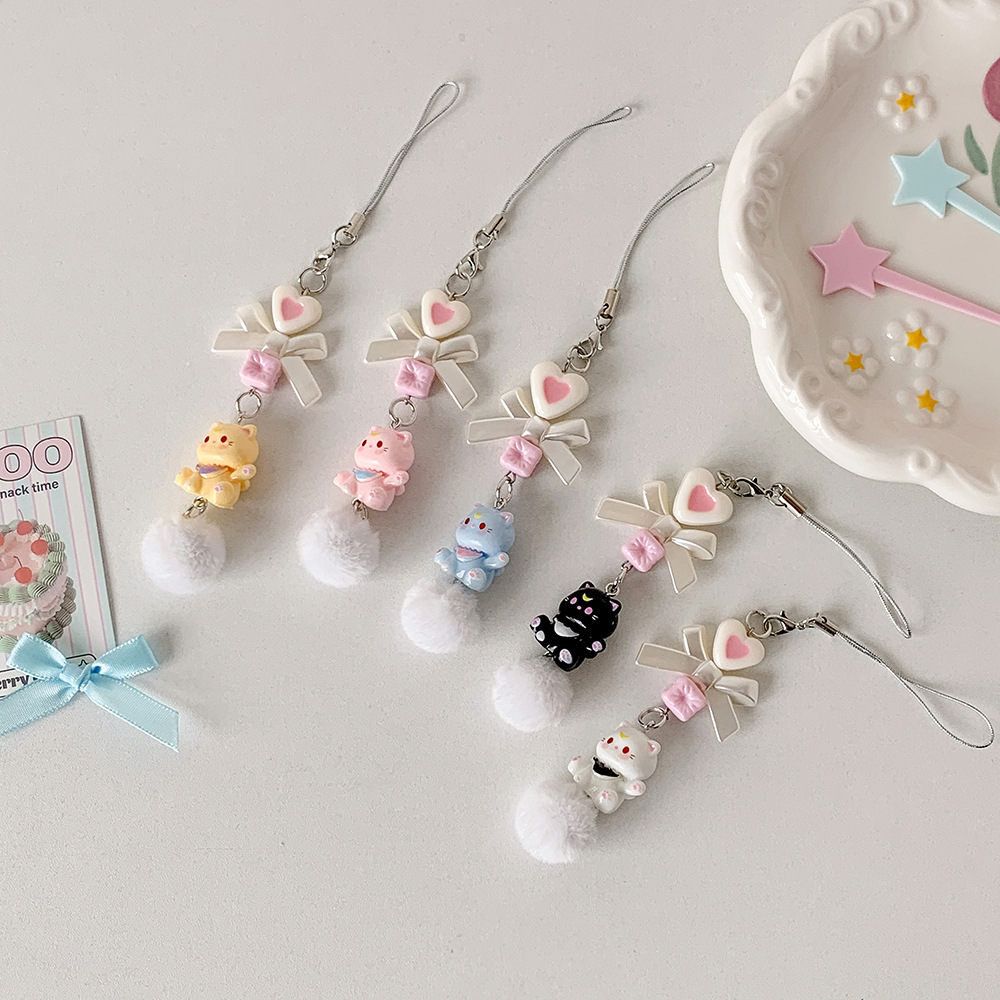 Ins 귀여운 행운의 고양이 모피 공 작은 펜던트 절묘한 활 휴대 전화 체인 키 체인 장식용 펜던트 교수형 체인 여성용스토어 가기