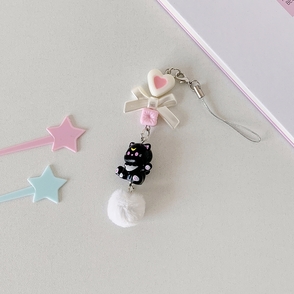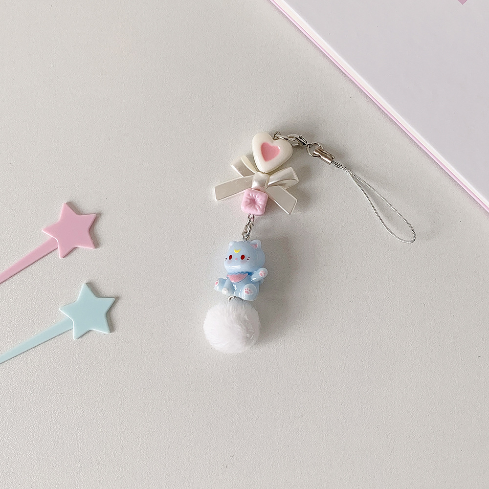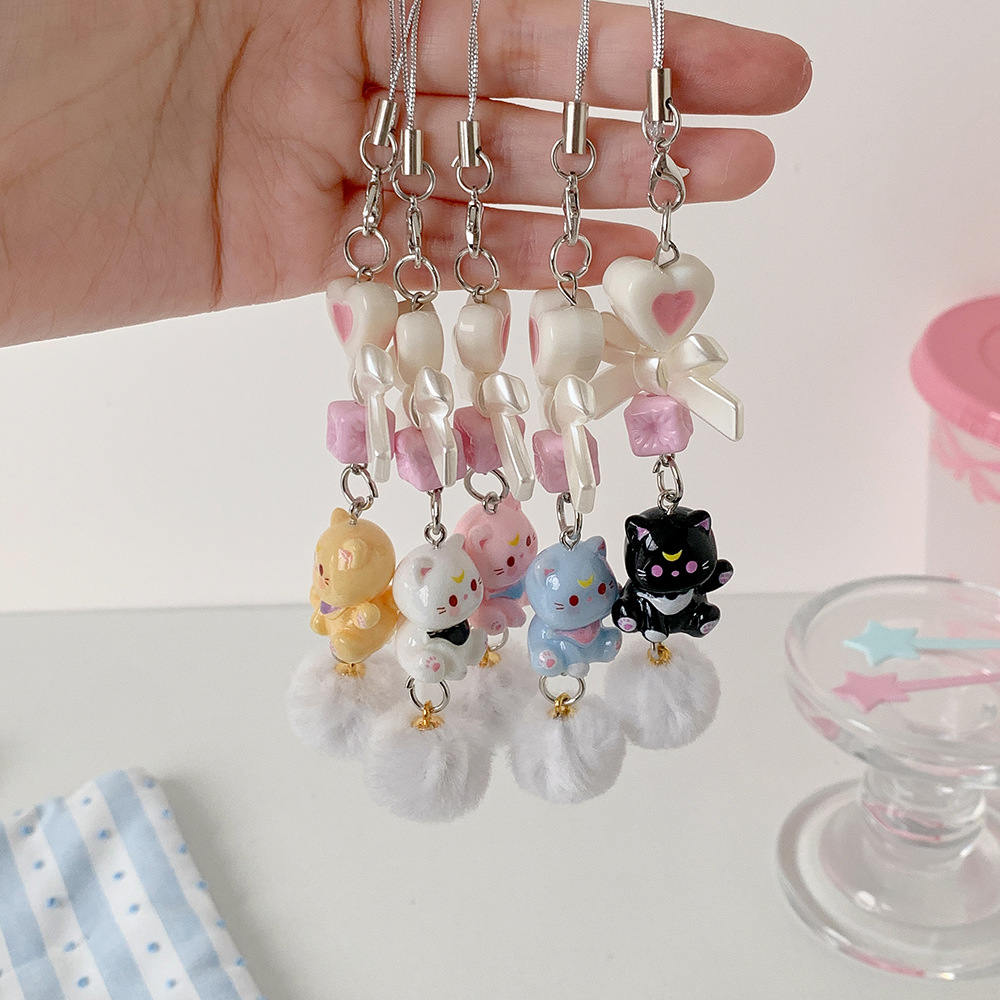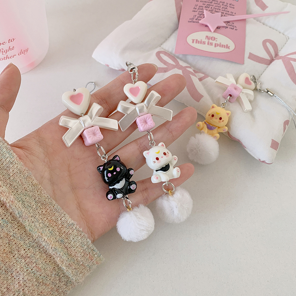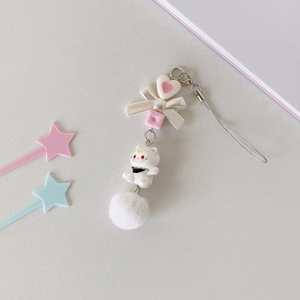 Ins 귀여운 행운의 고양이 모피 공 작은 펜던트 절묘한 활 휴대 전화 체인 키 체인 장식용 펜던트 교수형 체인 여성용