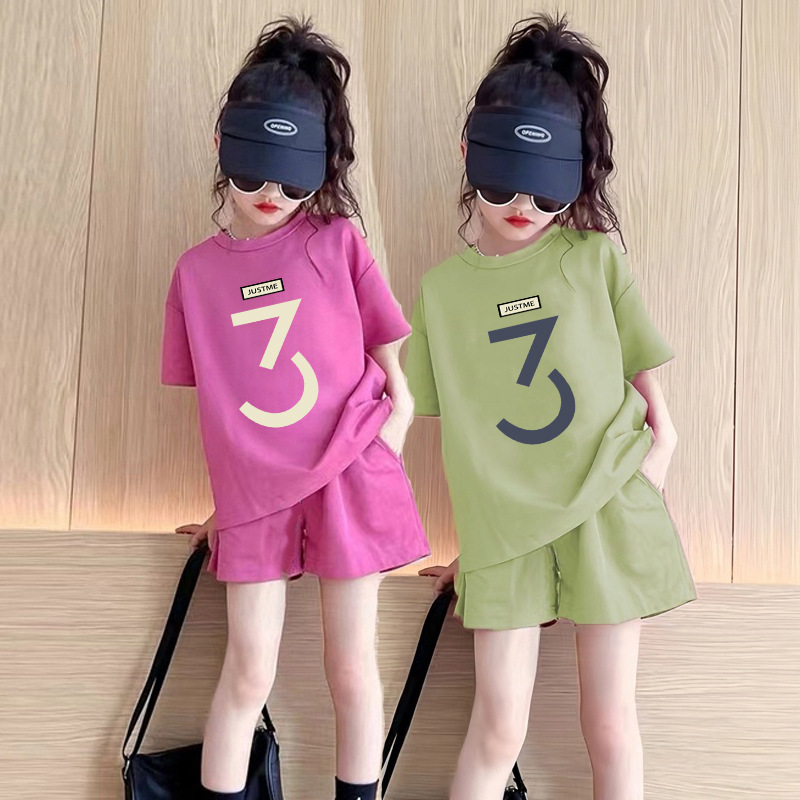 여자 여름 정장 2025 새로운 여자 유행 통기성 여름 어린이 반바지 캐주얼 스포츠 투피스 세트 유행스토어 가기