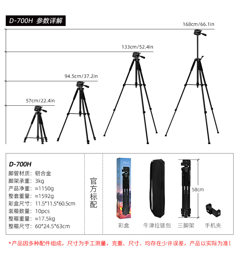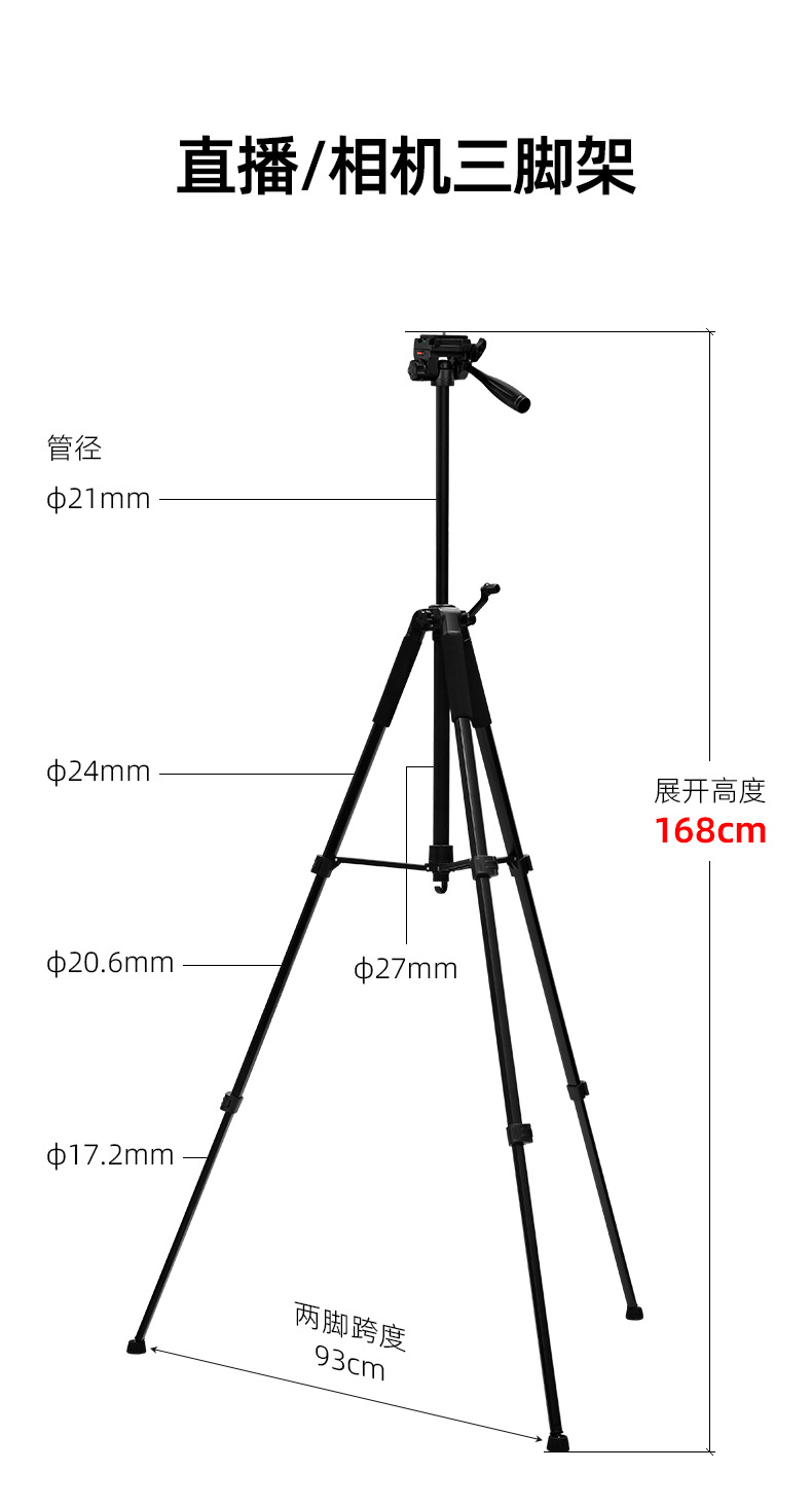 D700 휴대 전화 라이브 방송 홀더 망원경 삼각대 낚시 램프 홀더 1.7m 알루미늄 합금 카메라 삼각대