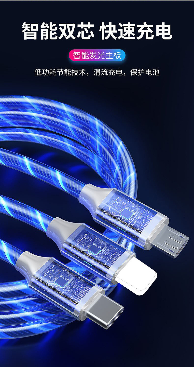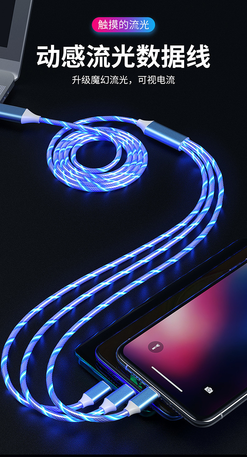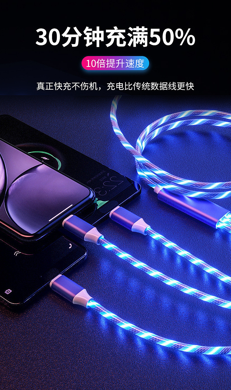 빠른 충전 스트리머 휴대 전화 데이터 라인 발광 자동차 충전 라인 단일 헤드 1m-2m 안드로이드 타입 c 애플스토어 가기