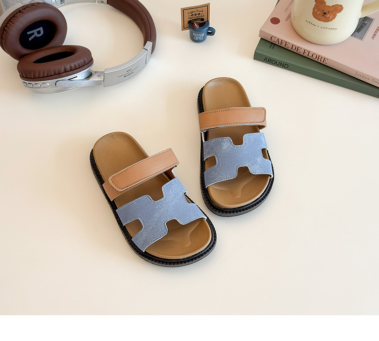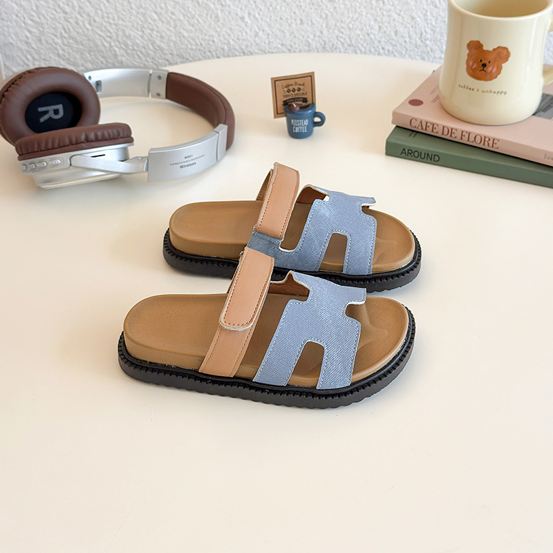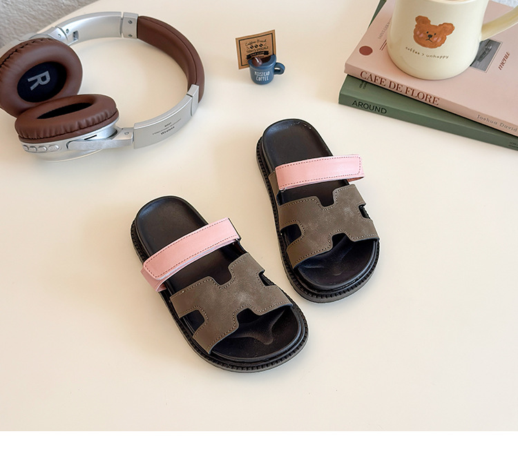 실내 및 실외 착용을위한 여자 슬리퍼 2025 여름 새로운 한국 스타일 어린이 중공 슬라이드 아기 슬리퍼 트렌디스토어 가기