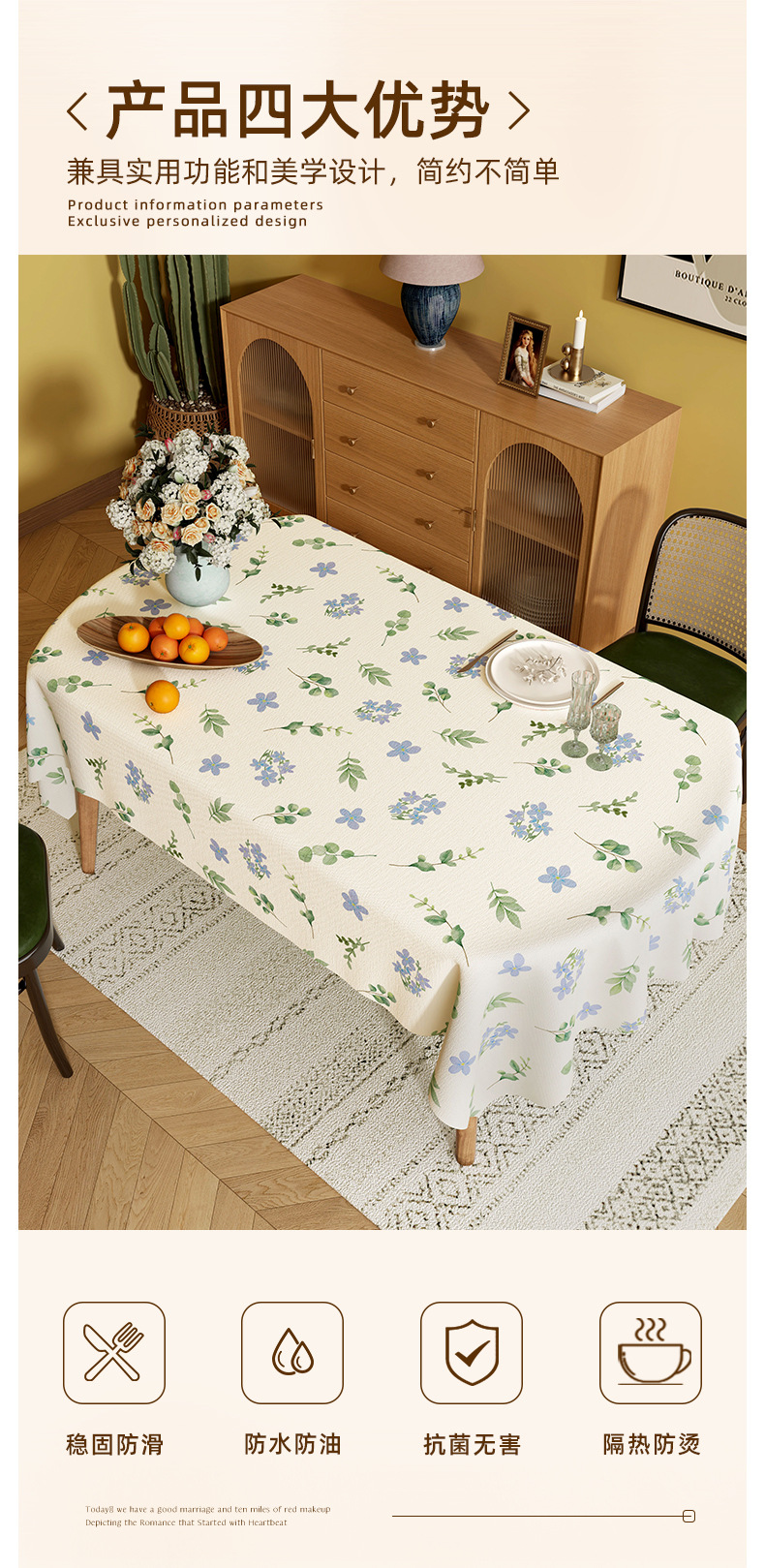 2025 목가적 인 스타일 테이블 천 일회용 오일 방지 가벼운 고급 고급 고급 커피 테이블 테이블 테이블 옷감 직사각형 PVC 커버 천