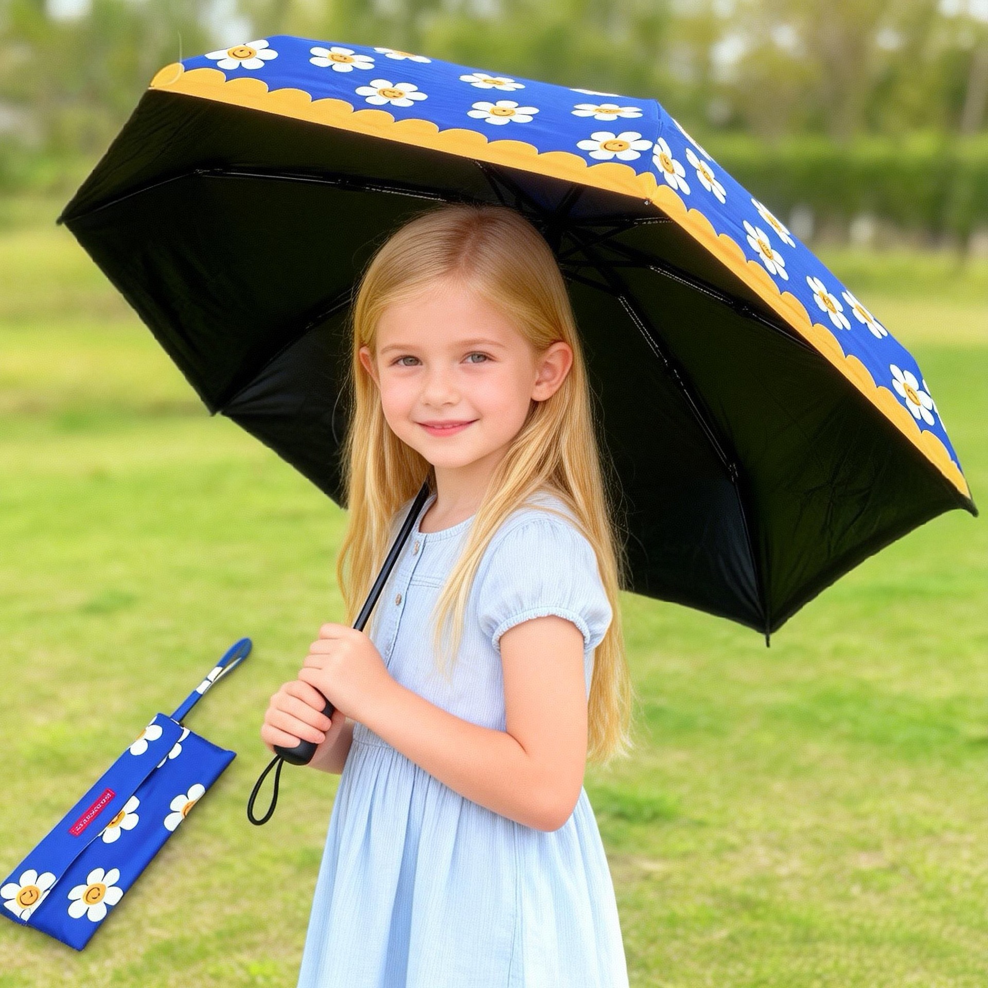 한국 오리지널 wiggle 스마일 플라워 블랙 글로스 자외선 차단 UV50 양산/우산 50% off 휴대용