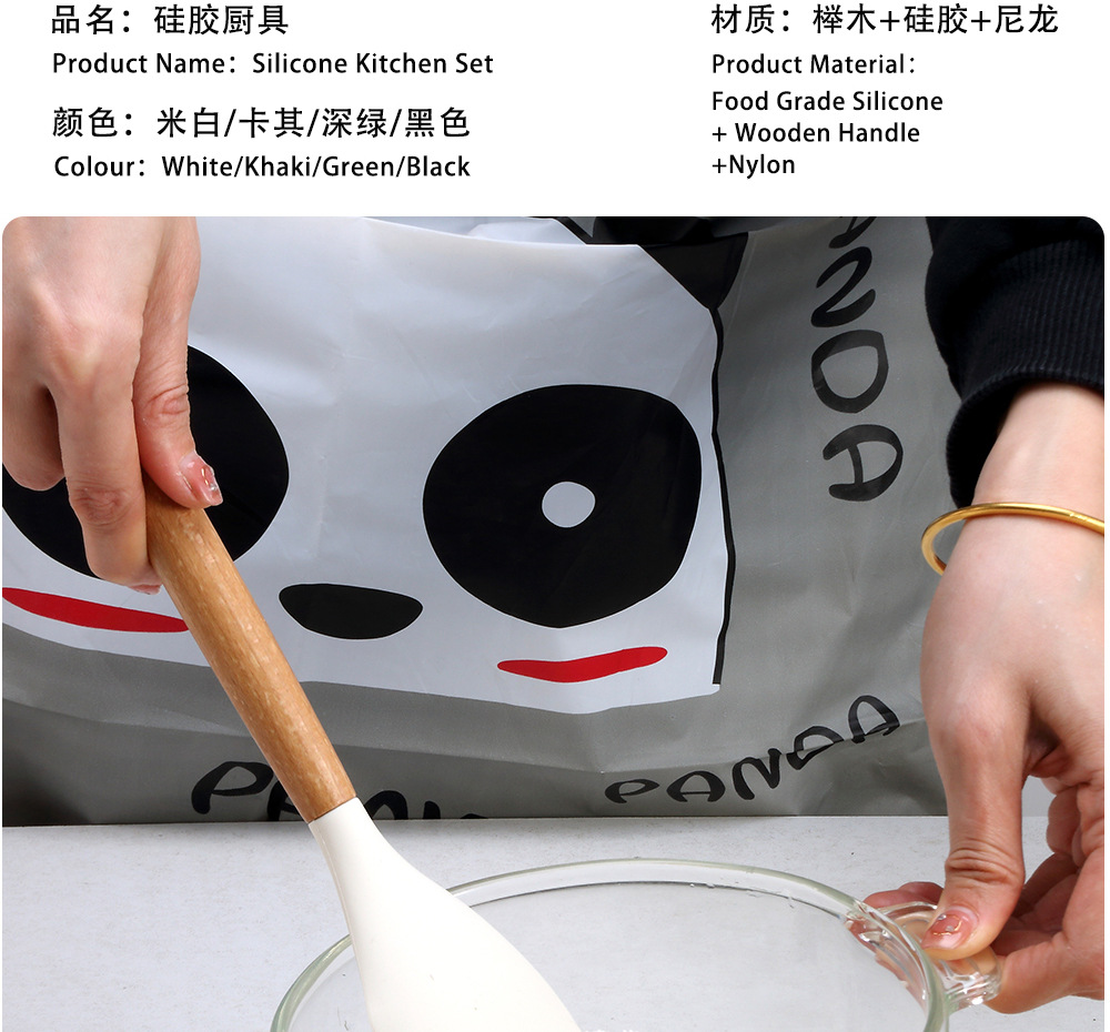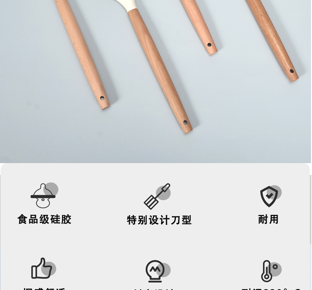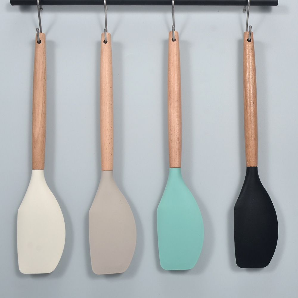 국경 간 두꺼운 나무 손잡이 크림 주걱 실리콘 주방 용품 붙지 않는 냄비 주걱 요리 베이킹 도구 케이크 주걱