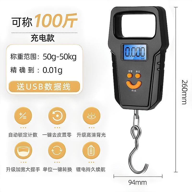 휴대용 저울 전자 저울 상업용 미니 계량 전자 주방 50kg 휴대용 익스프레스 후크 저울 소형 스프링 저울