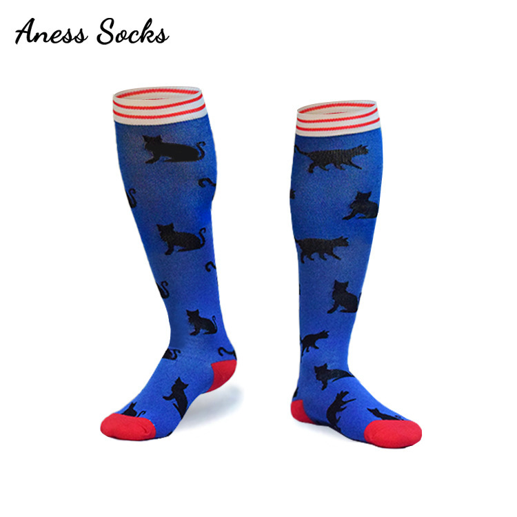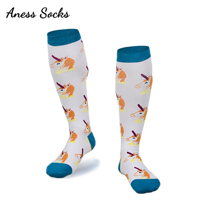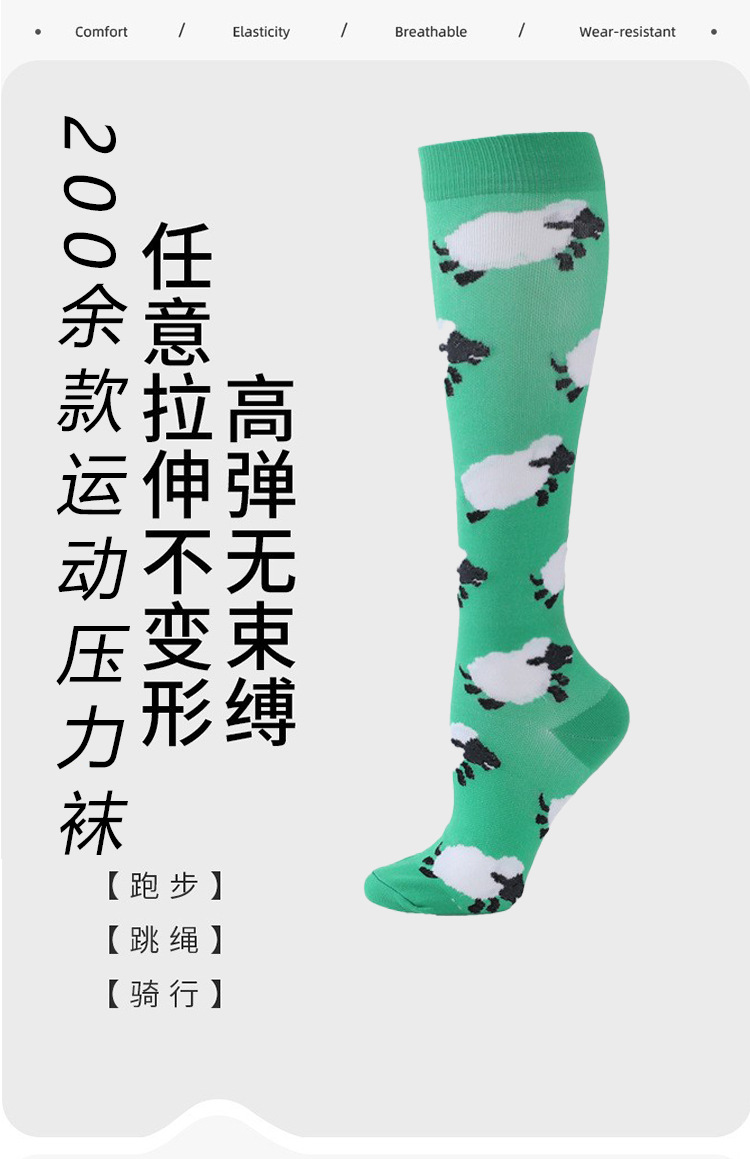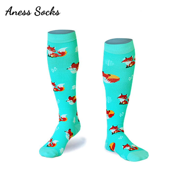 국경 간 동물 시리즈 남성과 여성을위한 야외 스포츠 압축 양말 다채로운 달리기 탄성 종아리 보호대 사이클링 압력