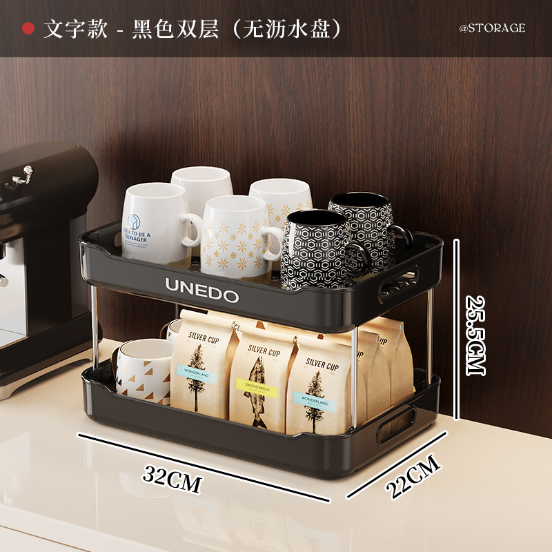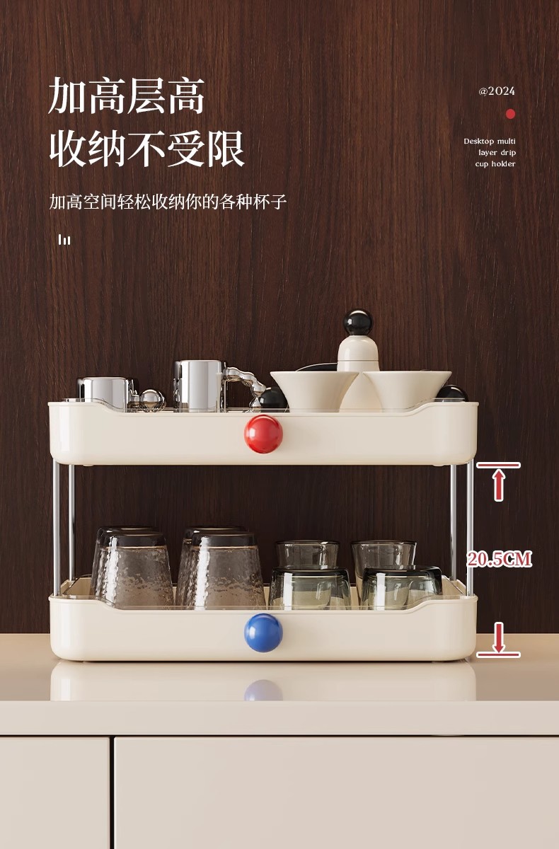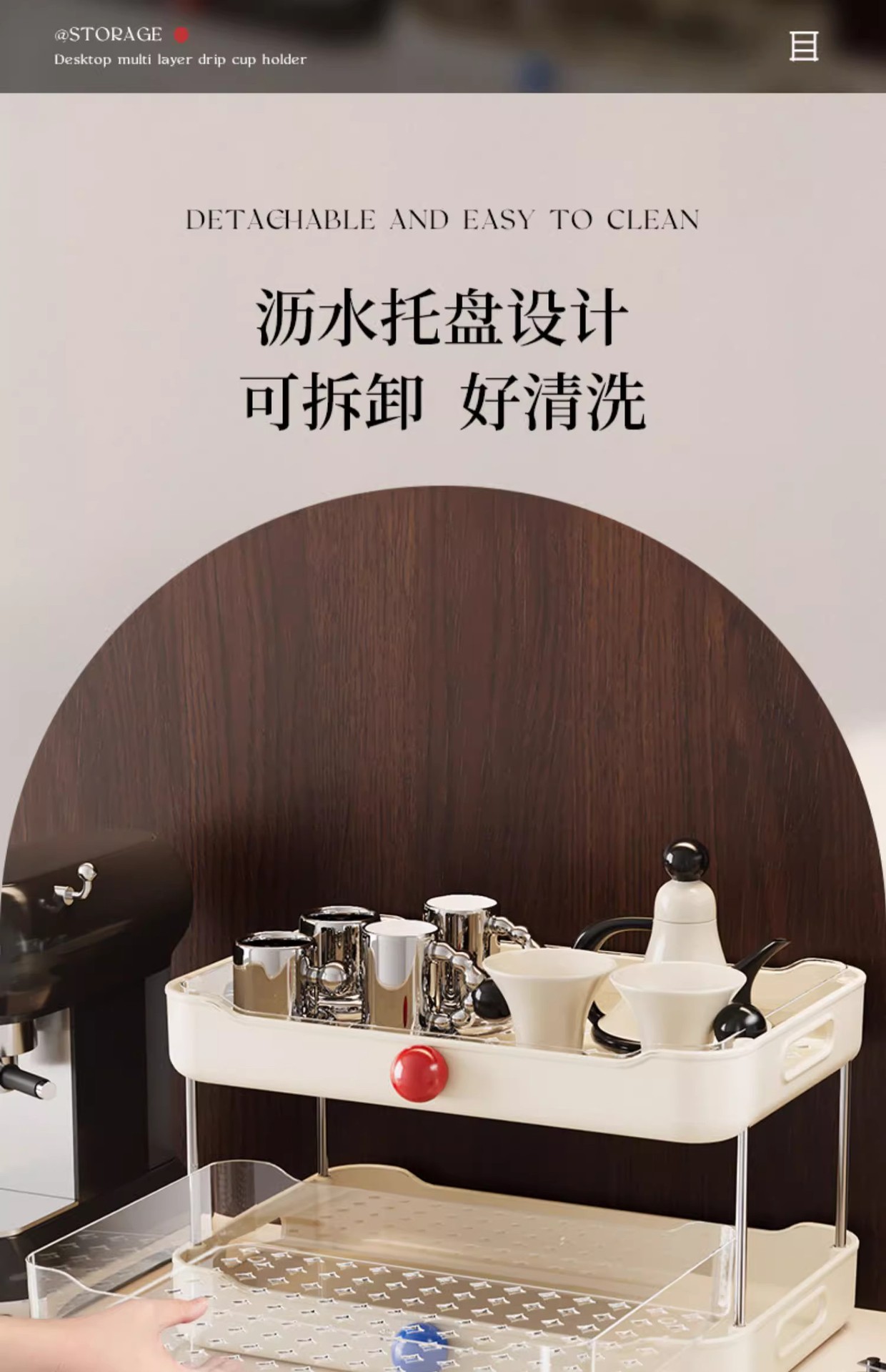 컵 보관함 데스크탑 티컵 홀더 다기능 크림 스타일 배수 트레이 가정용 이중층 배수 컵 홀더