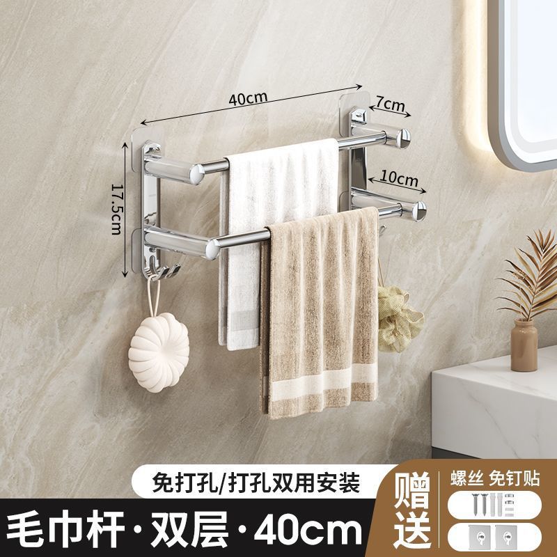 수건걸이 욕실 펀치없는 이중봉 목욕 수건걸이 욕실 욕실 화장실 304 스테인레스 스틸 수건걸이스토어 가기