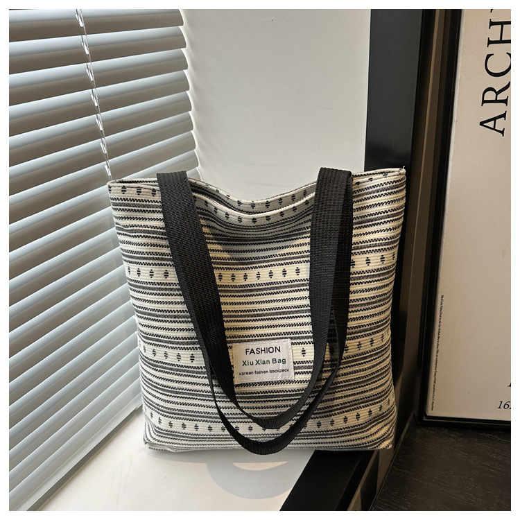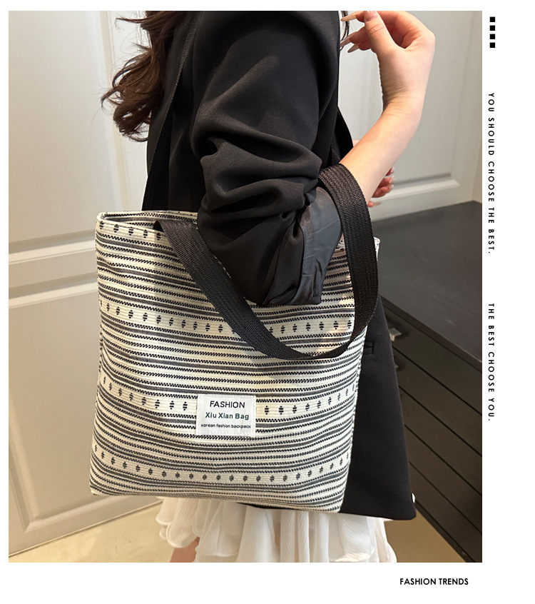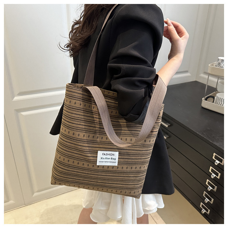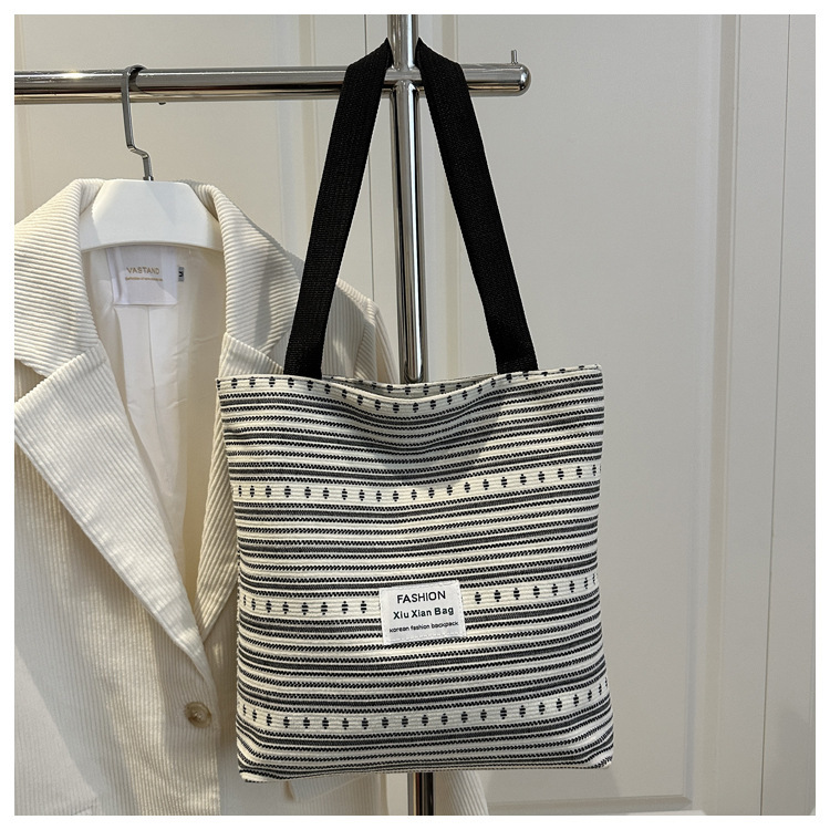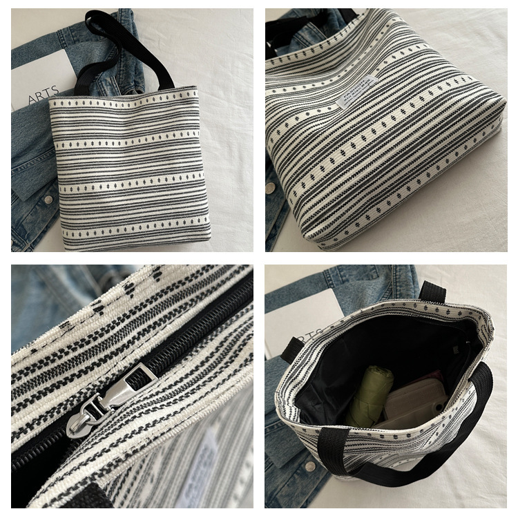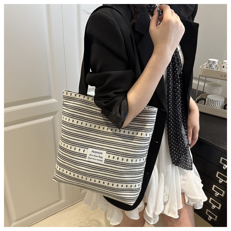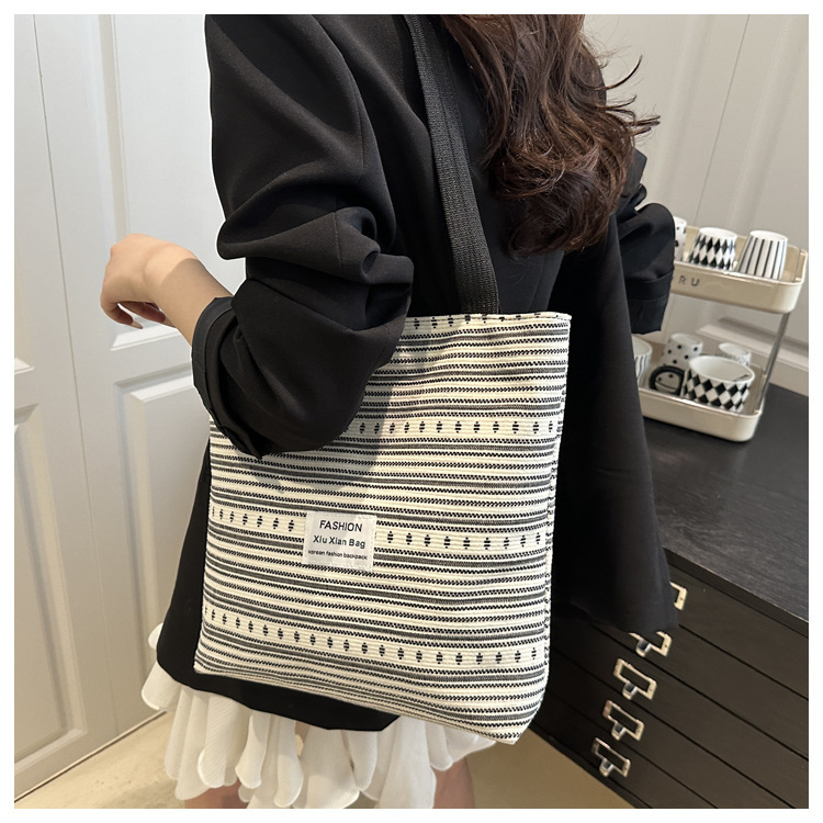 2025 대용량 캐주얼 스타일 맞춤형 캔버스 패션 스트라이프 여성 간단한 통근 토트 숄더백