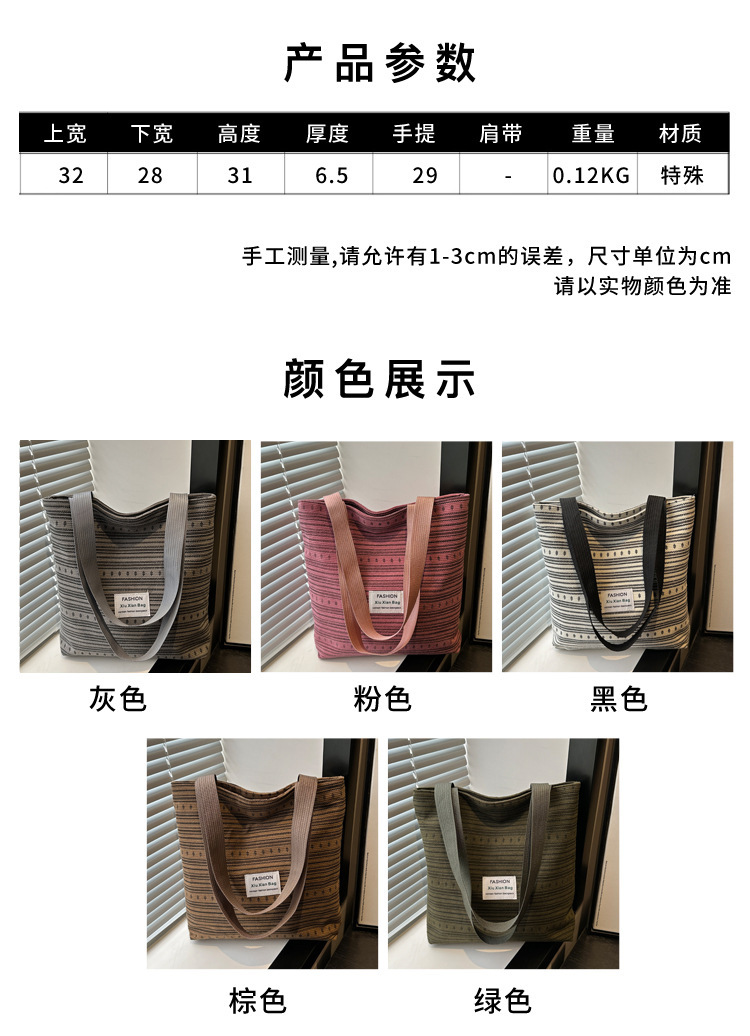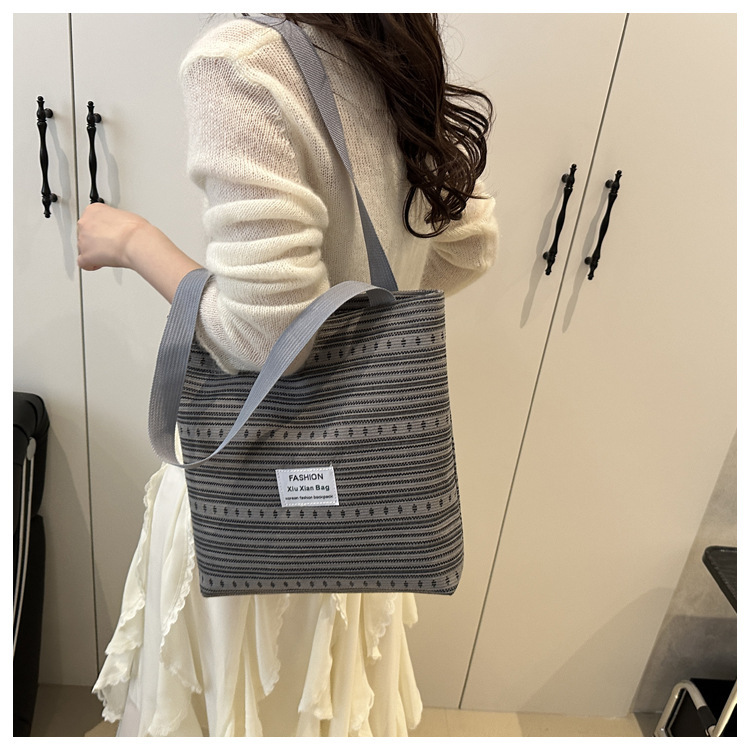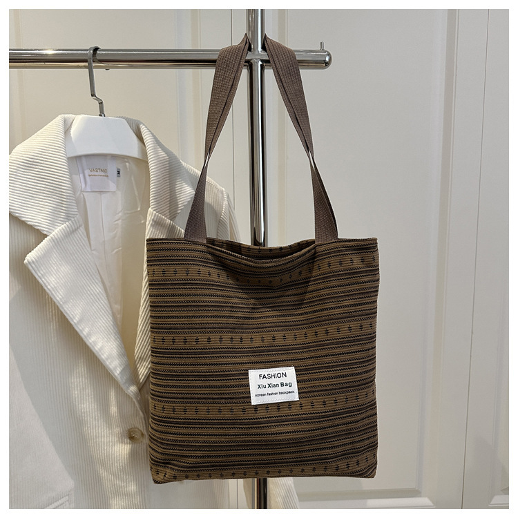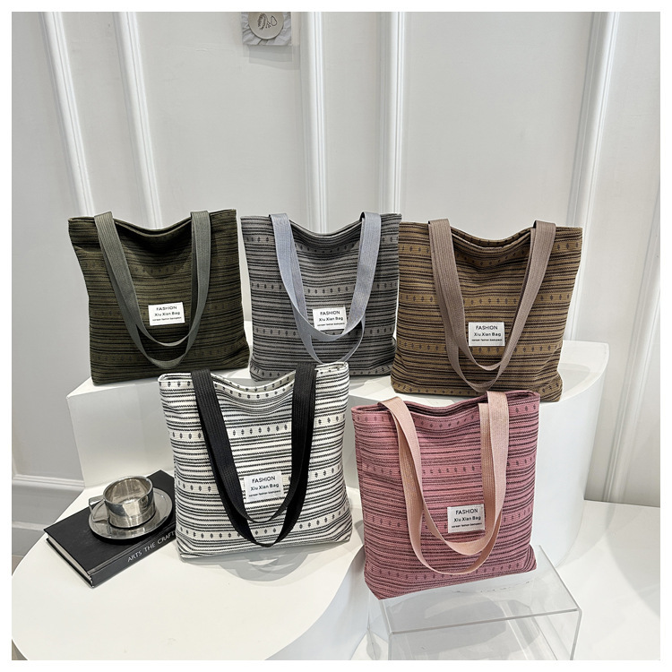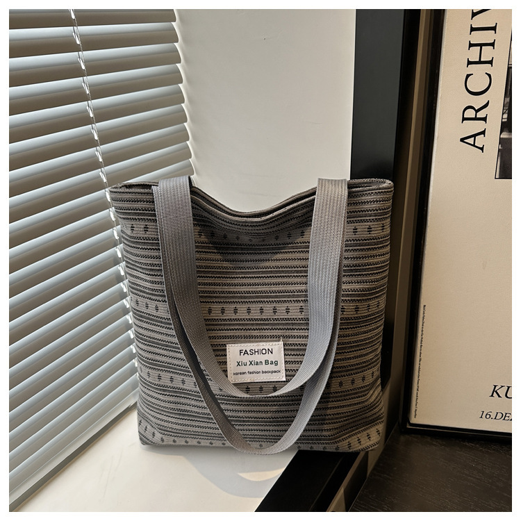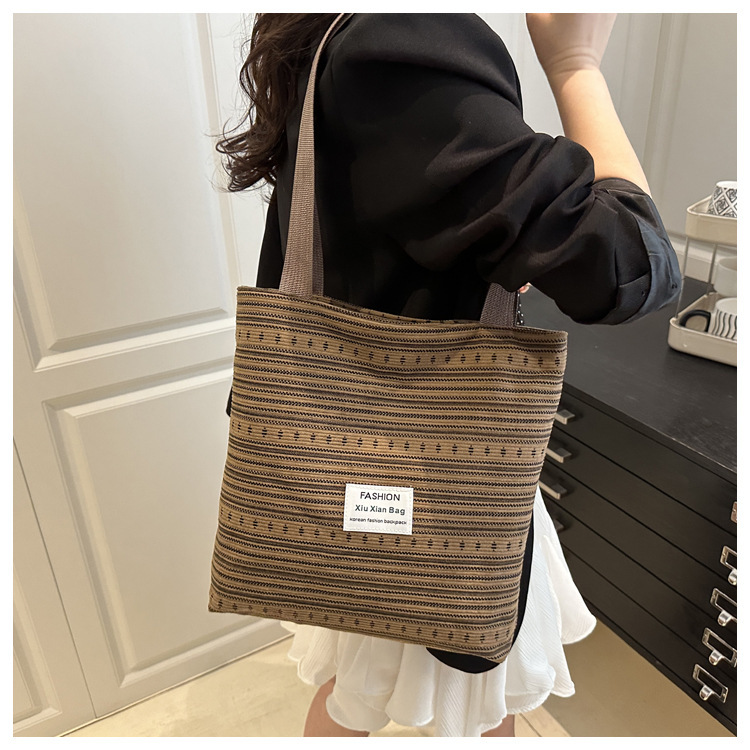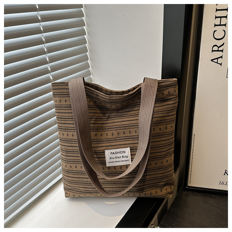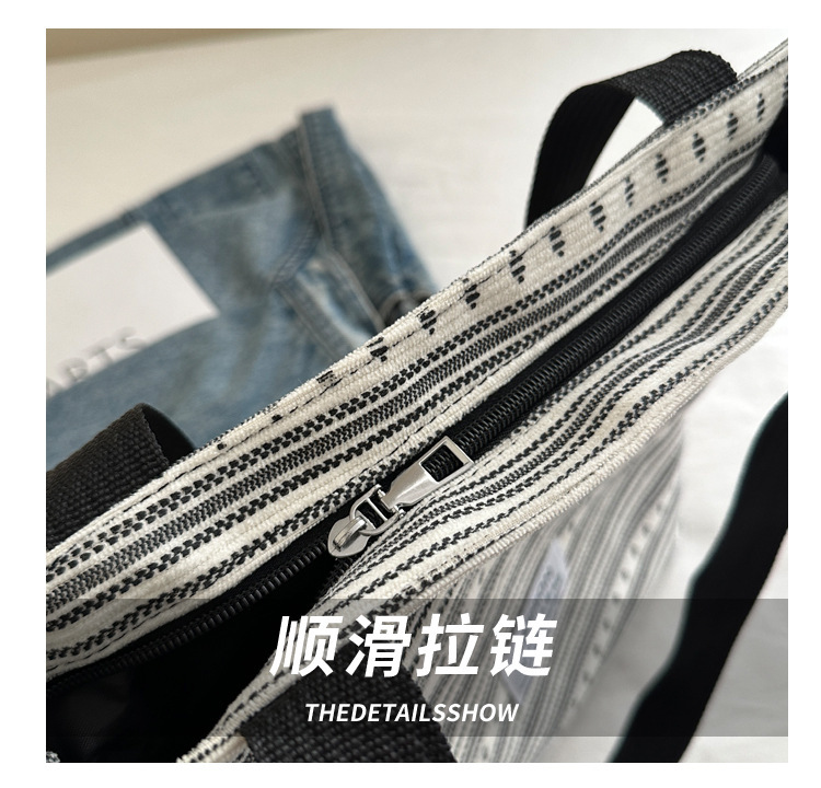 2025 대용량 캐주얼 스타일 맞춤형 캔버스 패션 스트라이프 여성 간단한 통근 토트 숄더백