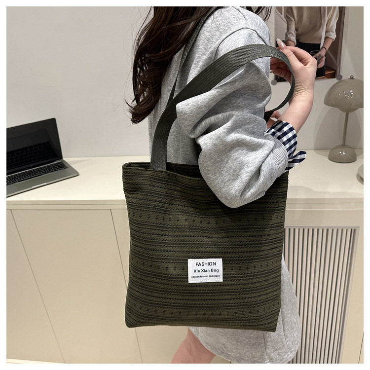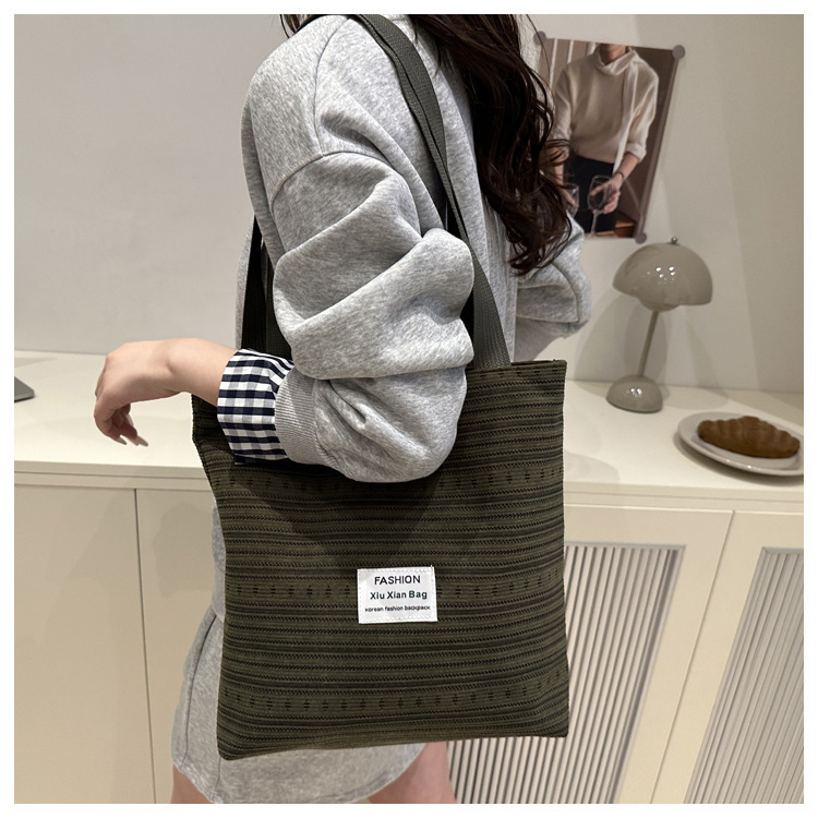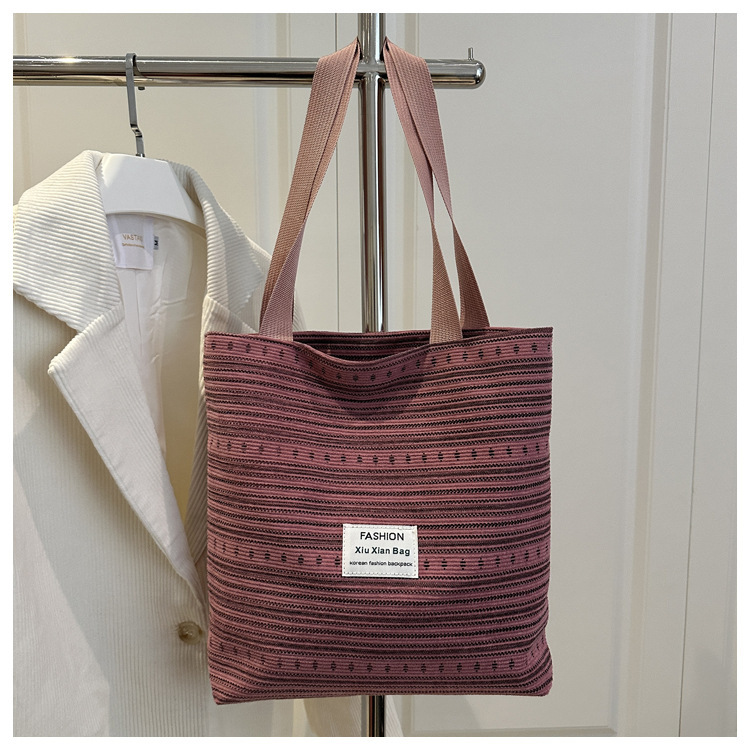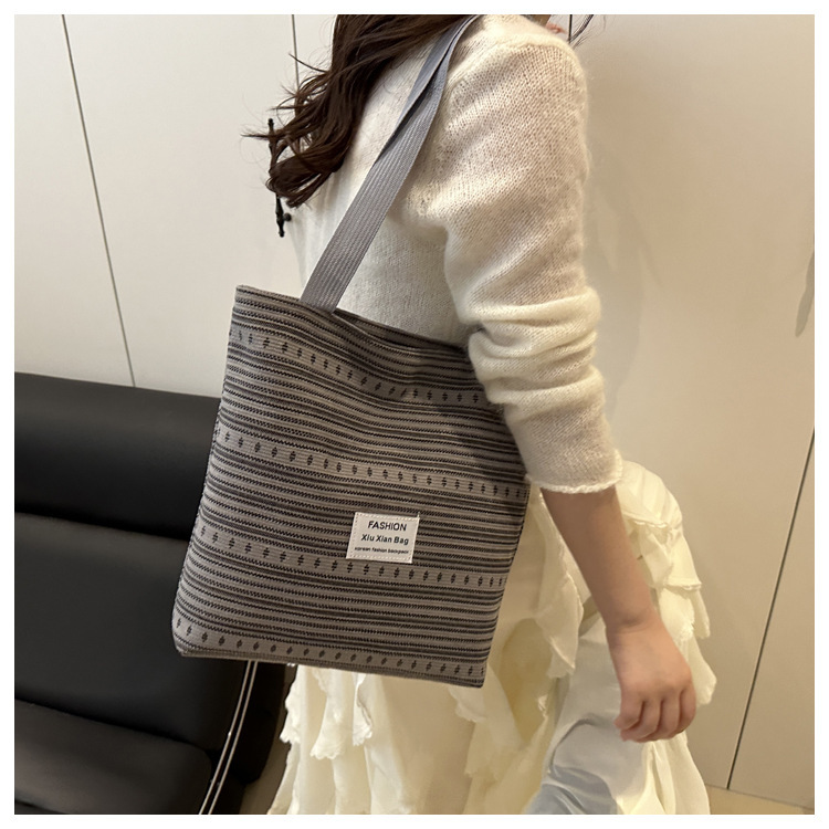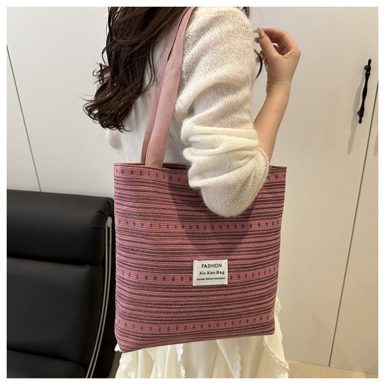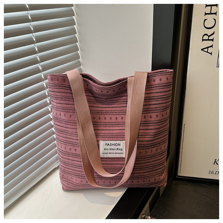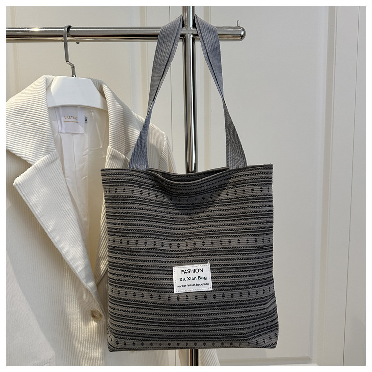 2025 대용량 캐주얼 스타일 맞춤형 캔버스 패션 스트라이프 여성 간단한 통근 토트 숄더백