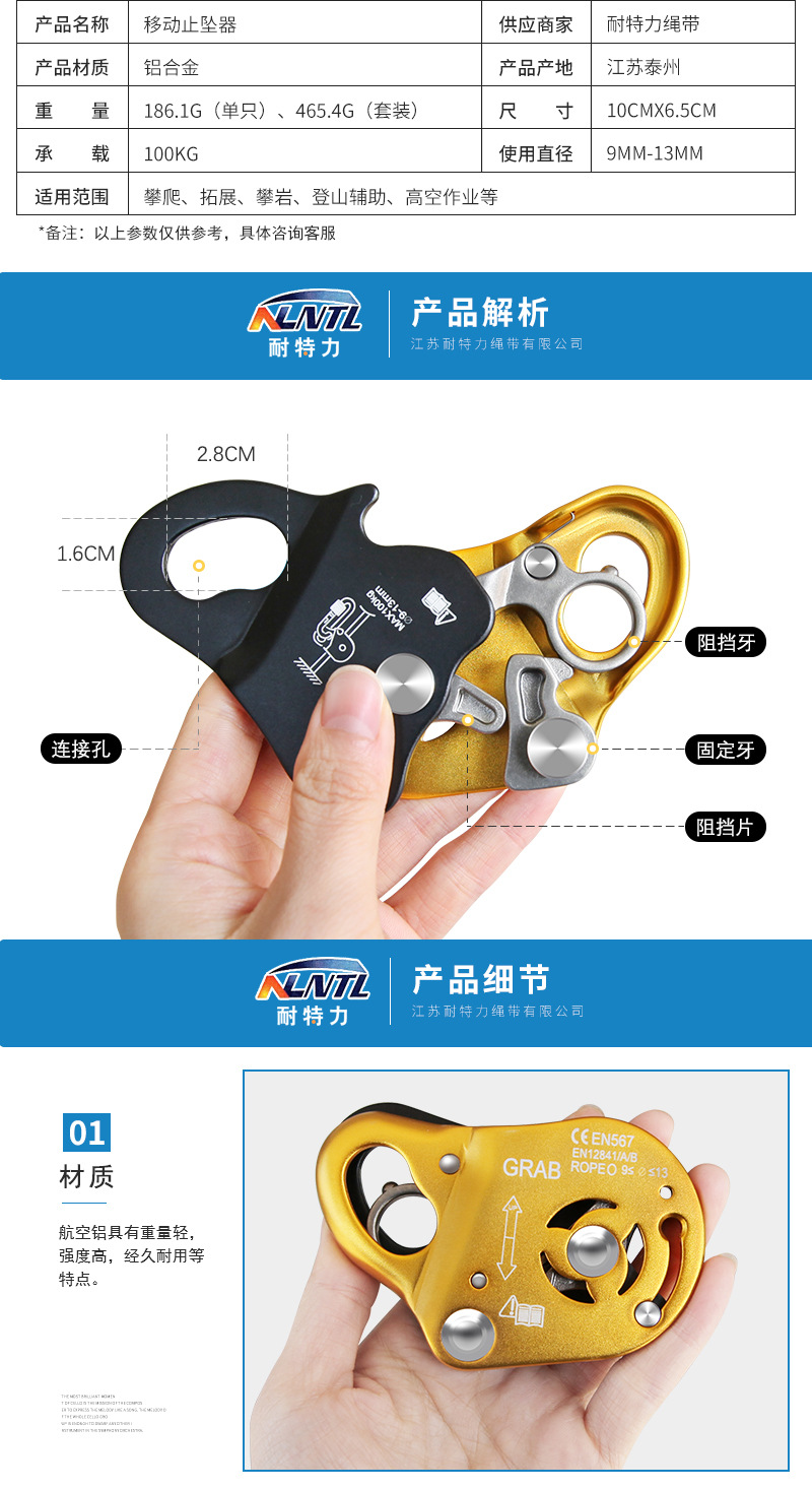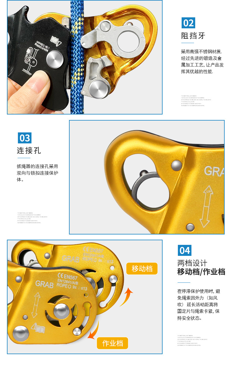 야외 암벽등반용 추락 방지 장치, 이동식 로프 그랩퍼, 고공 작업용 추락 방지 장치, 하강 보호 장치, 자동 잠금 장치스토어 가기
